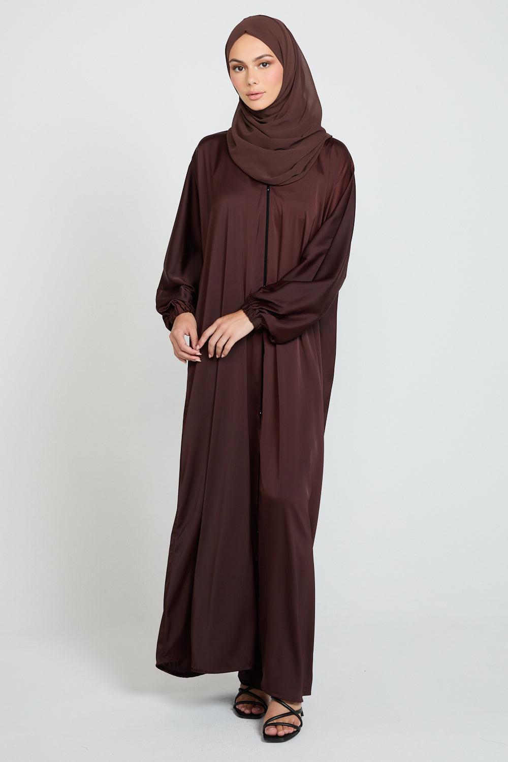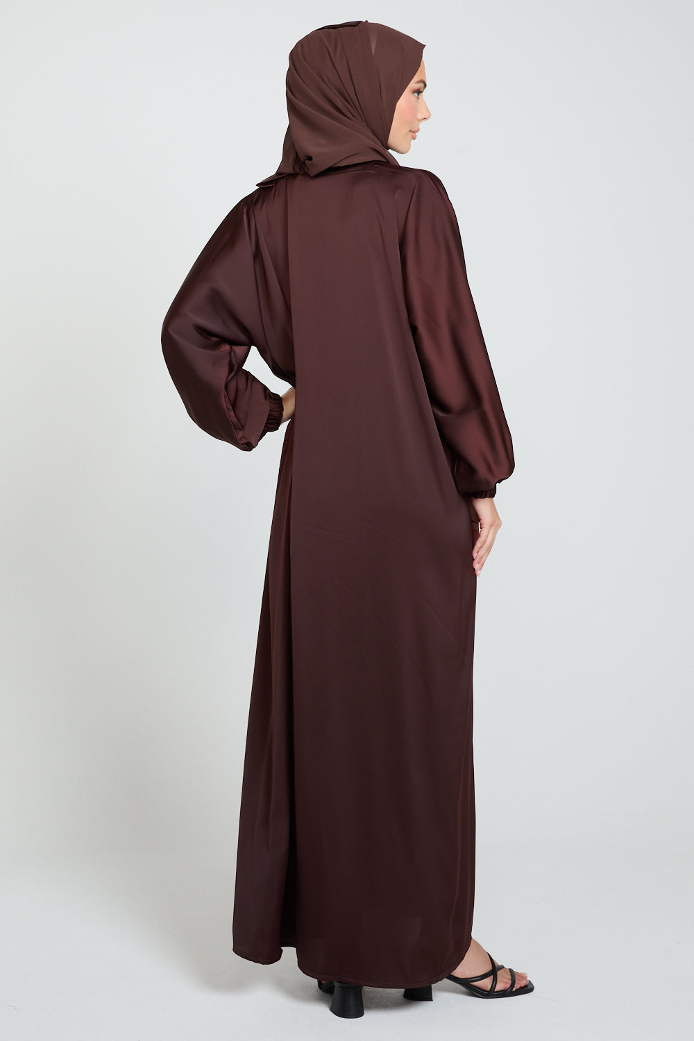 Ideal for everyday wear, cosy dinners, or understated occasions, the Rich Auburn Abaya is a versatile staple for women who appreciate softness, elegance, and subtle sophistication.