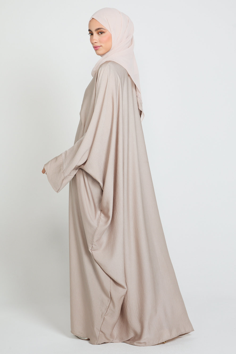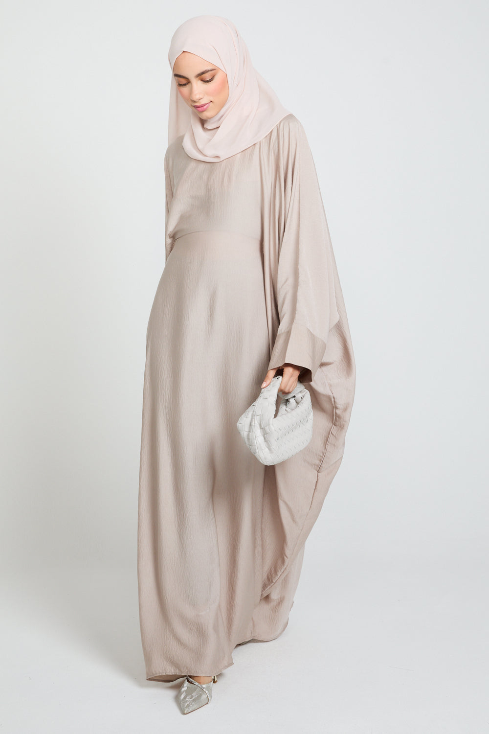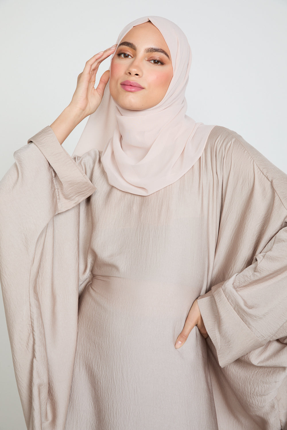 Discover timeless refinement with the Classic Soft Sheen Closed Abaya in Mink Mist — a versatile essential designed for both everyday ease and special moments.