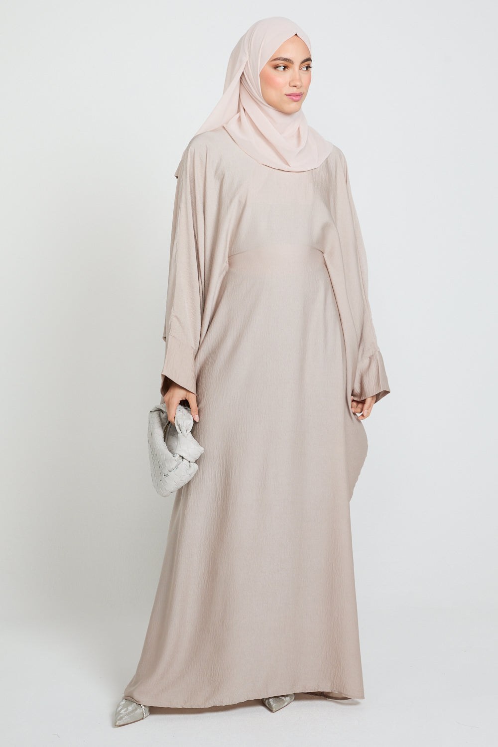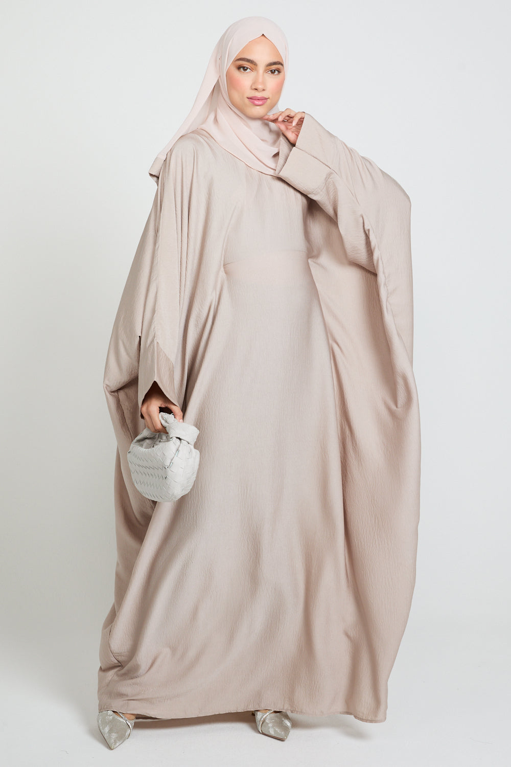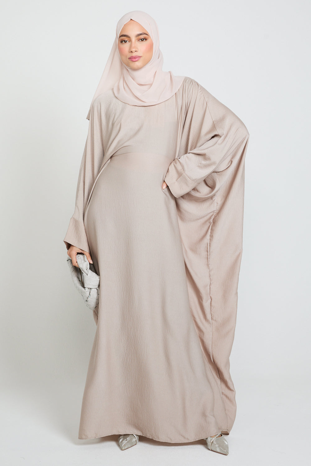 Discover timeless refinement with the Classic Soft Sheen Closed Abaya in Mink Mist — a versatile essential designed for both everyday ease and special moments.