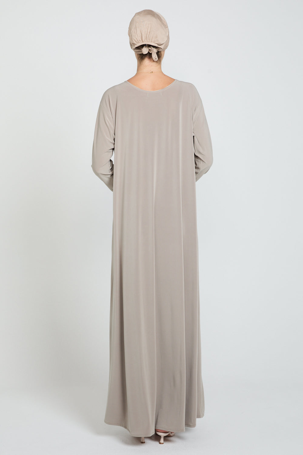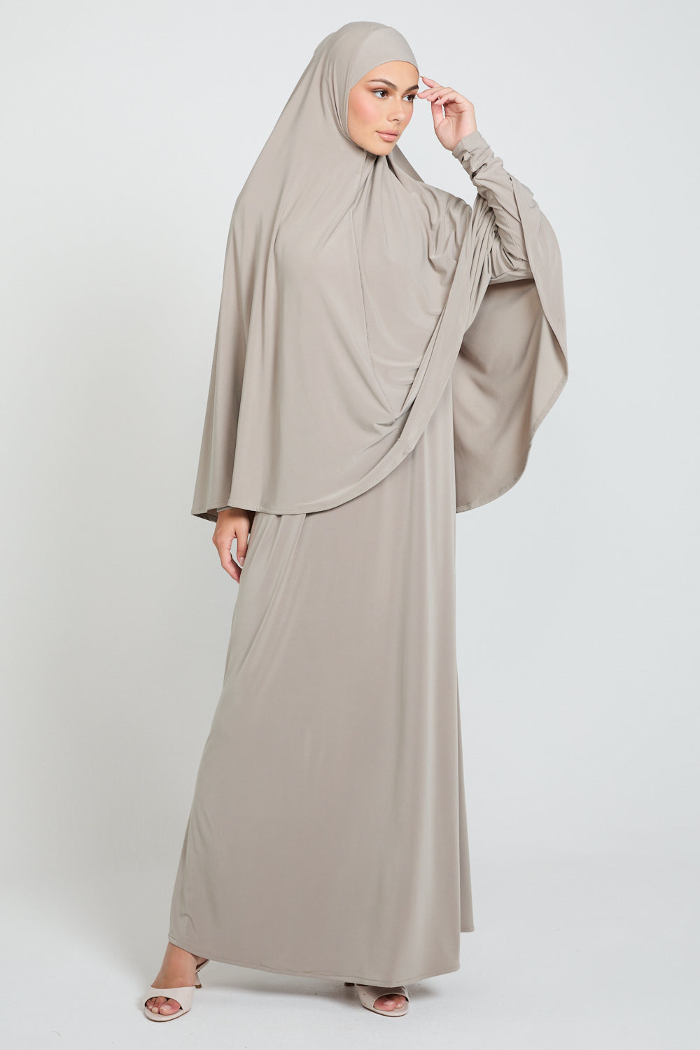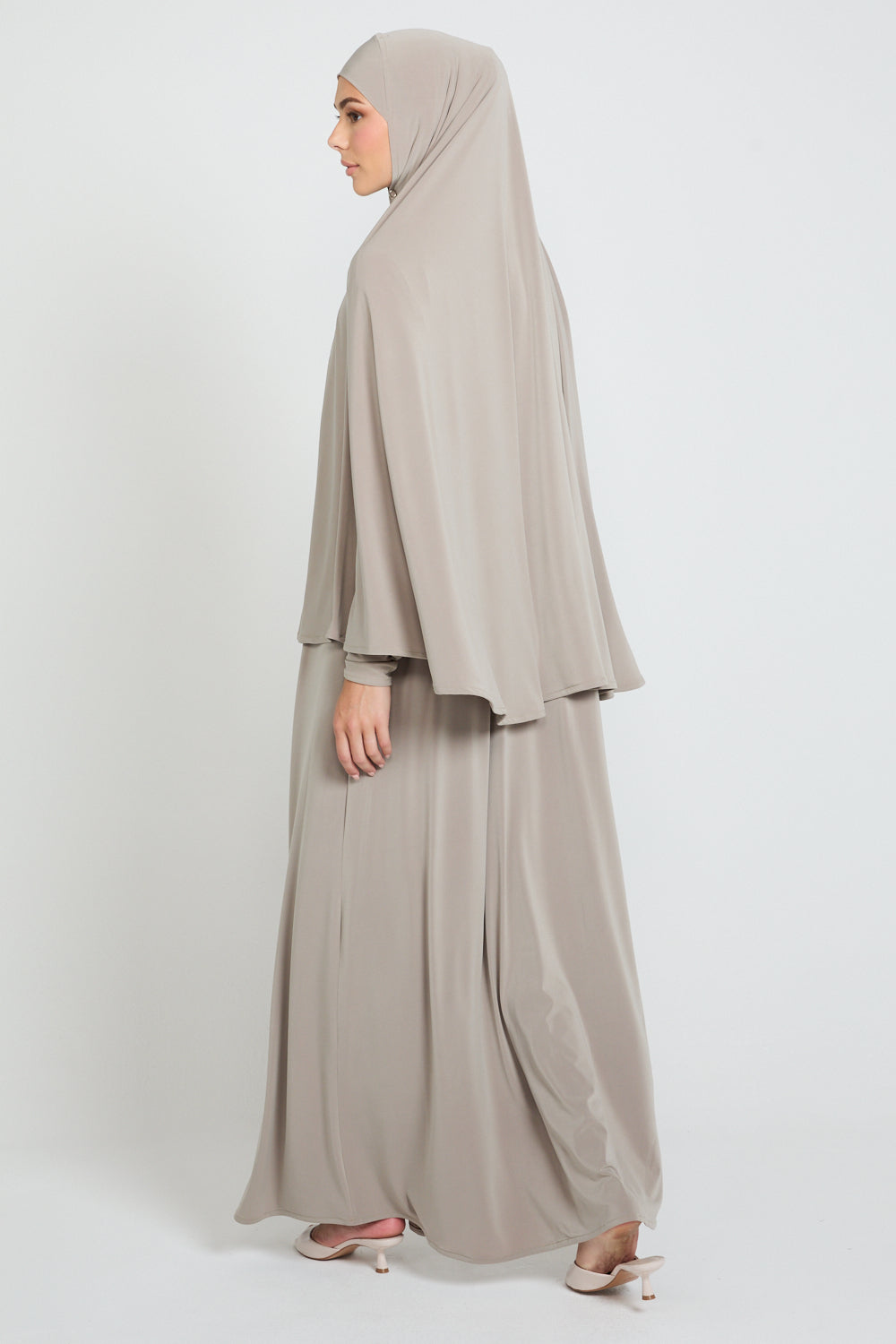 Jersey Plain Closed Abaya with Khimar Set - Sand Dune