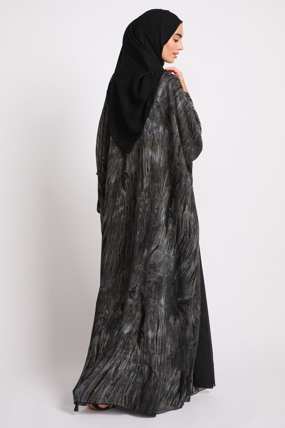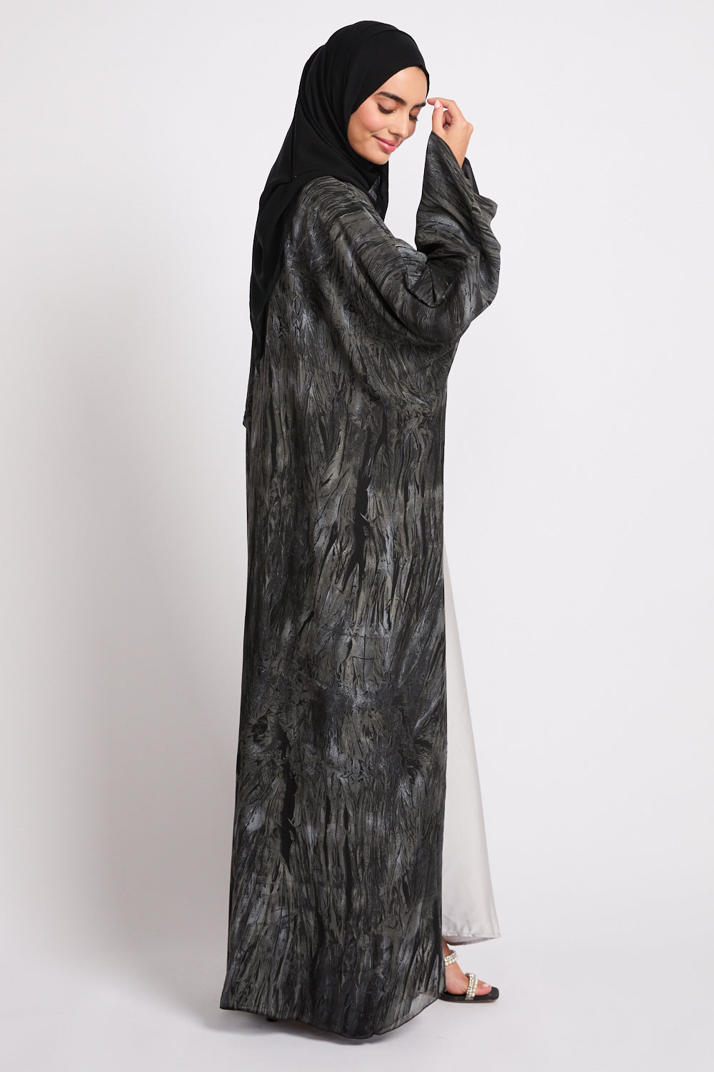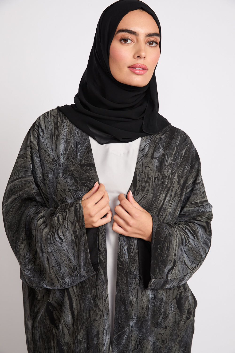 Premium Abstract Open Abaya – Midnight Ash - LIMITED EDITION