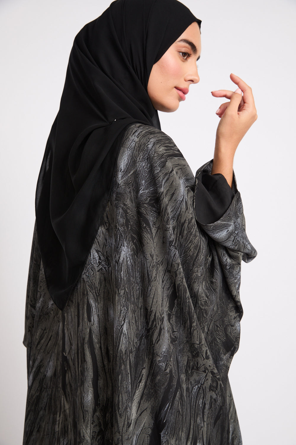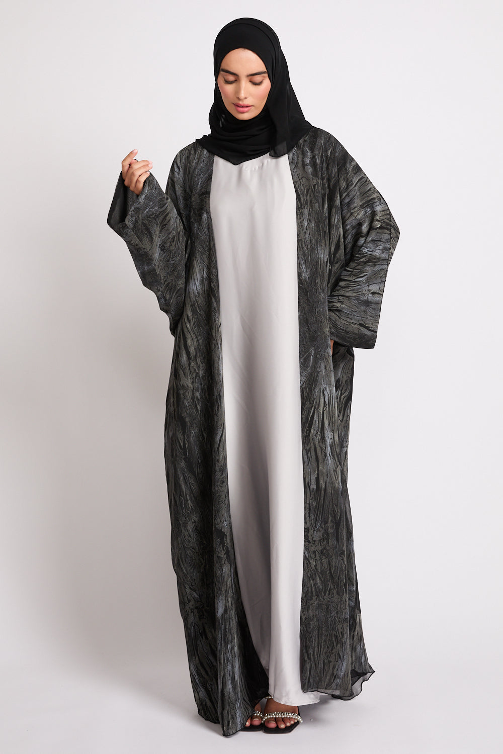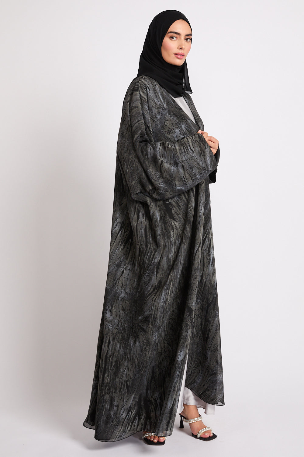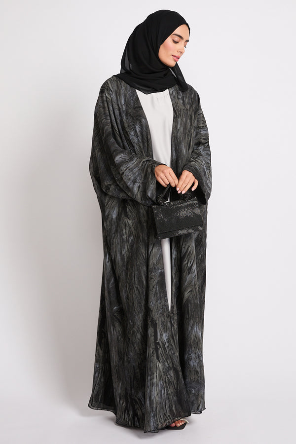 Premium Abstract Open Abaya – Midnight Ash - LIMITED EDITION