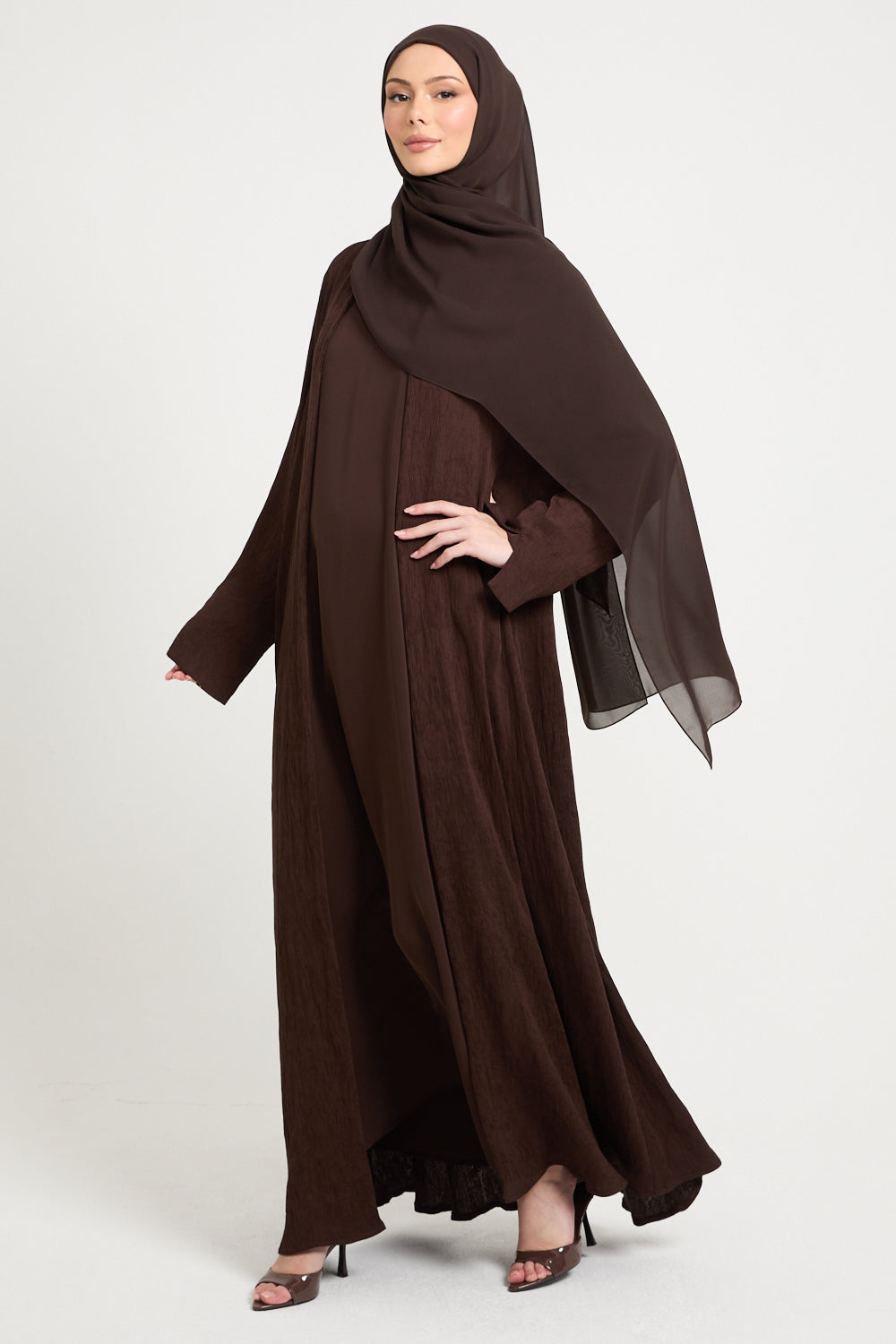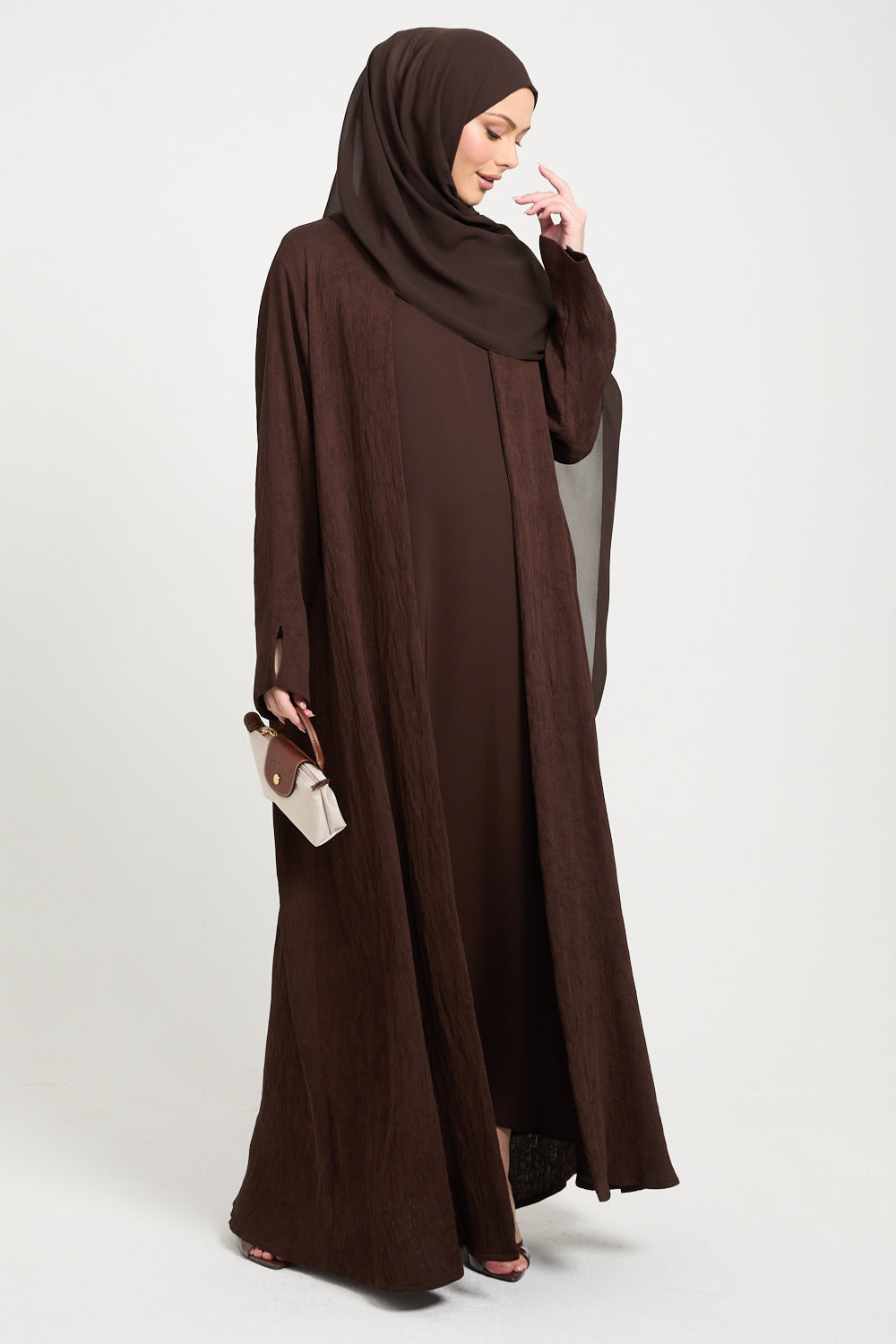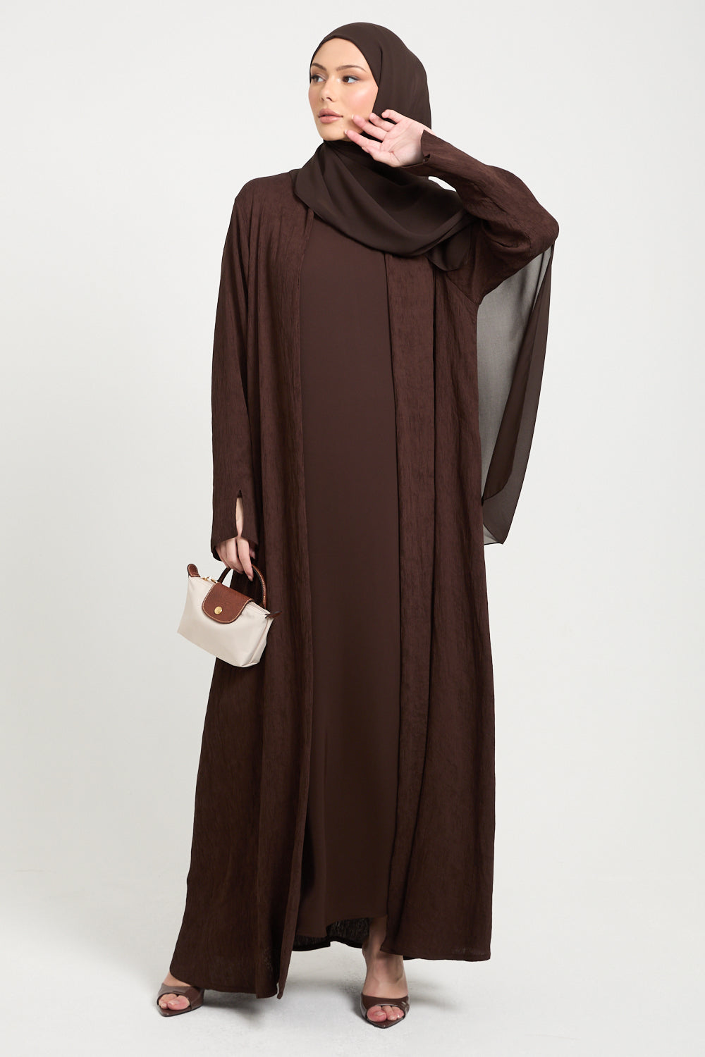 Premium Modern Muse Open Abaya - Espresso Dusk