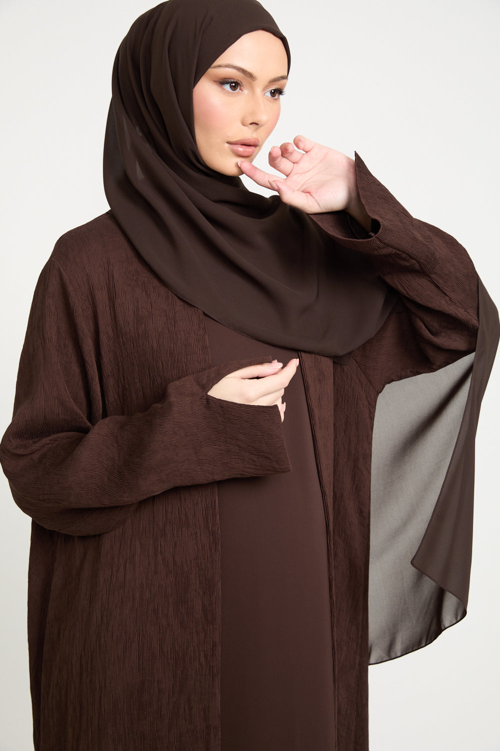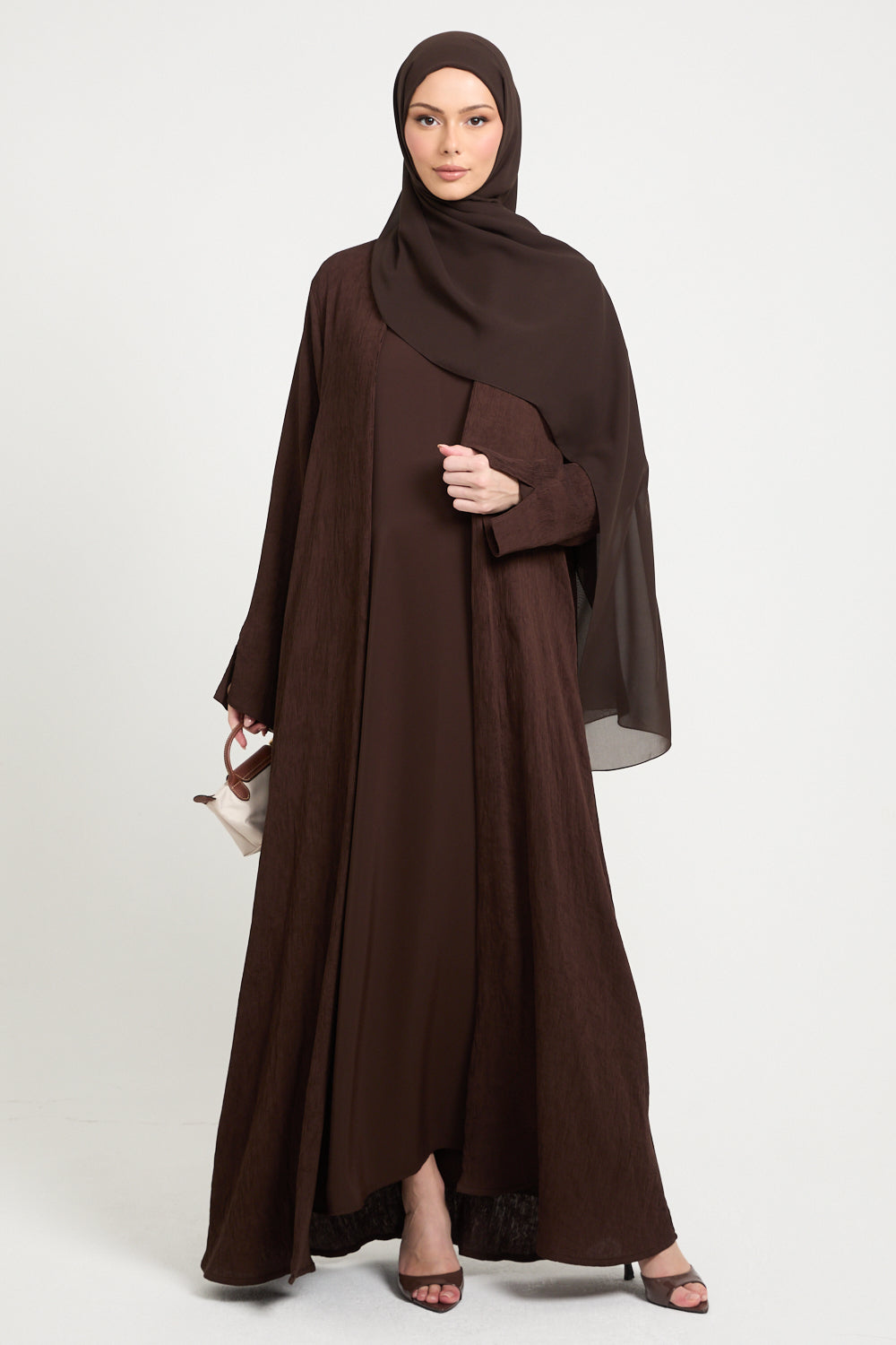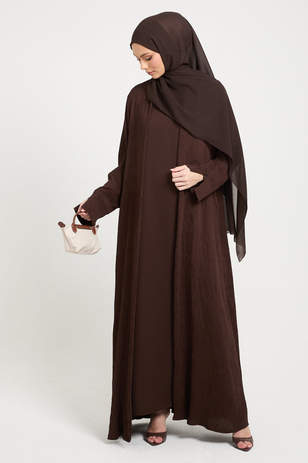 Premium Modern Muse Open Abaya - Espresso Dusk