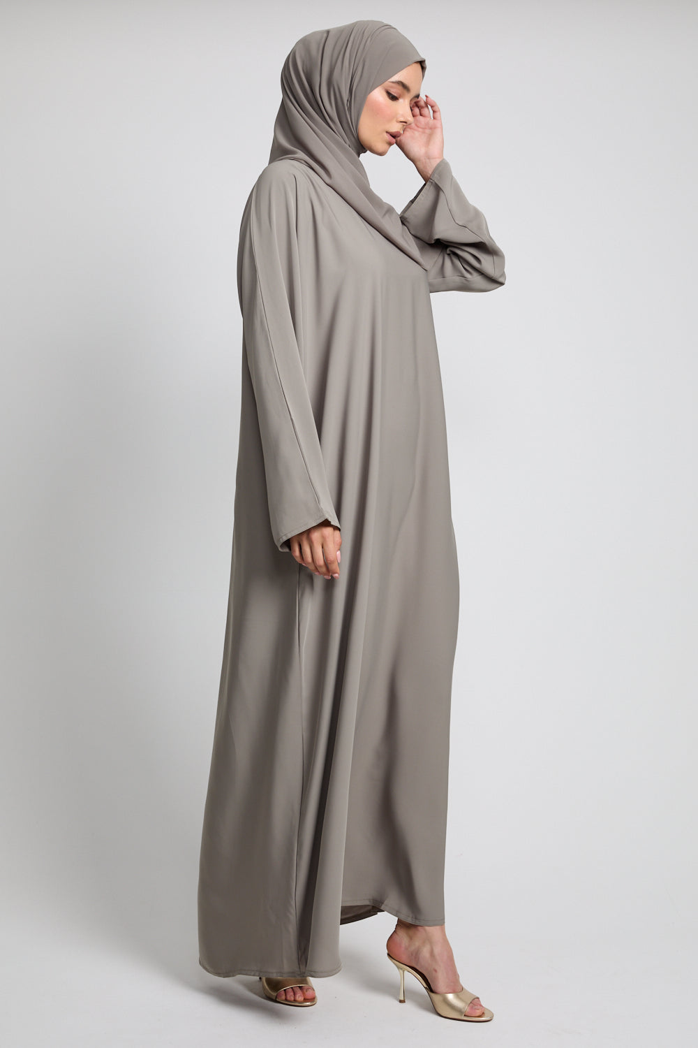 Step into grounded sophistication with the Premium Plain Closed Abaya in Desert Olive. A warm, earthy tone inspired by desert landscapes and timeless grace.