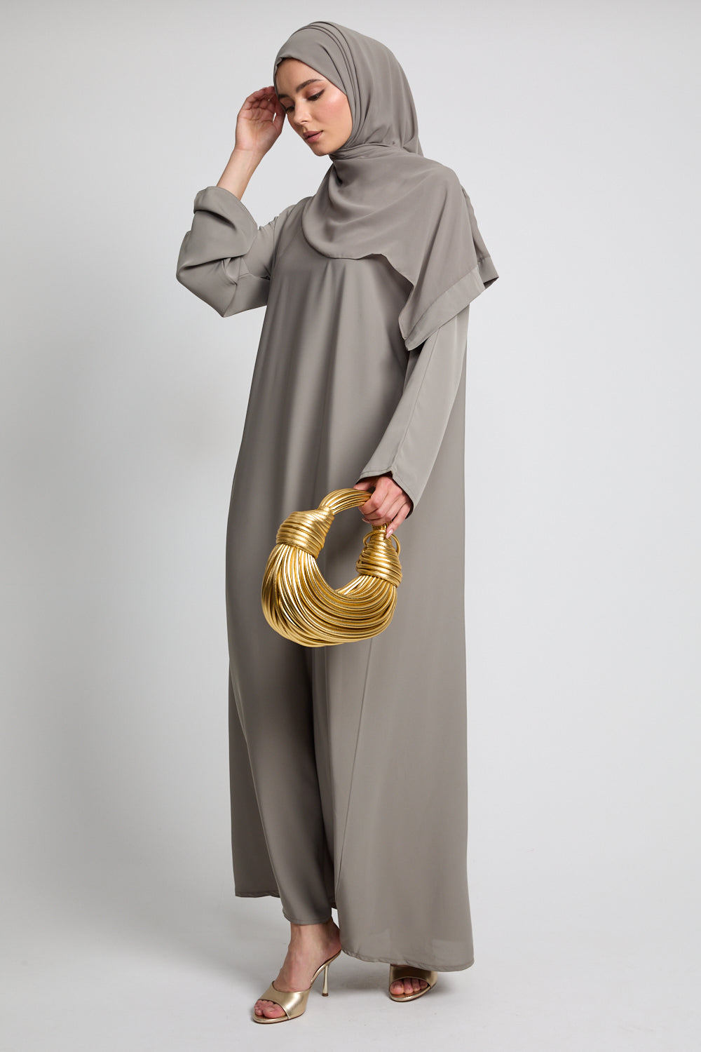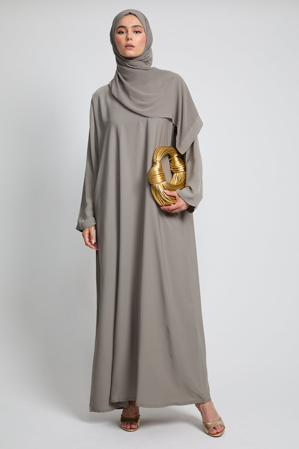 Crafted from premium Nidha fabric, this lightweight abaya offers a smooth, fluid drape that moves effortlessly with you. The closed silhouette creates a flattering flow while maintaining full coverage, blending classic modesty with elevated simplicity.