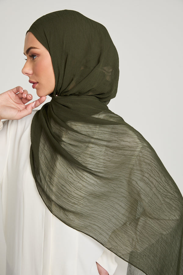 Crafted from our signature soft crush fabric, this hijab features a lightly crinkled texture that adds depth and dimension while maintaining a fluid, breathable drape. Lightweight yet full of character, it’s designed for all-day comfort and timeless style.