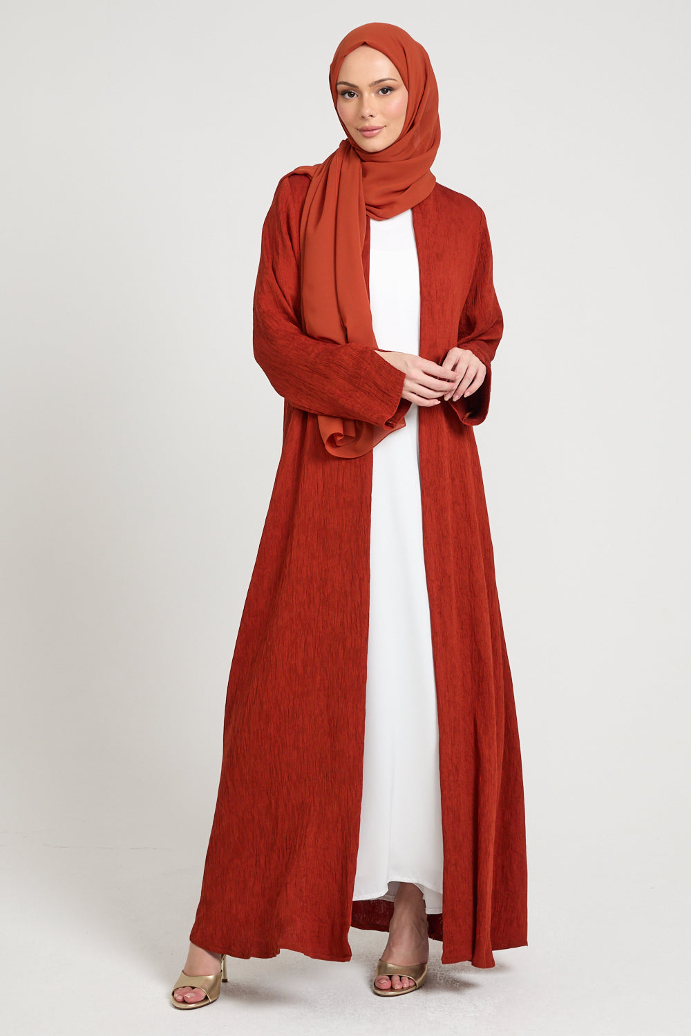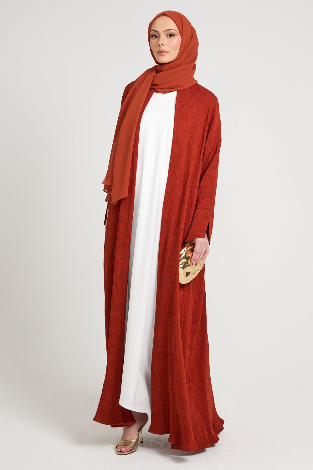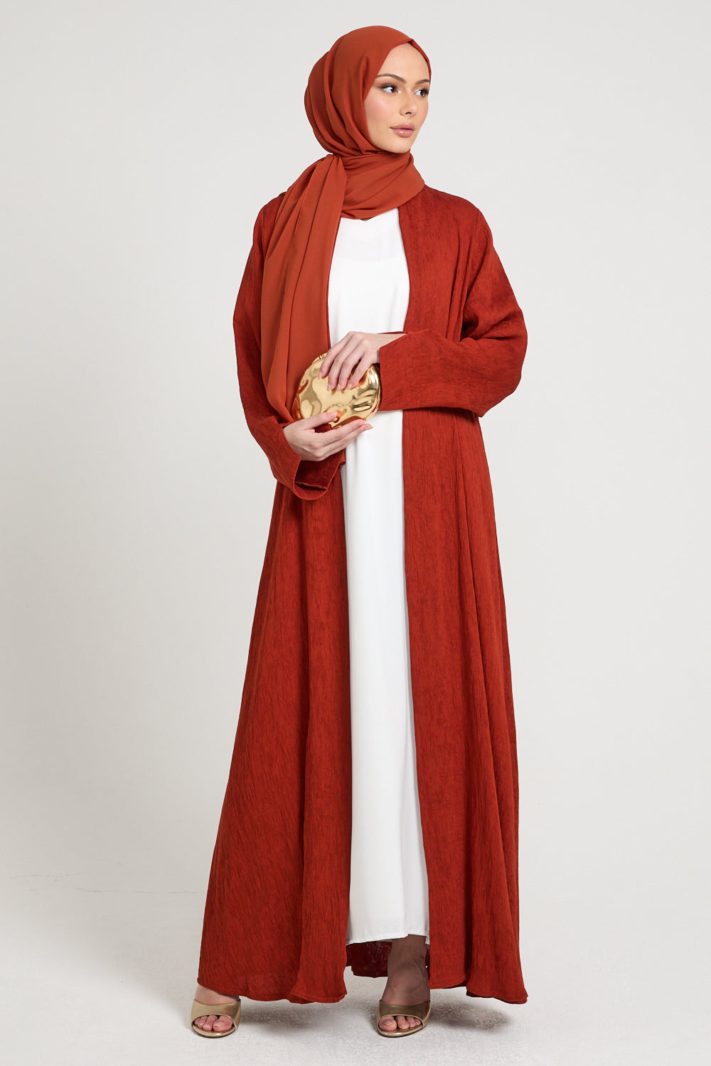 Premium Modern Muse Open Abaya - Terracotta