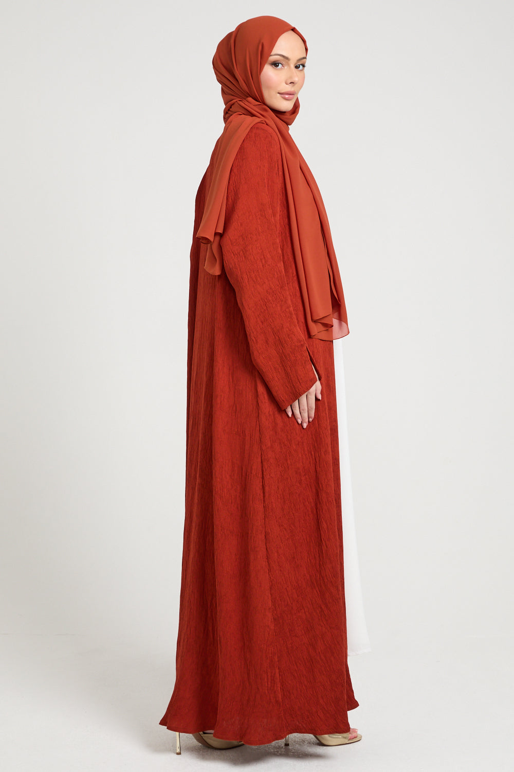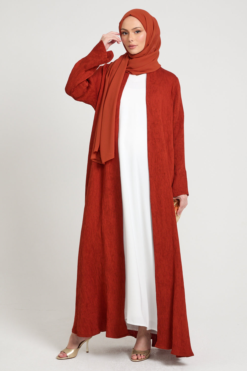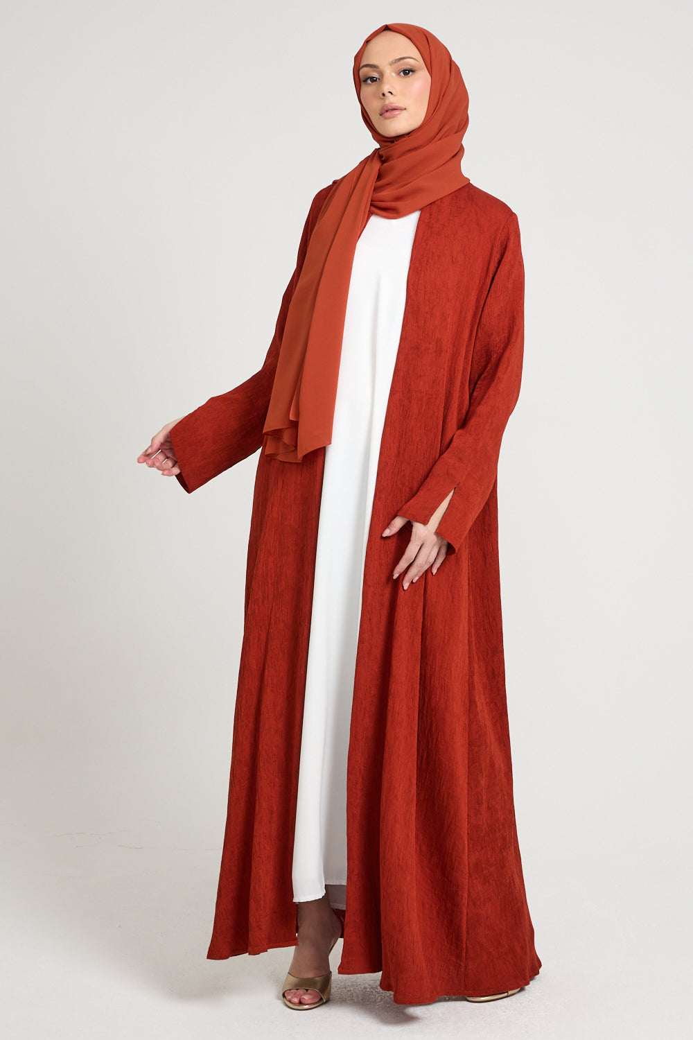 Premium Modern Muse Open Abaya - Terracotta