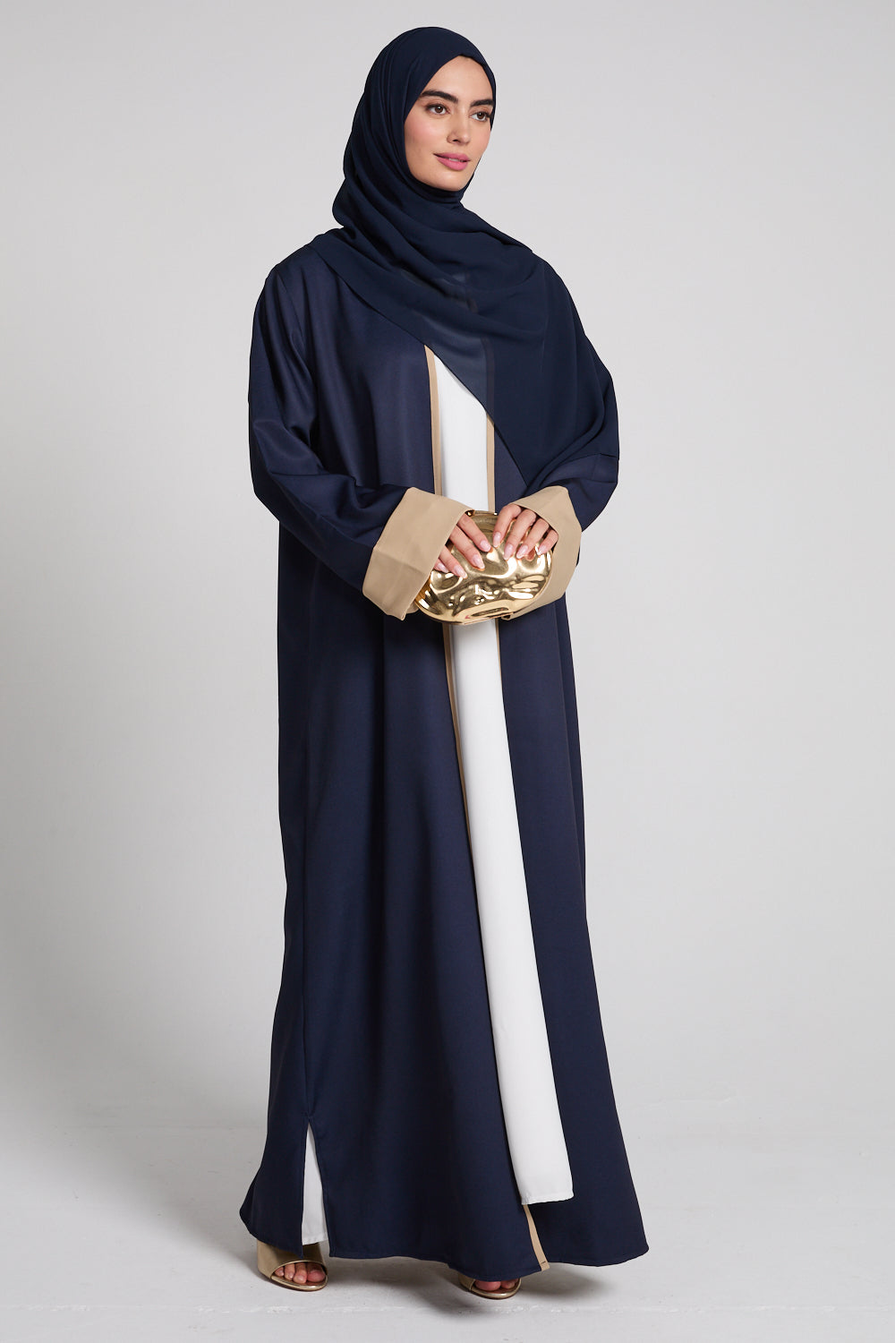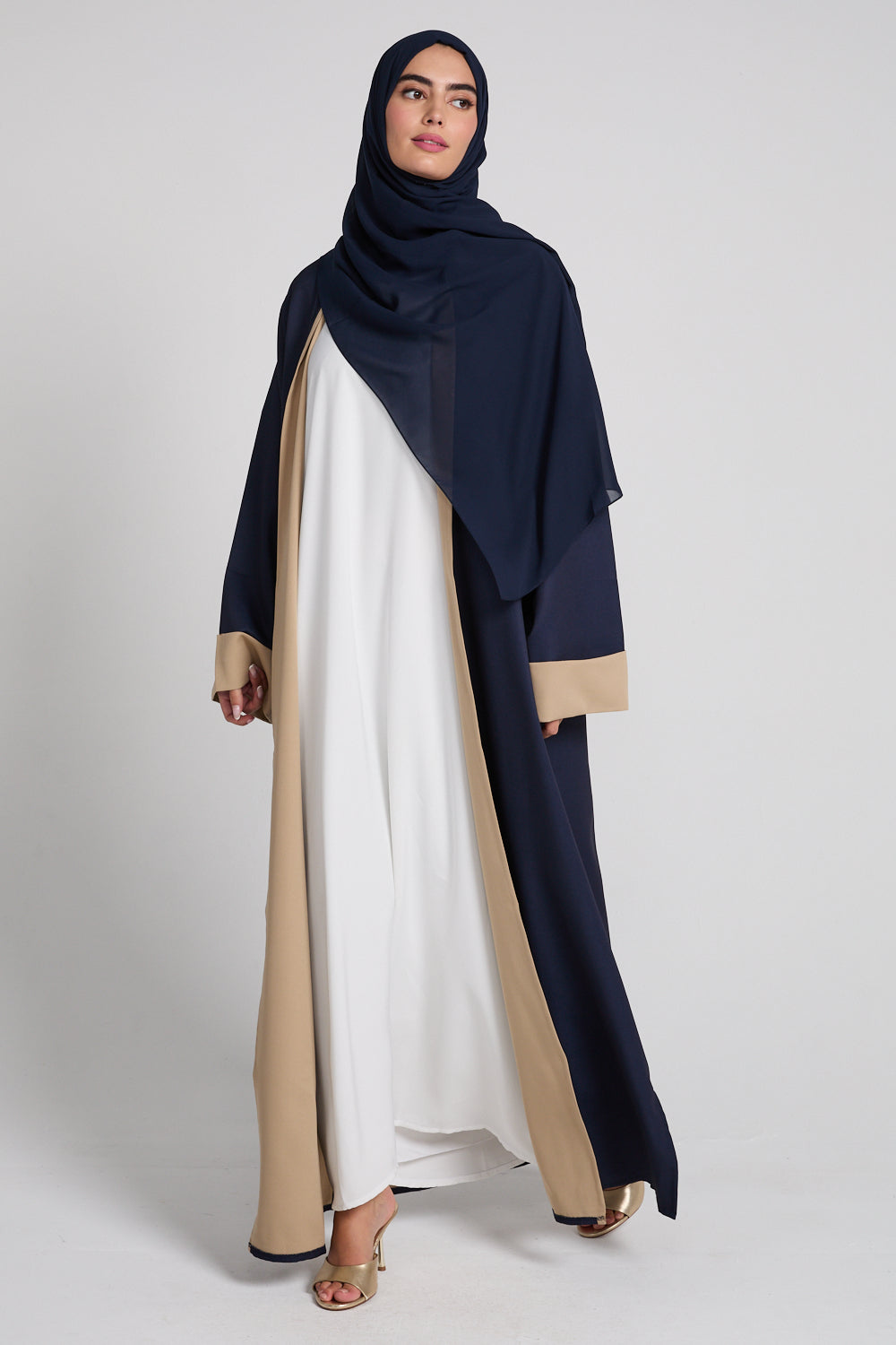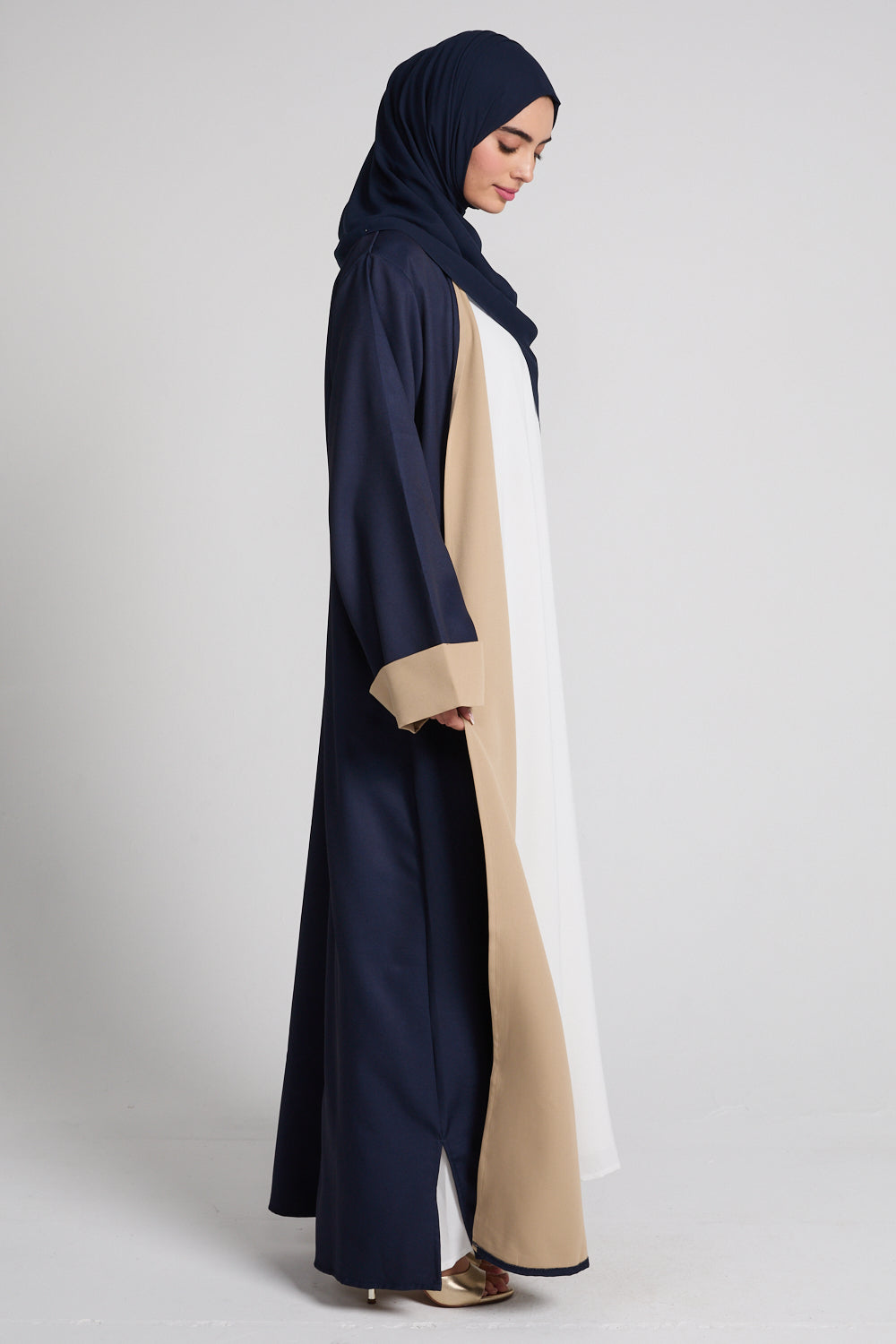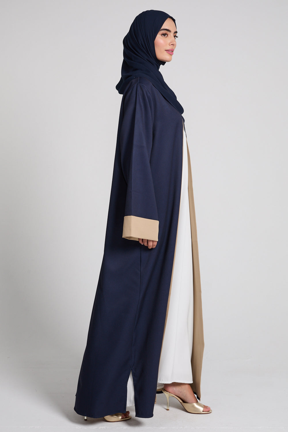 Premium Two Tone Open Abaya - Navy Dusk And Desert Beige
