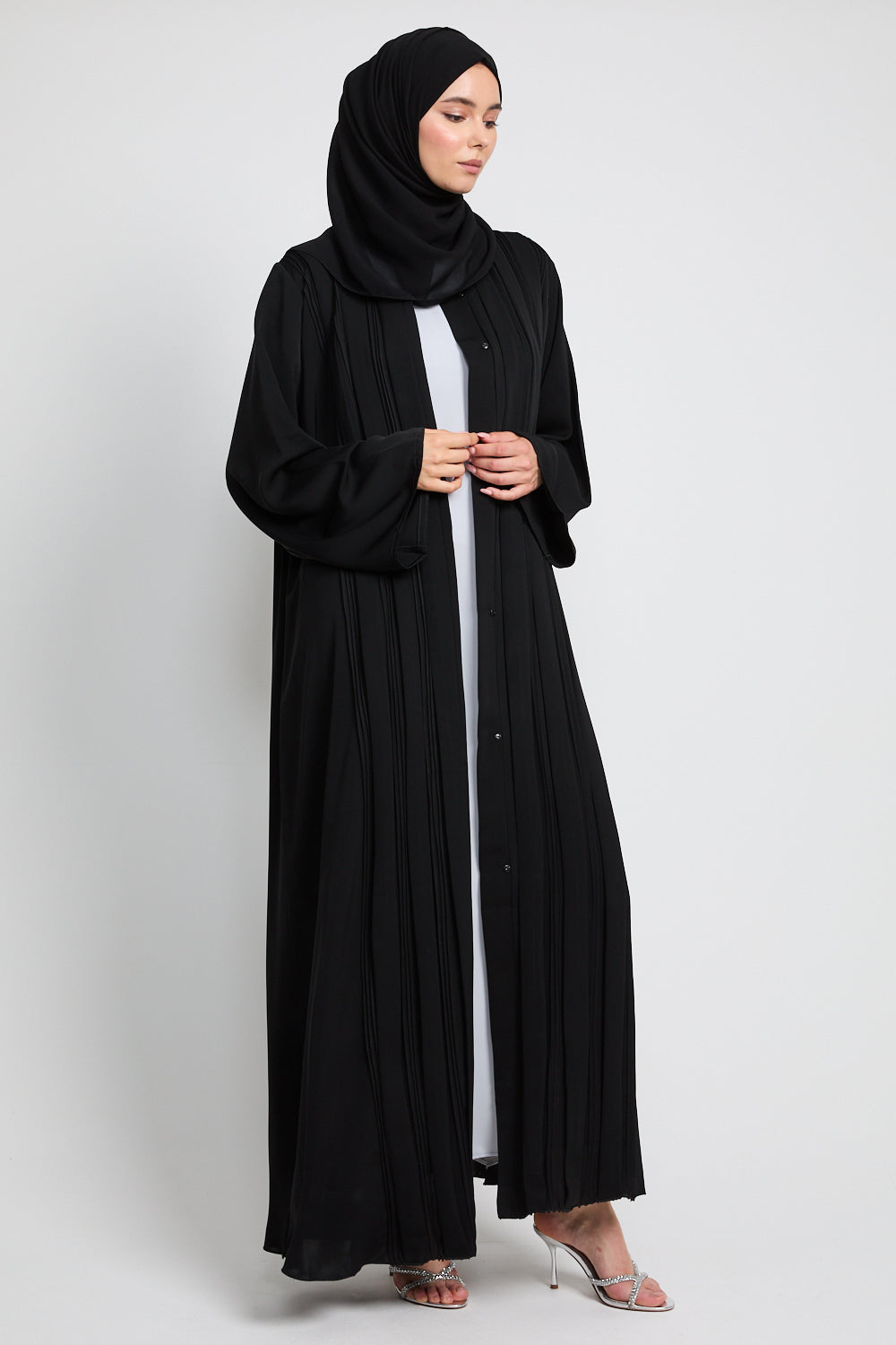 Premium Pleated Detailing Open Abaya - Black