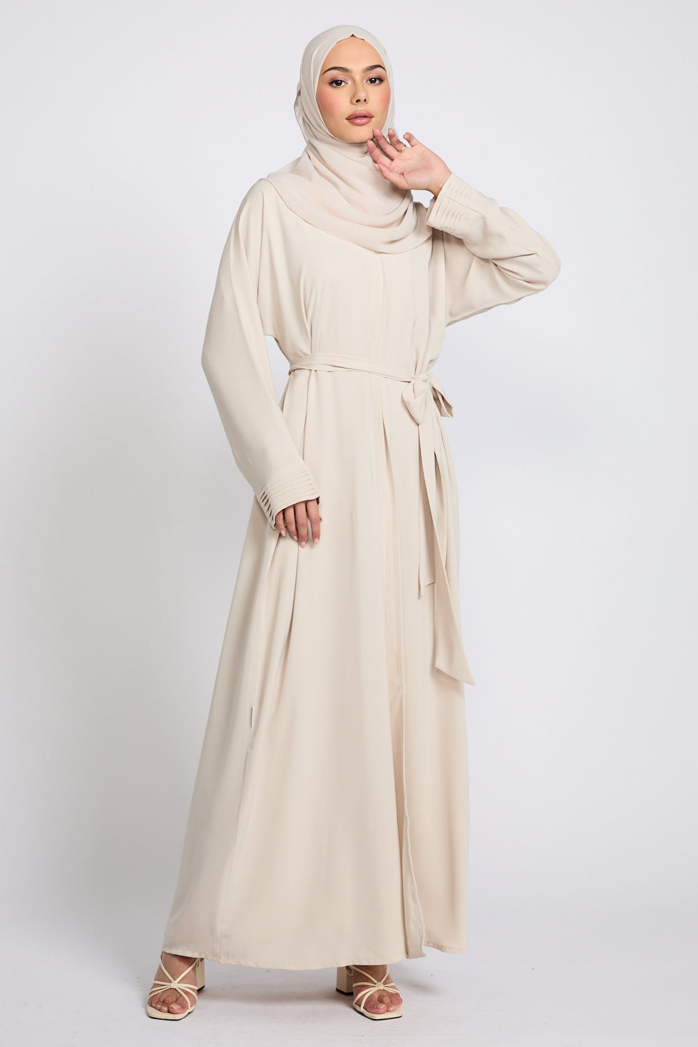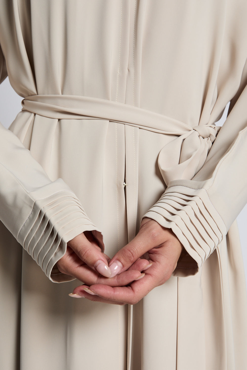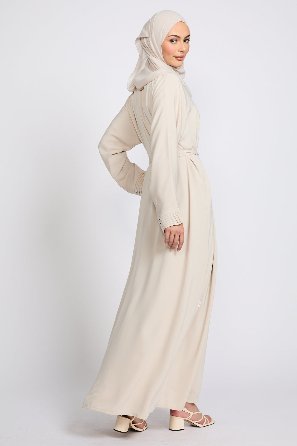 Premium Classic Open Abaya with Pleated Cuff Detailing - Almond Milk