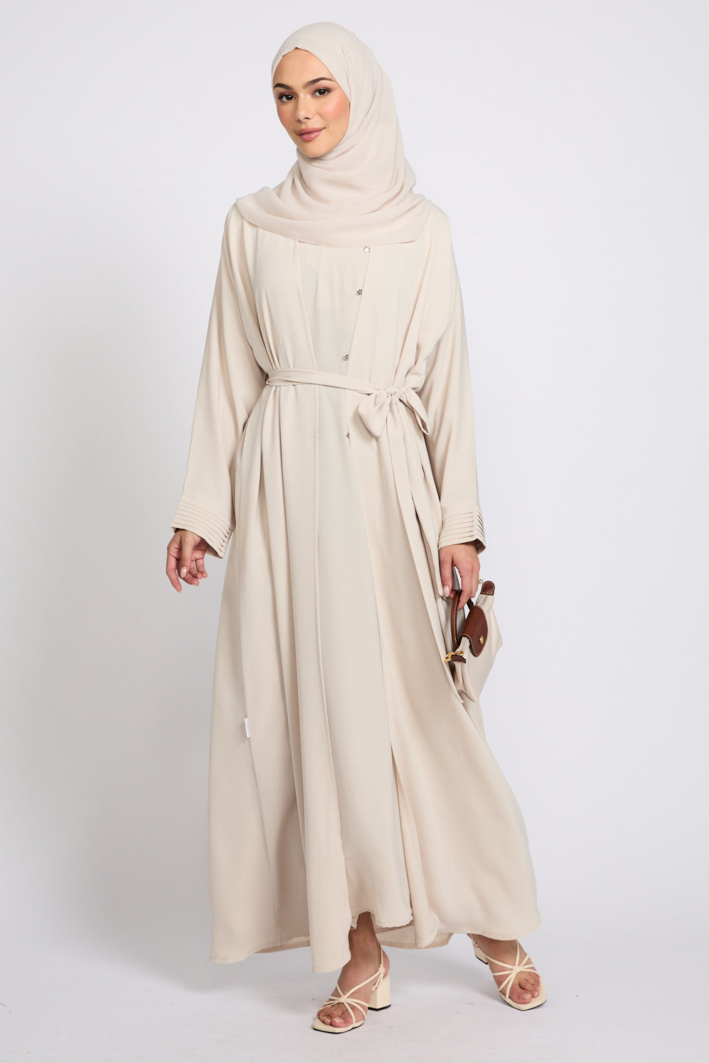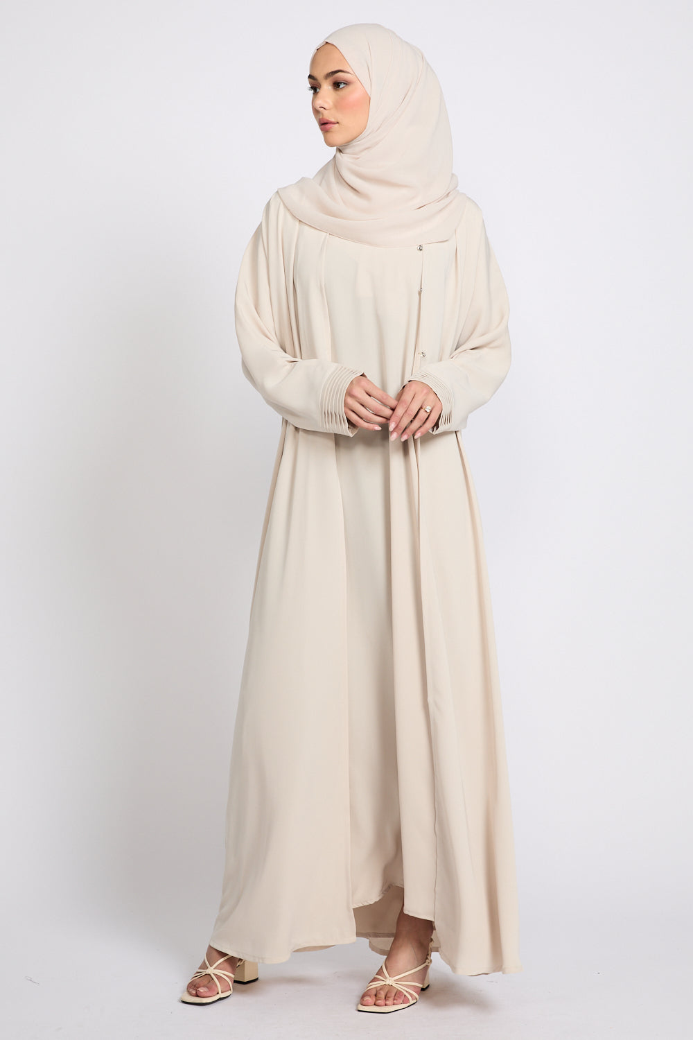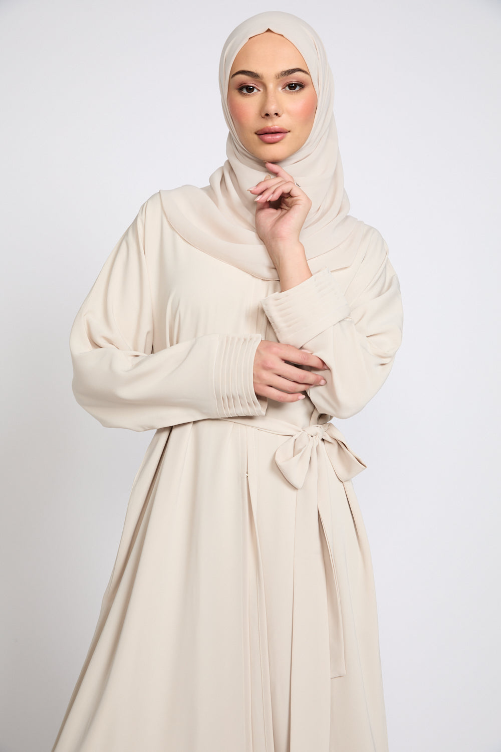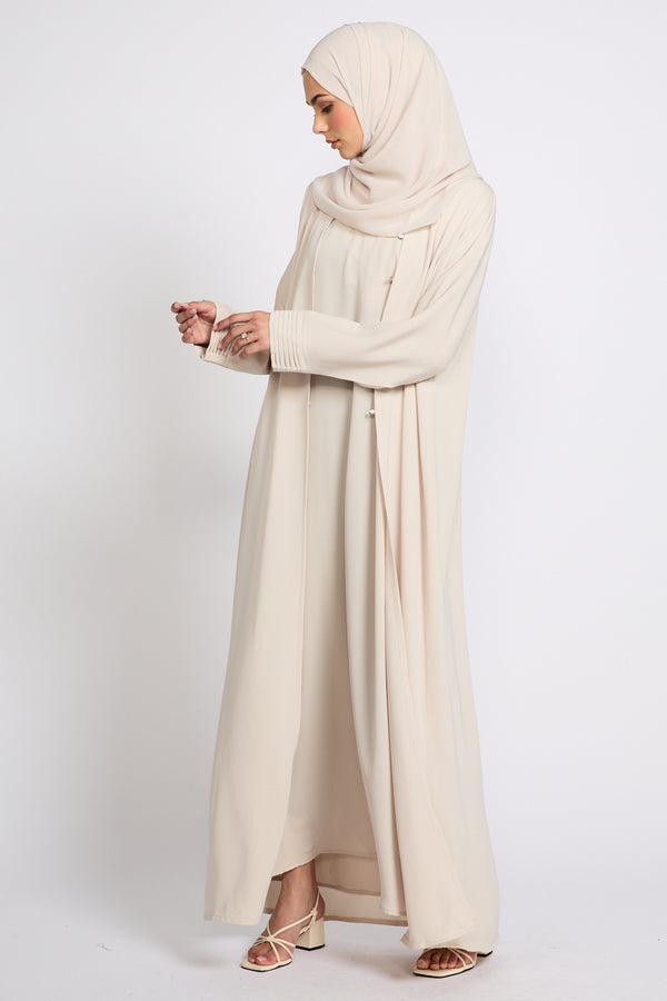 Premium Classic Open Abaya with Pleated Cuff Detailing - Almond Milk