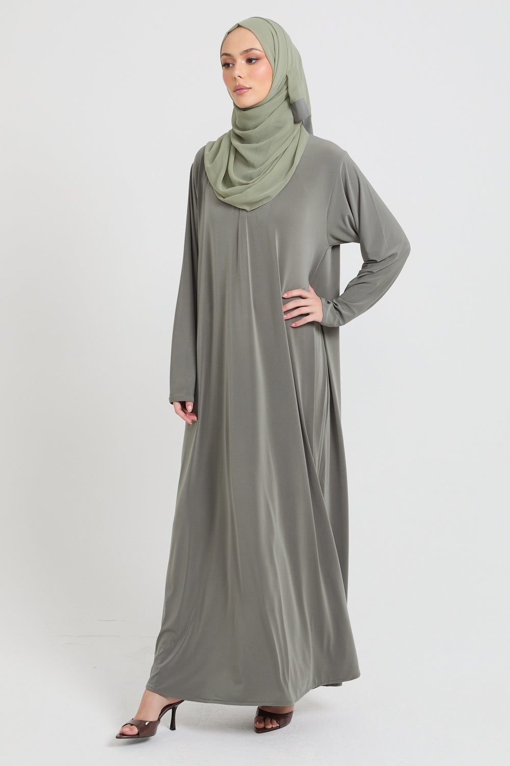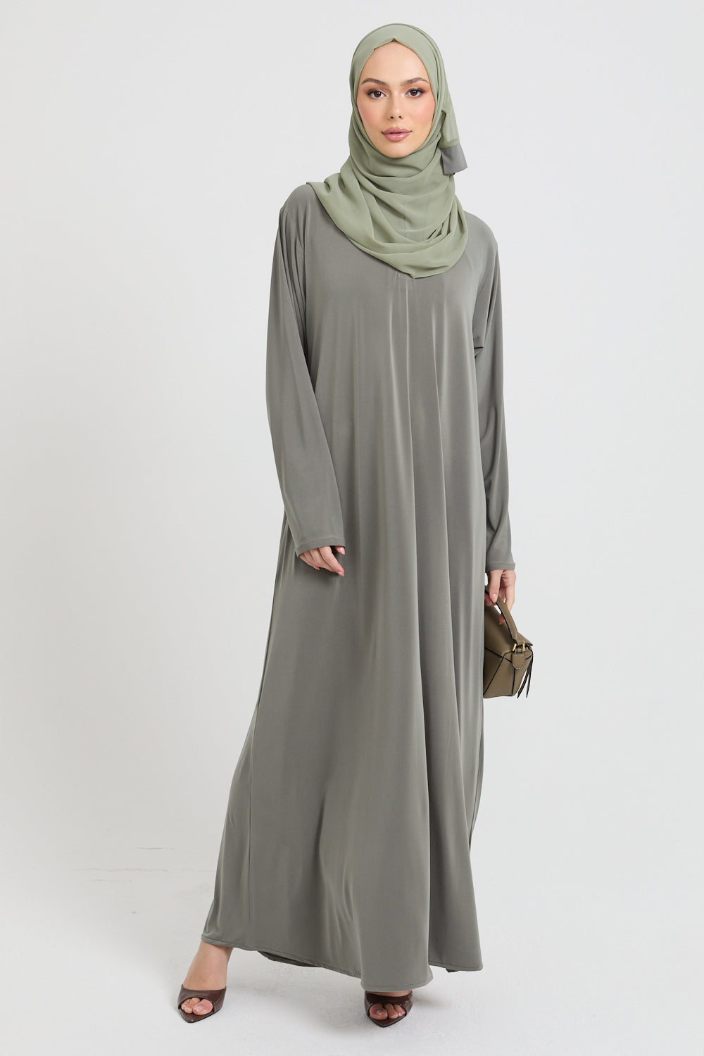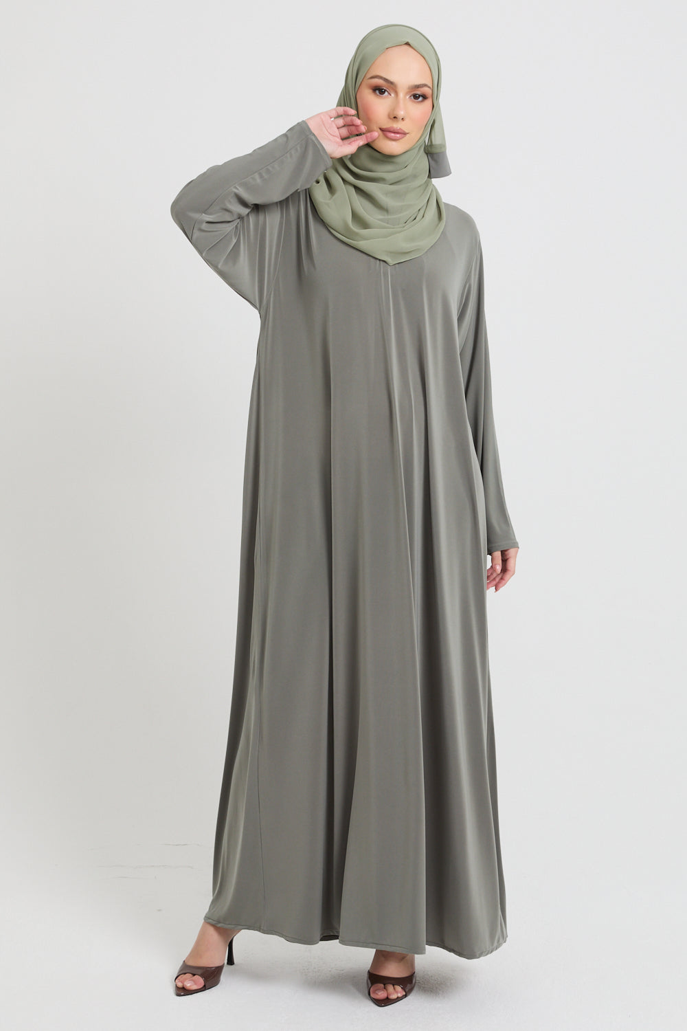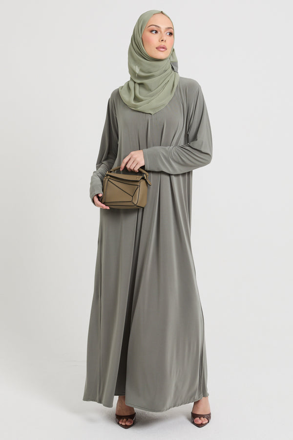 Premium Jersey Closed Abaya with Front Zip - Olive