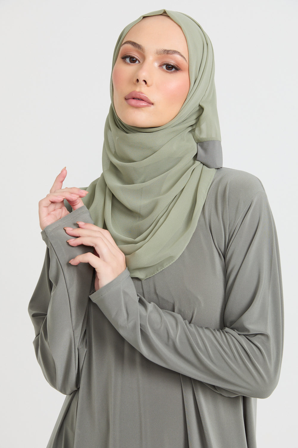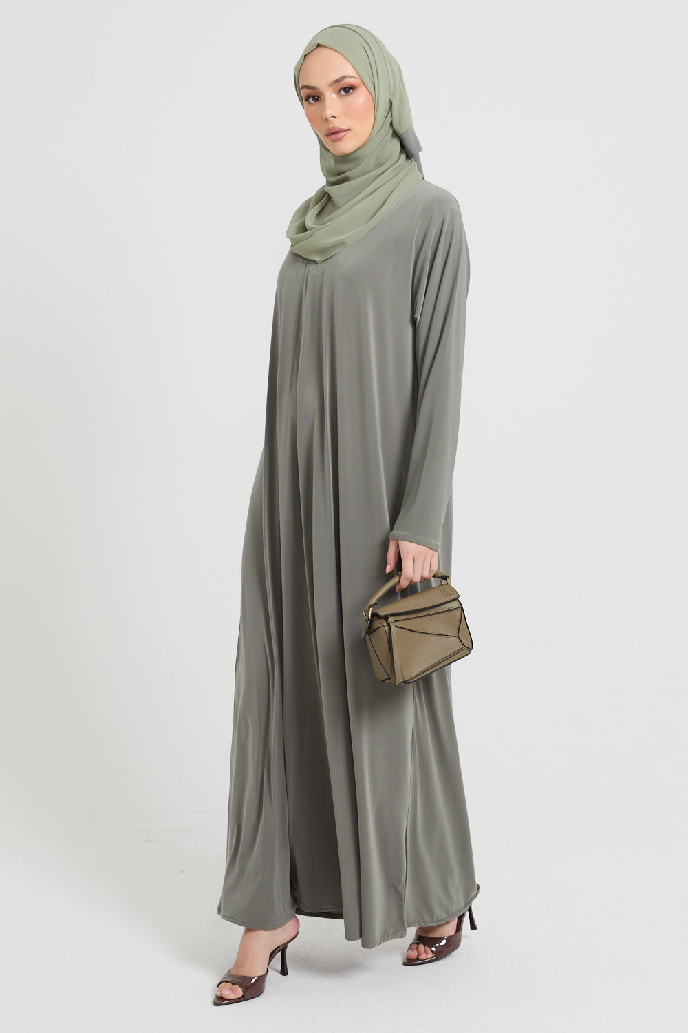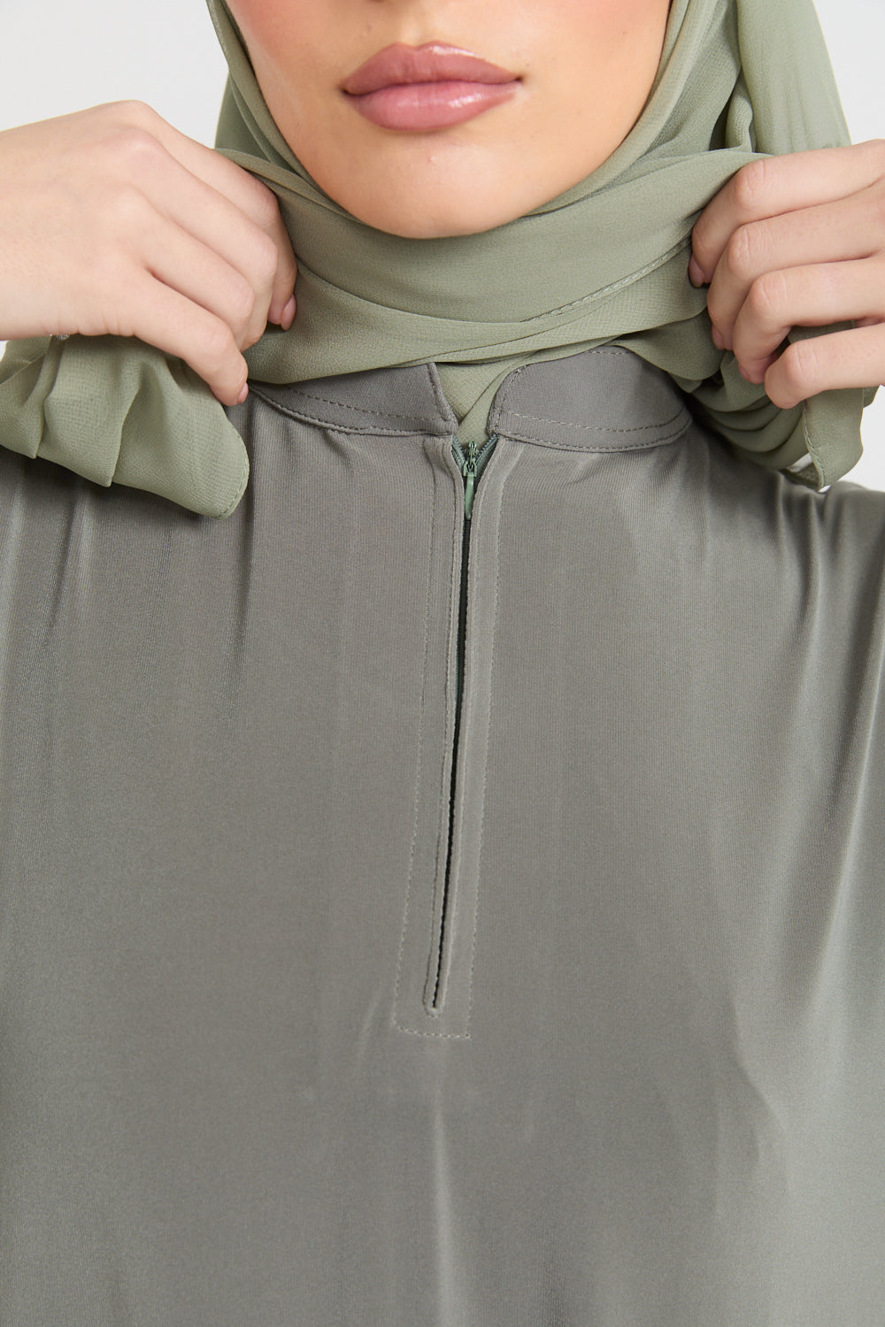 Premium Jersey Closed Abaya with Front Zip - Olive