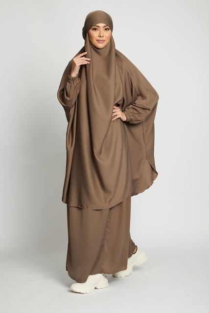 Two Piece Jilbab/ Prayer Set - Elasticated Cuff - Smokey Taupe