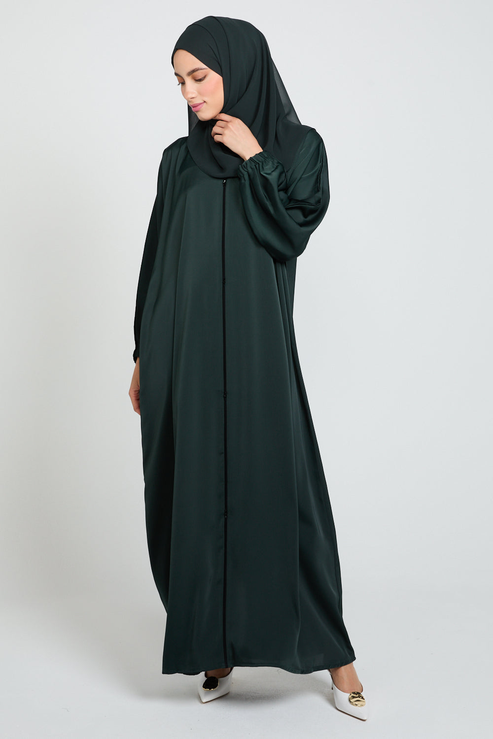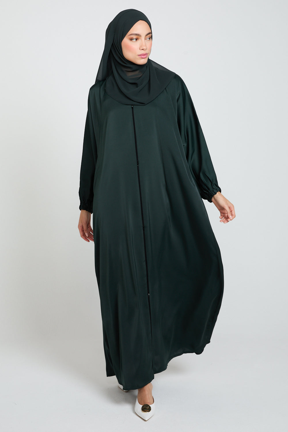 Classic Closed Abaya with Dainty Detailing - Forest Green