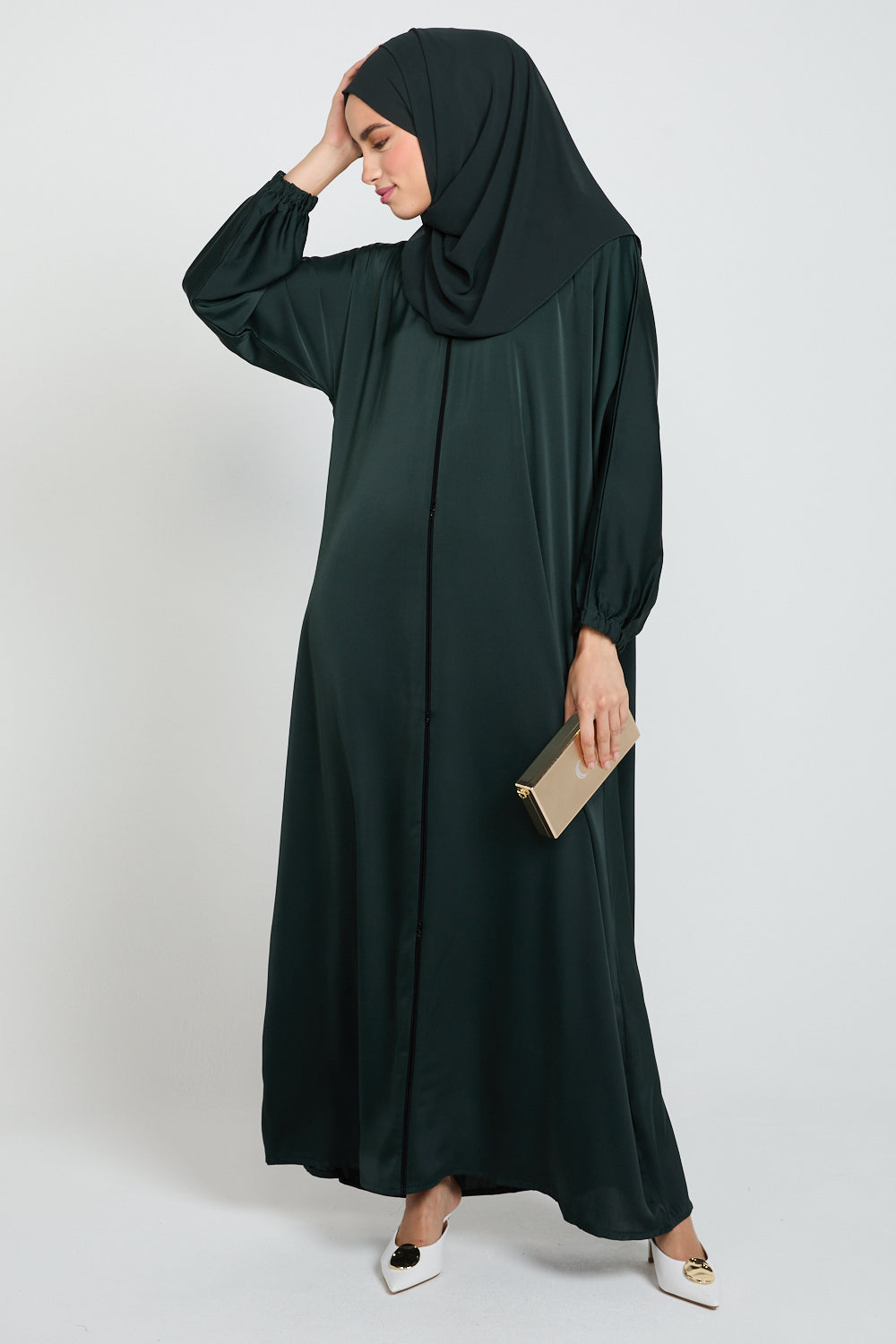 Versatile and elegant, the Forest Green Abaya is perfect for everyday grace or elevated simplicity on special occasions.