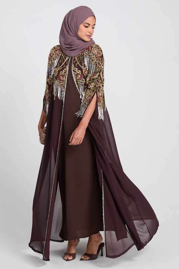 Luxury Crown Jewel Embellished Cape - Rich Mahogany
