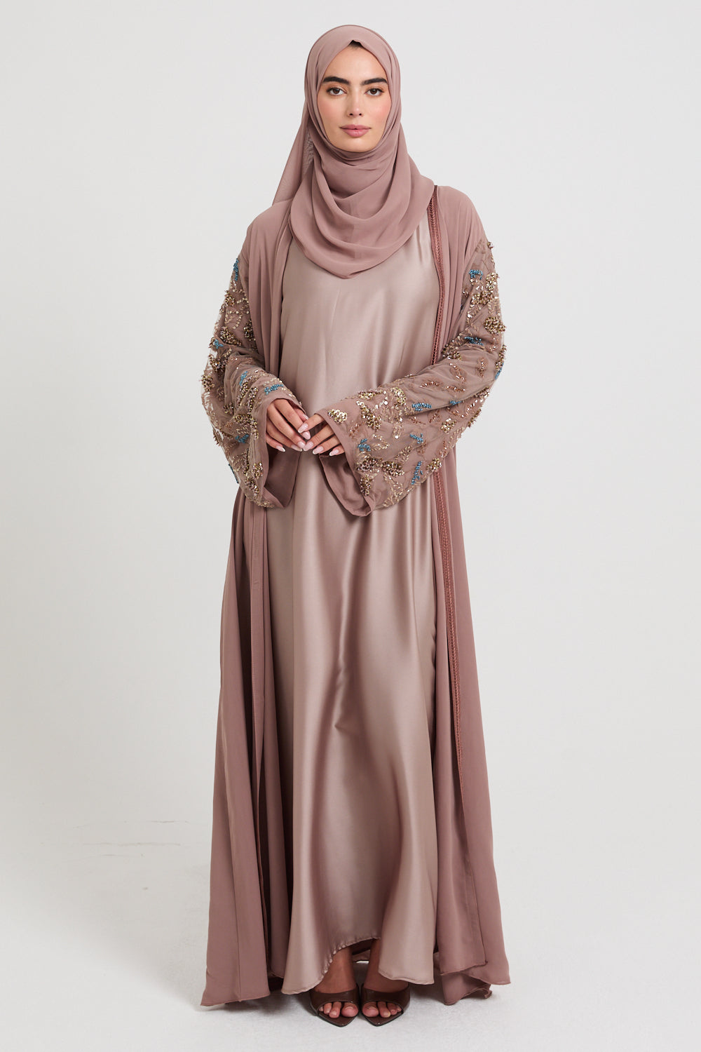 Paired with a matching premium hijab, this abaya is a complete expression of modern luxury - understated, feminine, and beautifully elevated.
