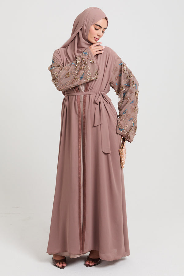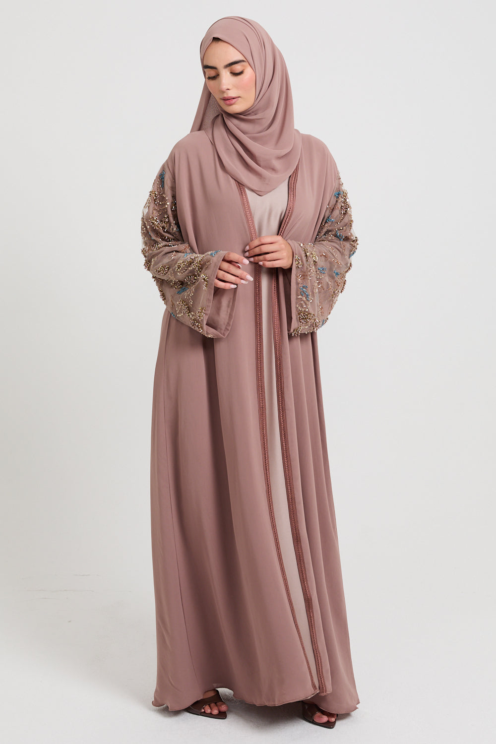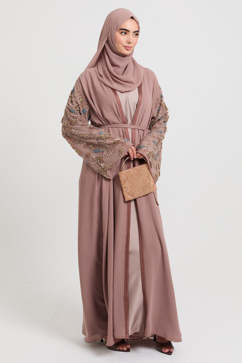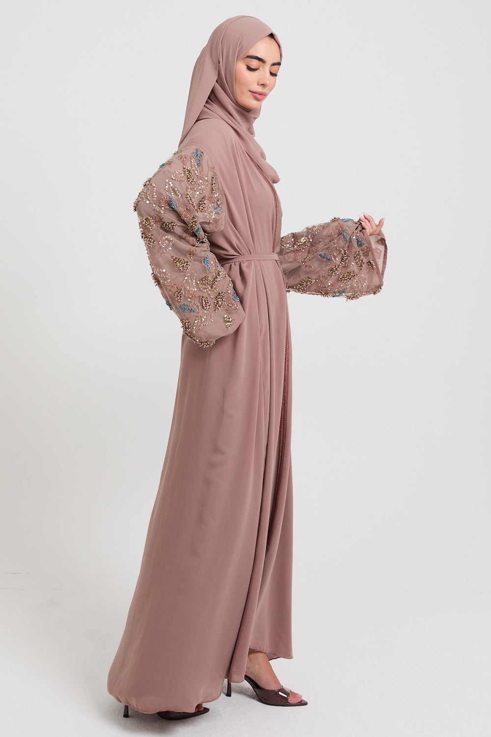 Luxury Rosette Embellished Sleeve Open Abaya - Limited Edition