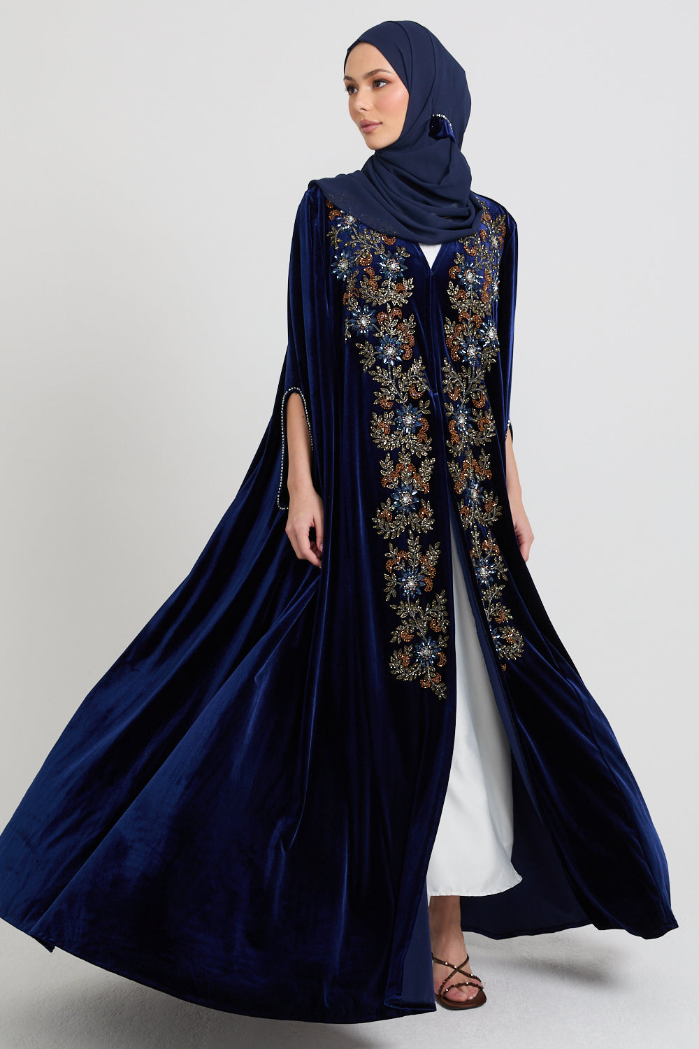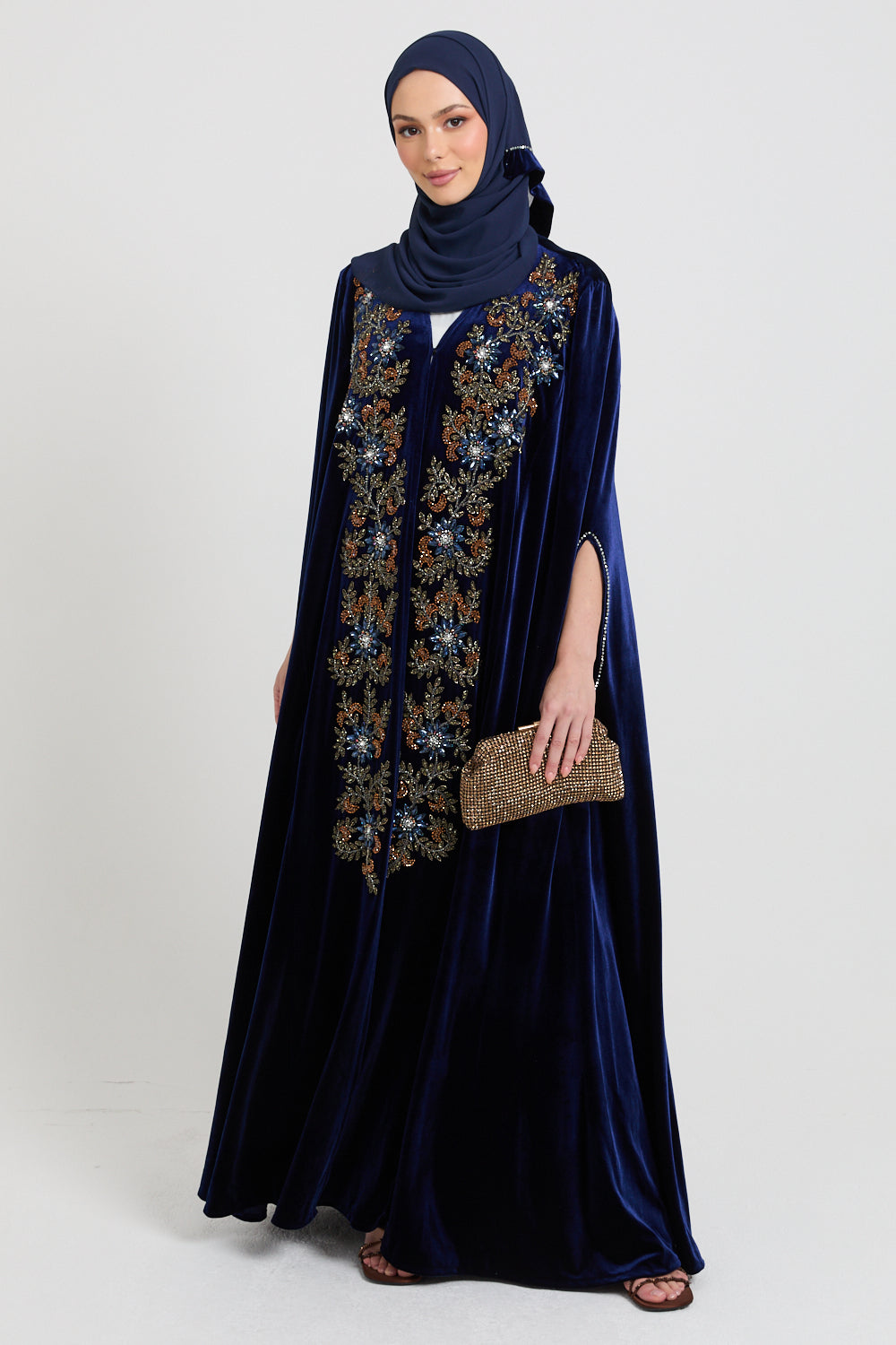 Luxury Sapphire Bloom Velvet Embellished Cape