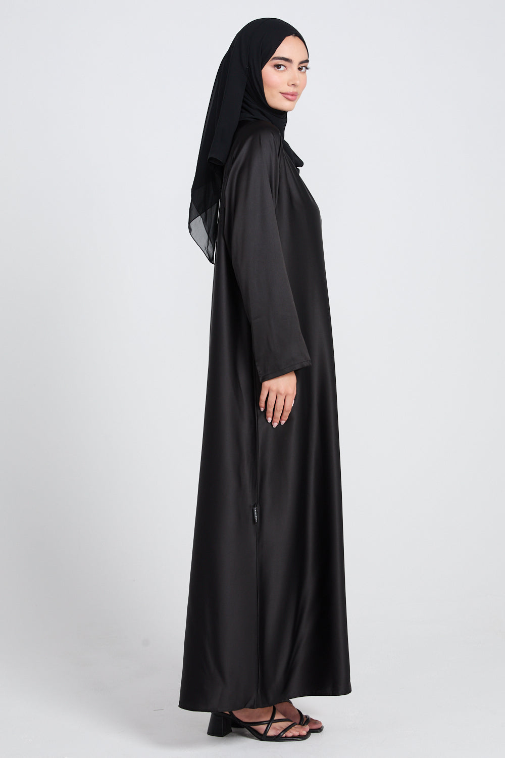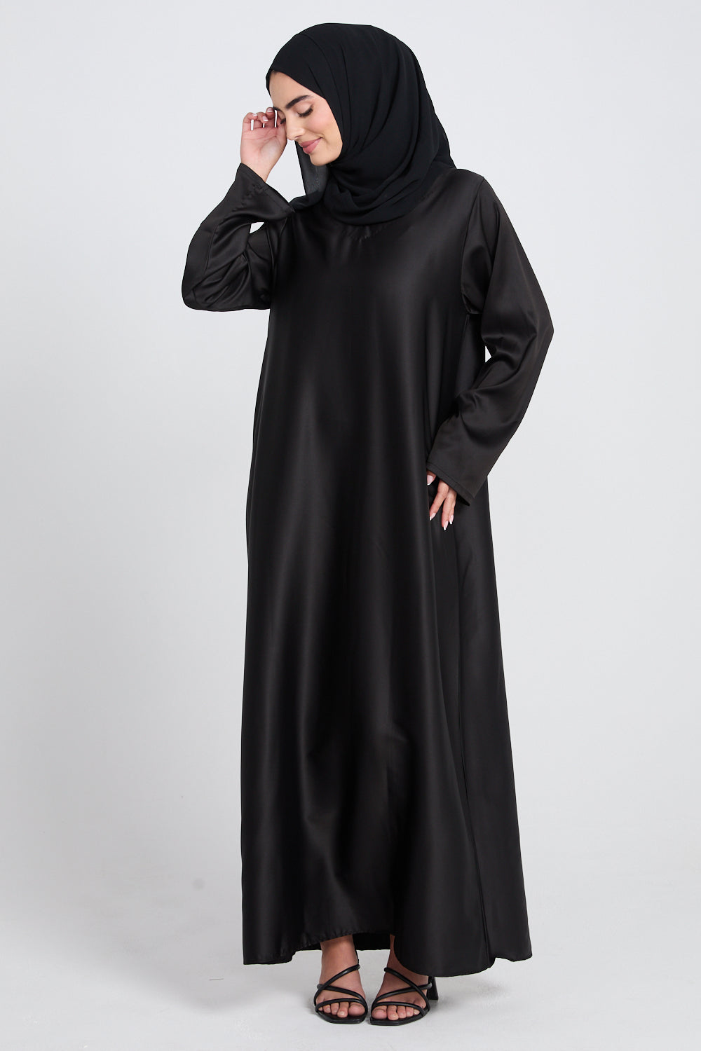 Get ready to elevate your style with our Premium Satin Inner Slip Dress! Made with soft luxurious satin, this dress features a flattering v neckline and a lining to ensure it's less transparent. Perfect for wearing with open abayas or on its own, this lightweight dress is the perfect addition to any occasion outfit. Upgrade your wardrobe today!