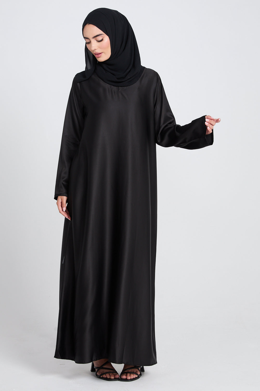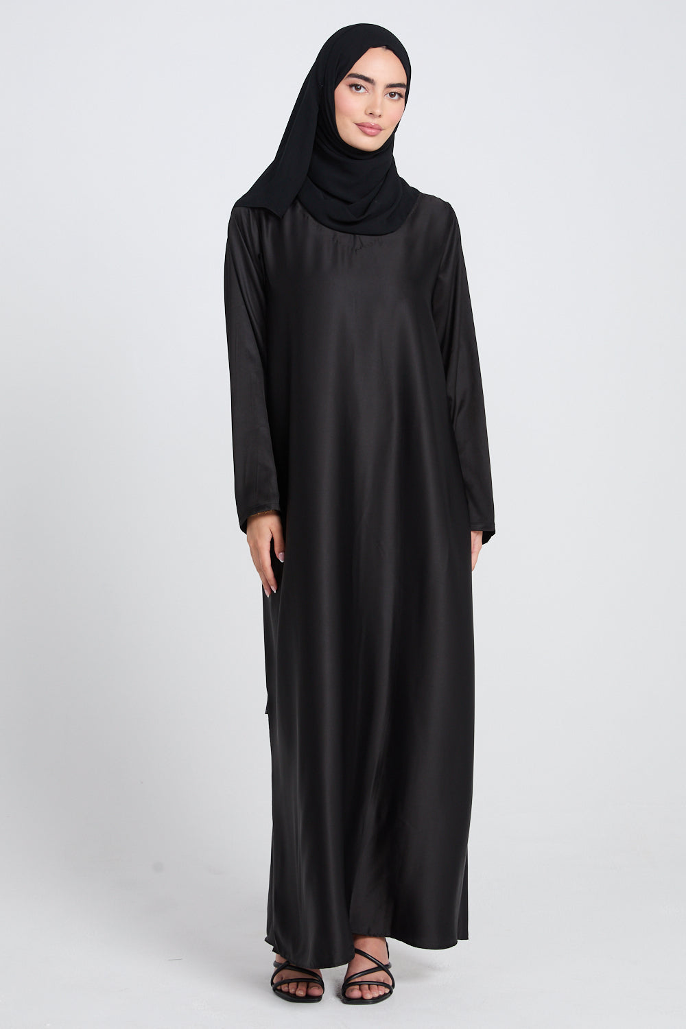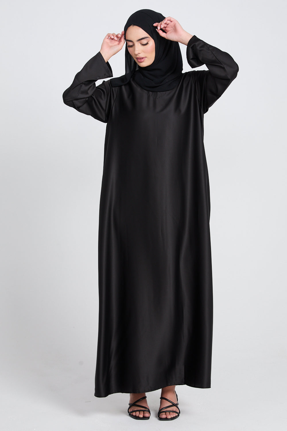 Premium Black Satin Inner Slip Dress - LONG SLEEVE