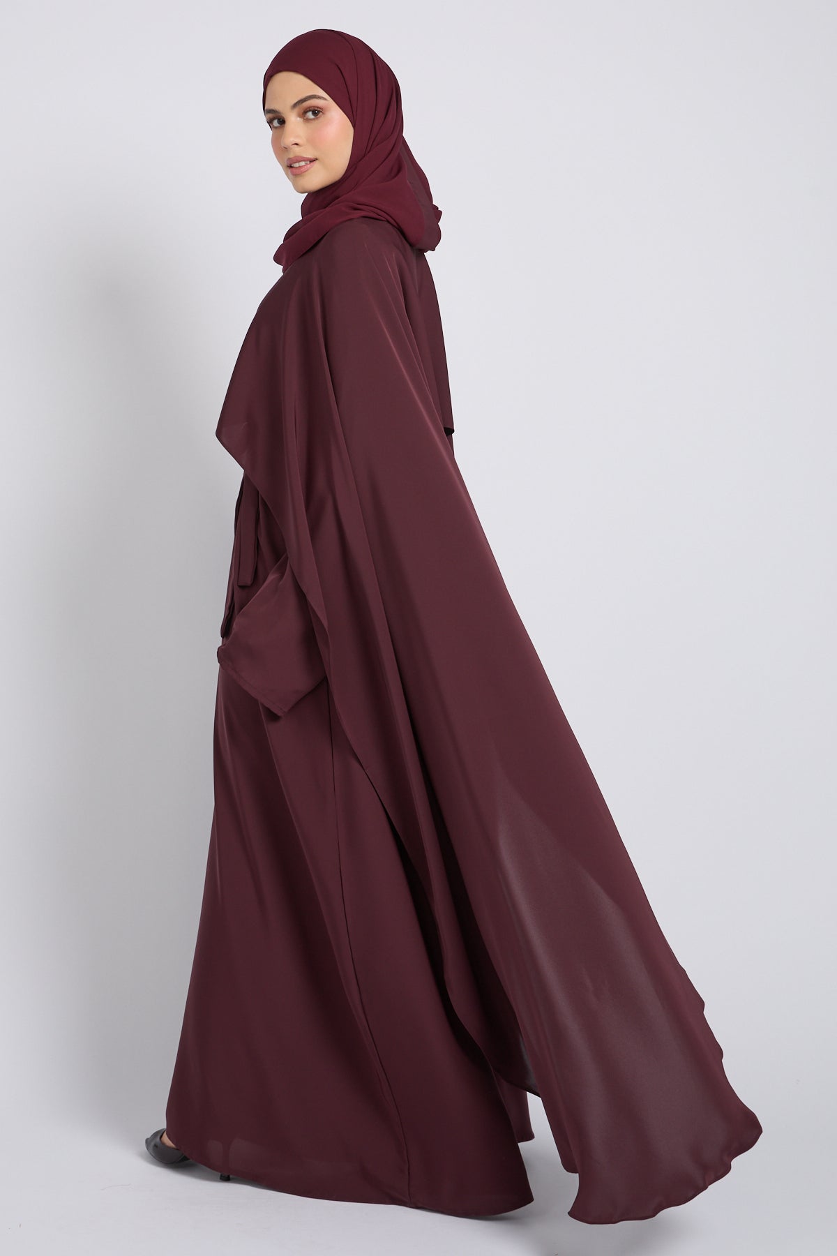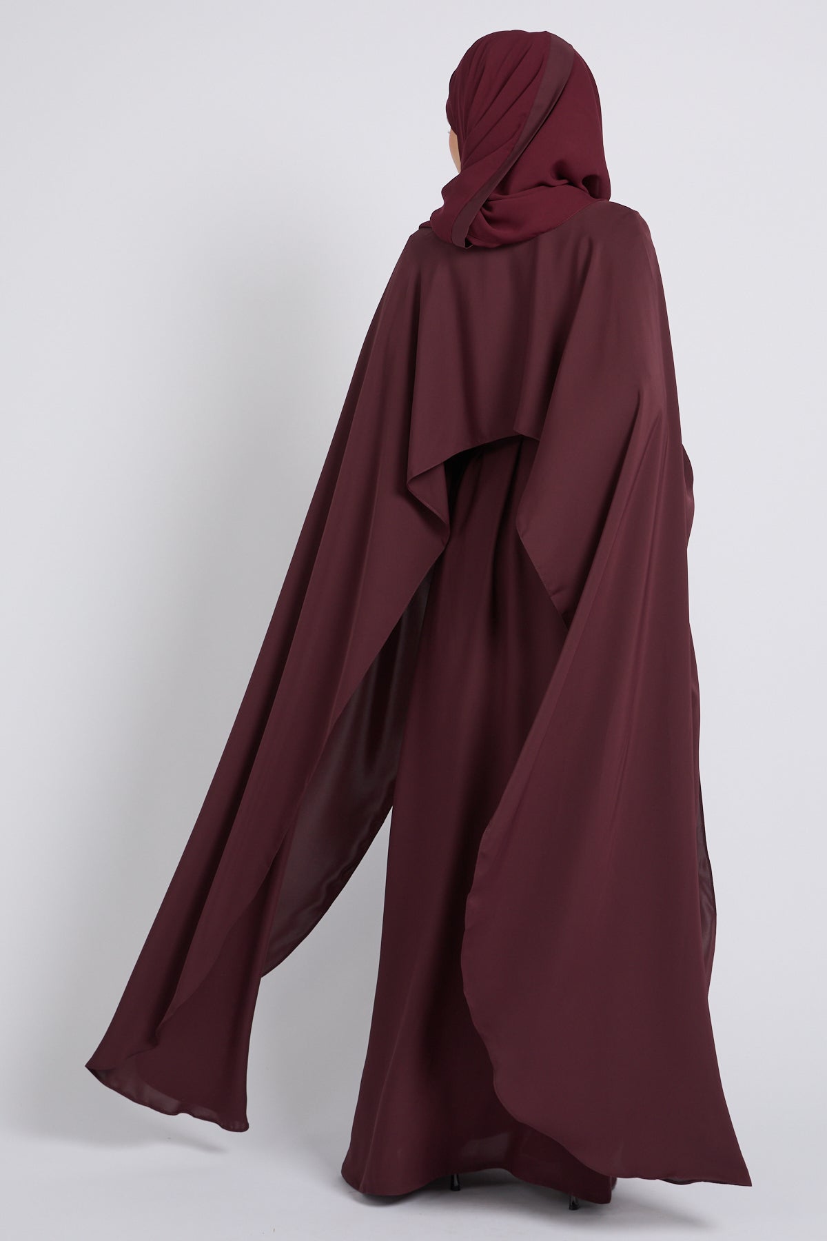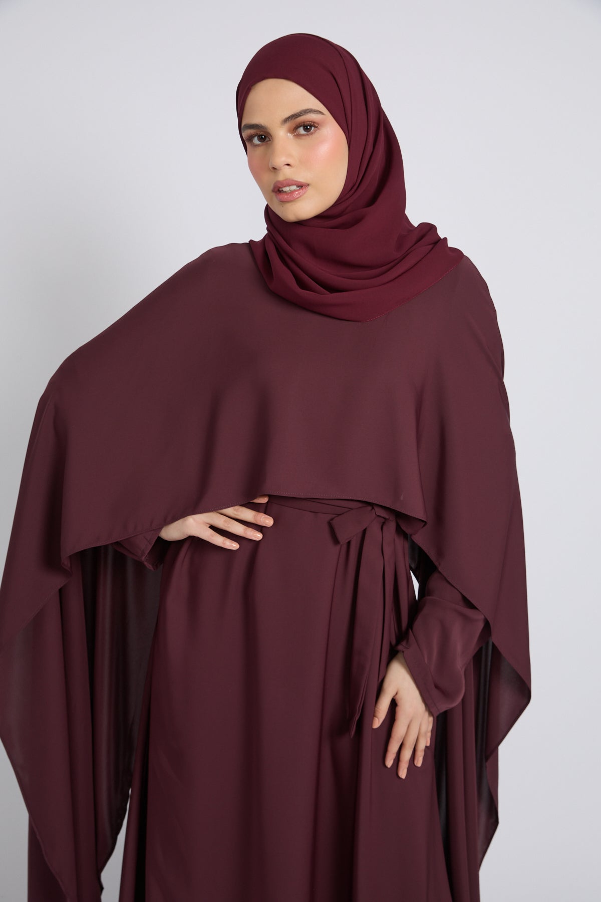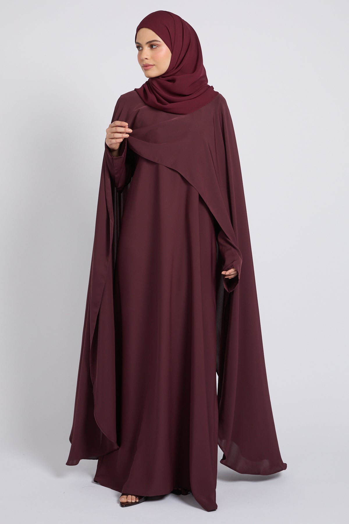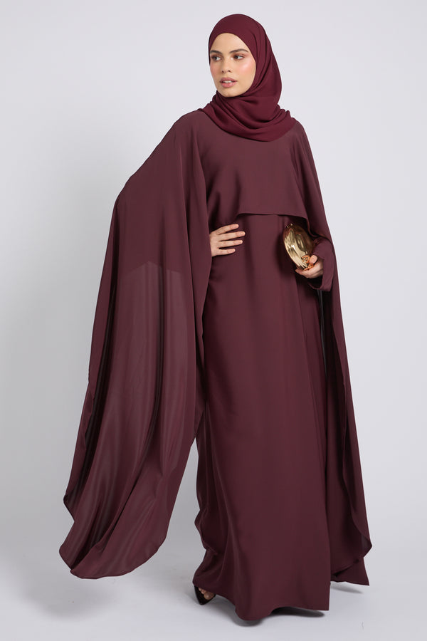 Premium Closed Abaya with Draped Veil – Dusky Berry