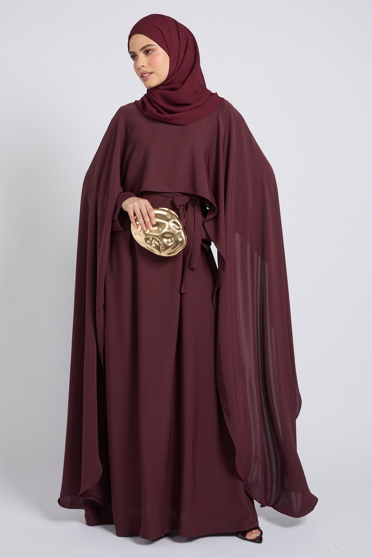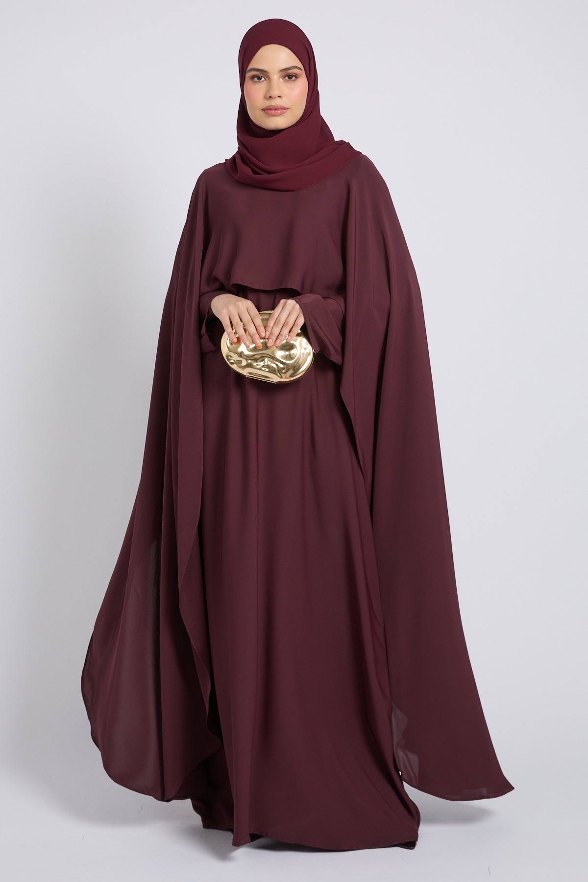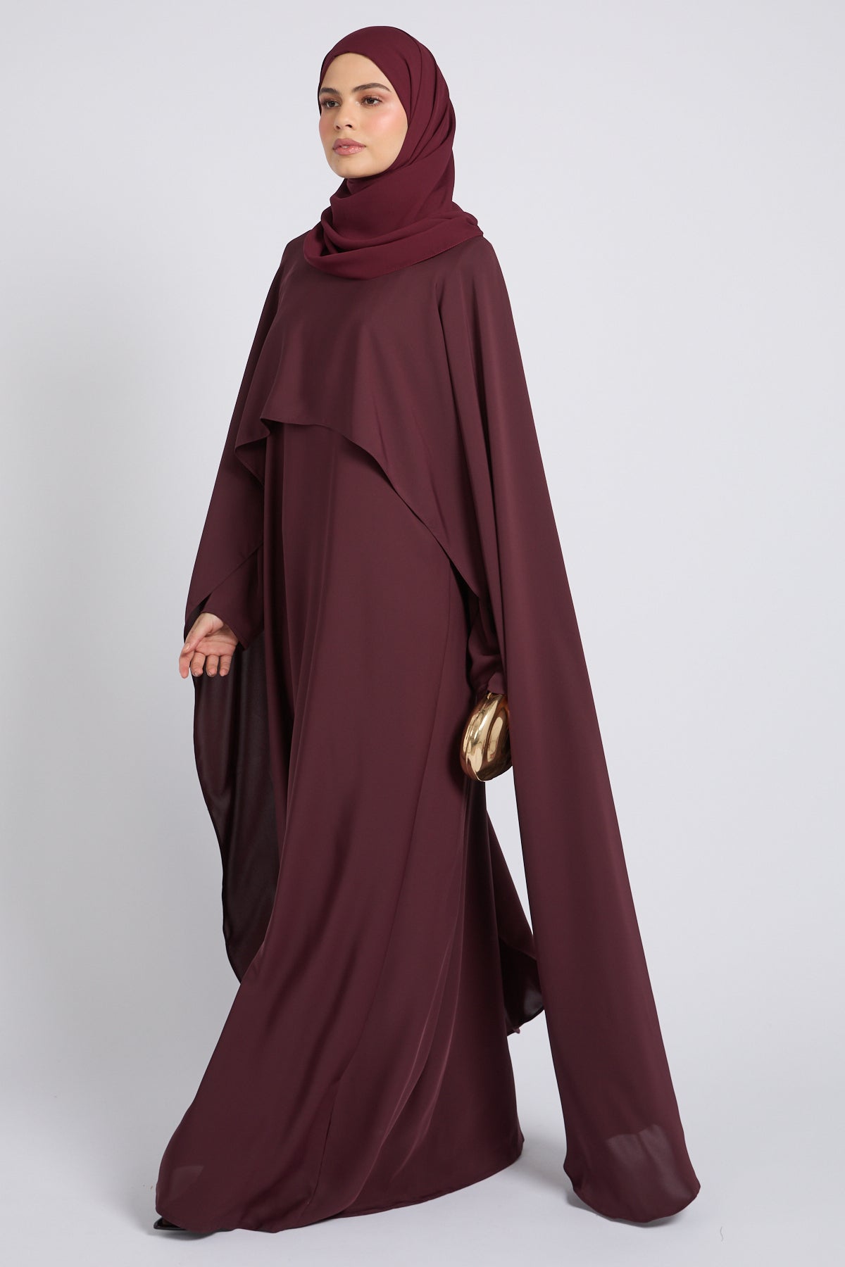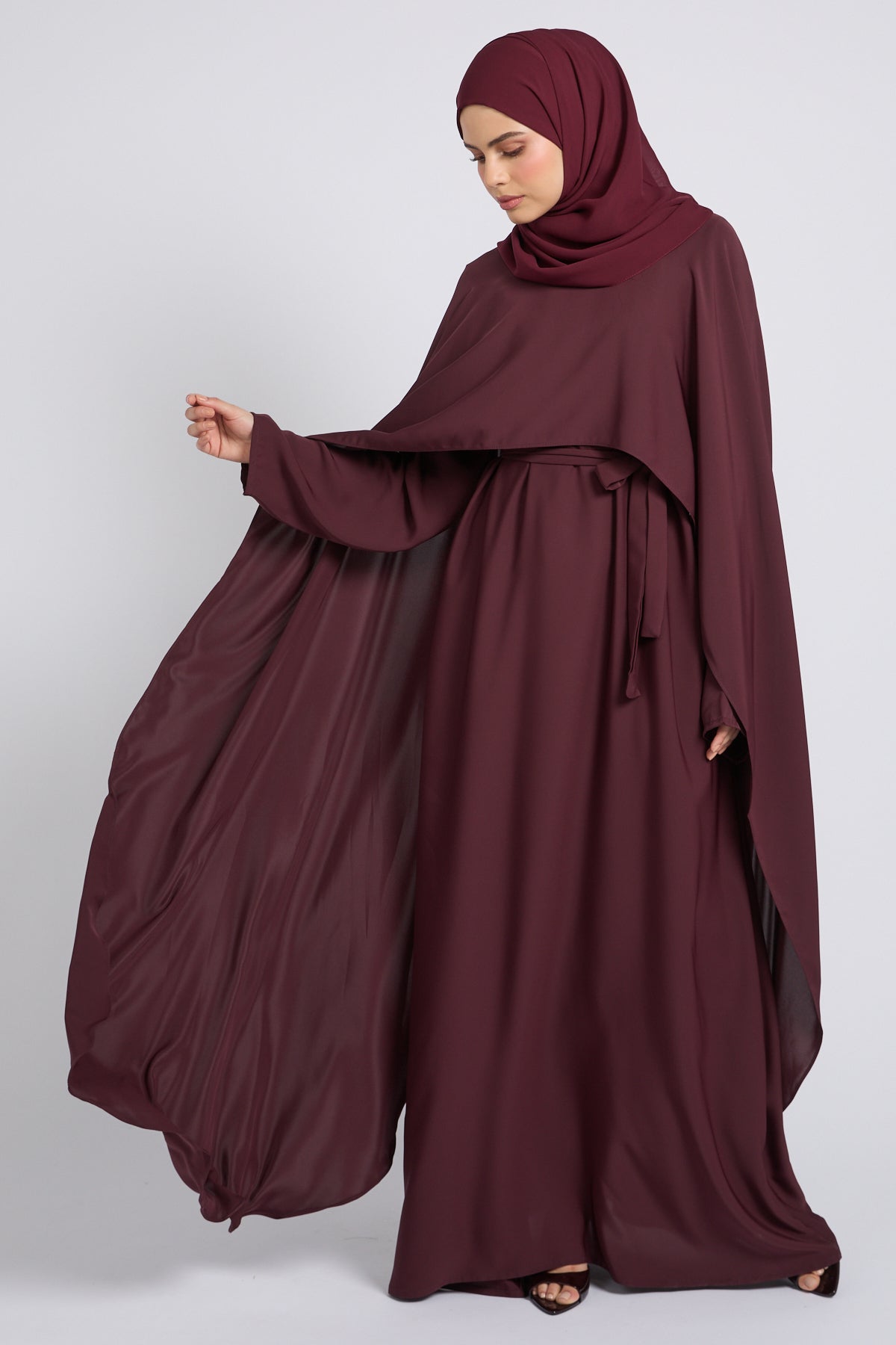 Premium Closed Abaya with Draped Veil – Dusky Berry