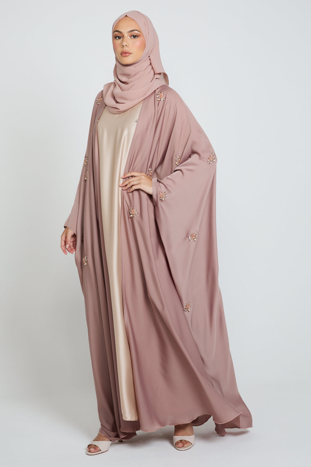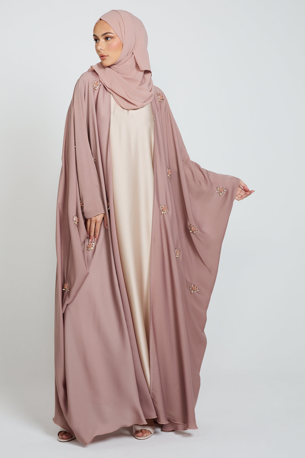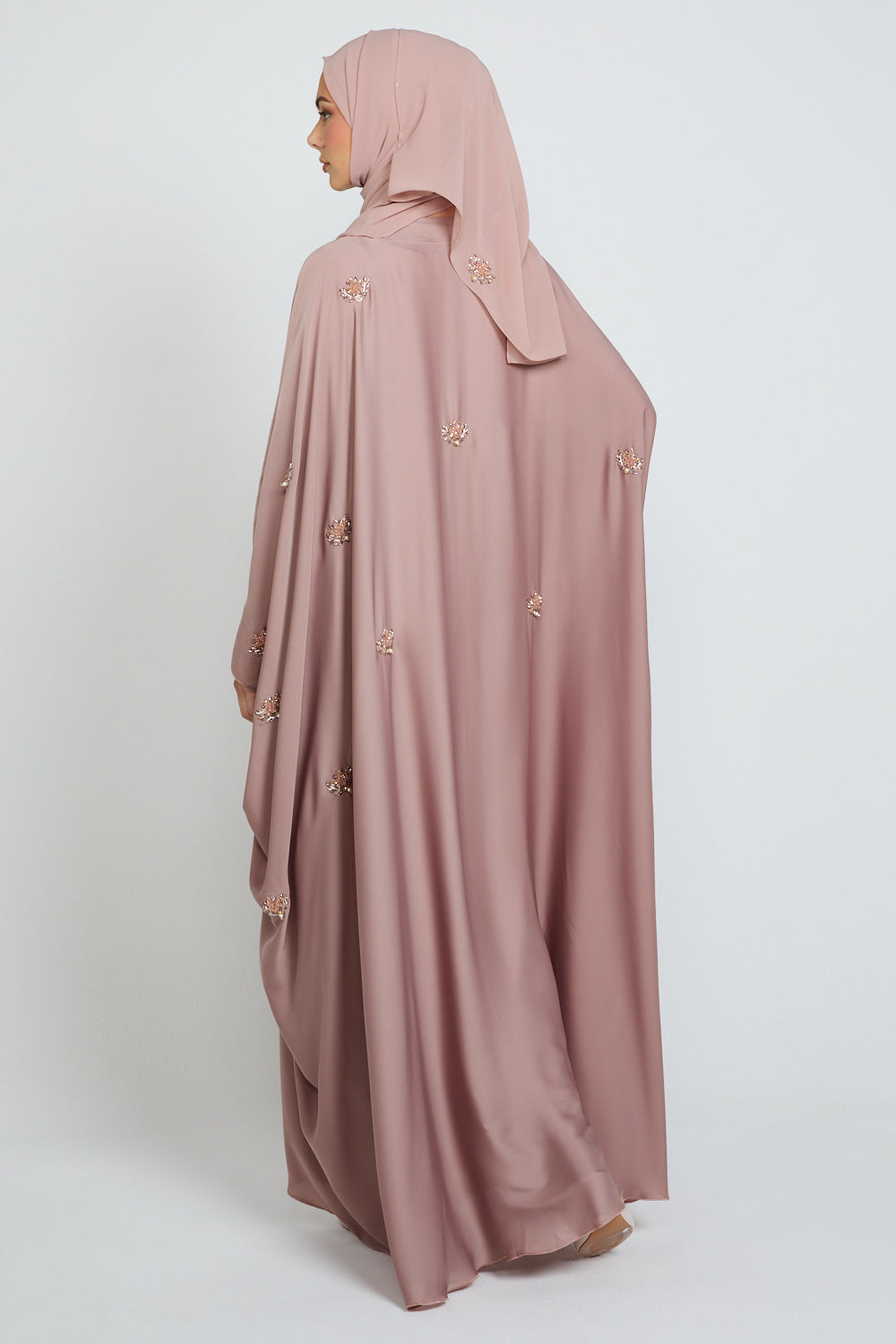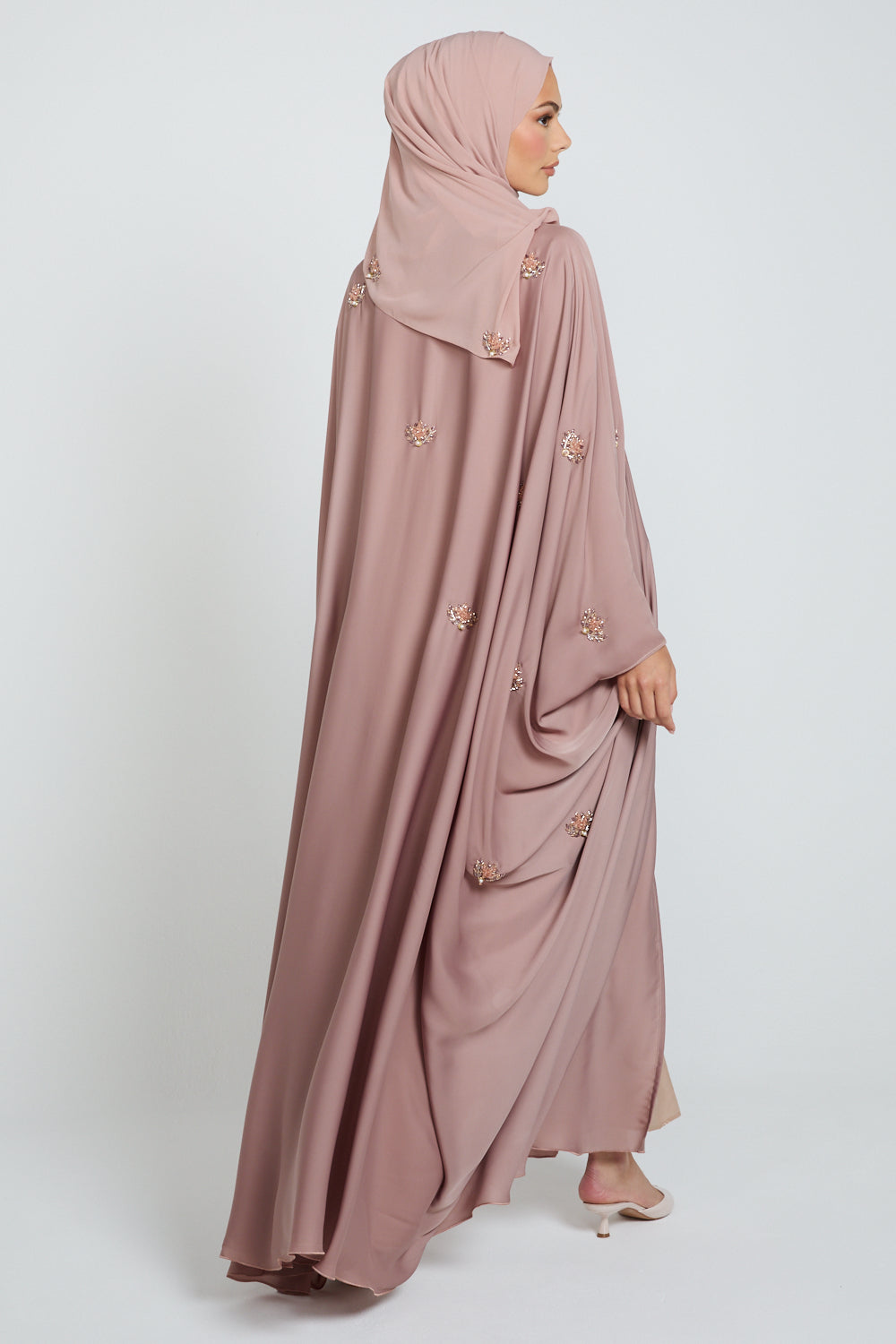 Introducing the Premium Embellished Stone Blush Open Farasha—a graceful expression of femininity and timeless elegance. The Stone Blush shade, a gentle fusion of warm beige and muted rose, offers a soft, refined tone that blends effortlessly into any wardrobe. Understated yet sophisticated, it brings a calm, graceful charm to every occasion.