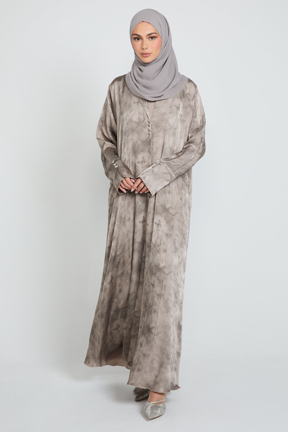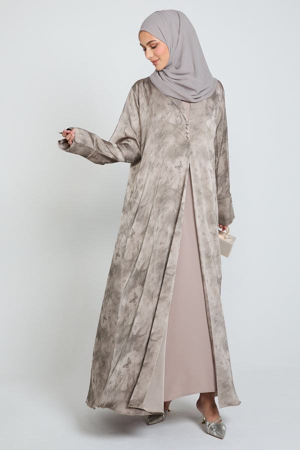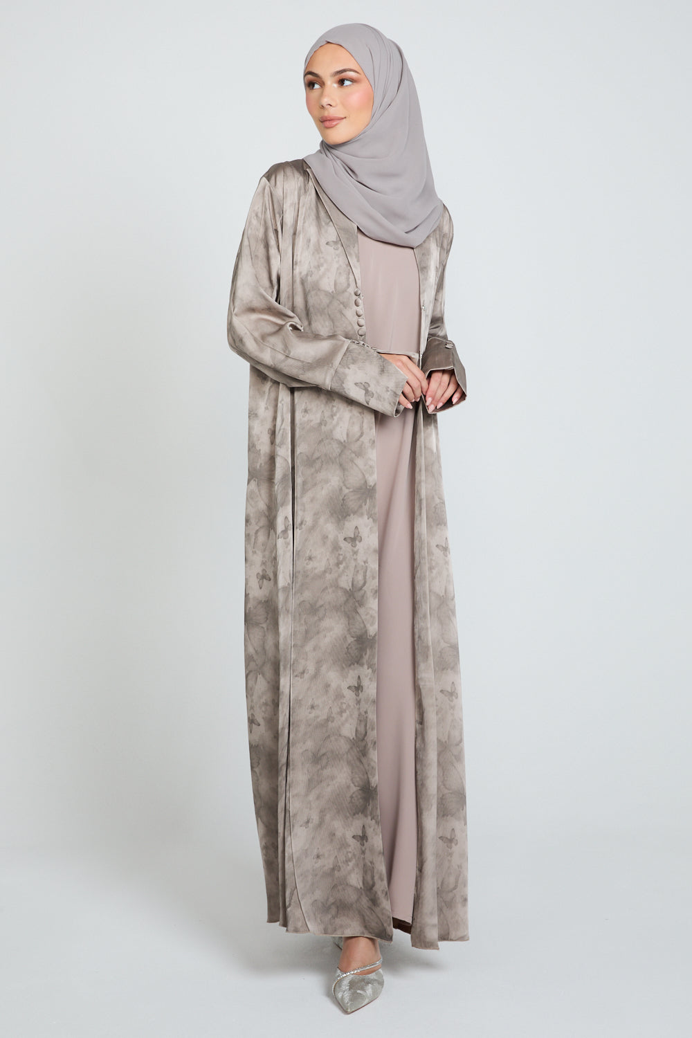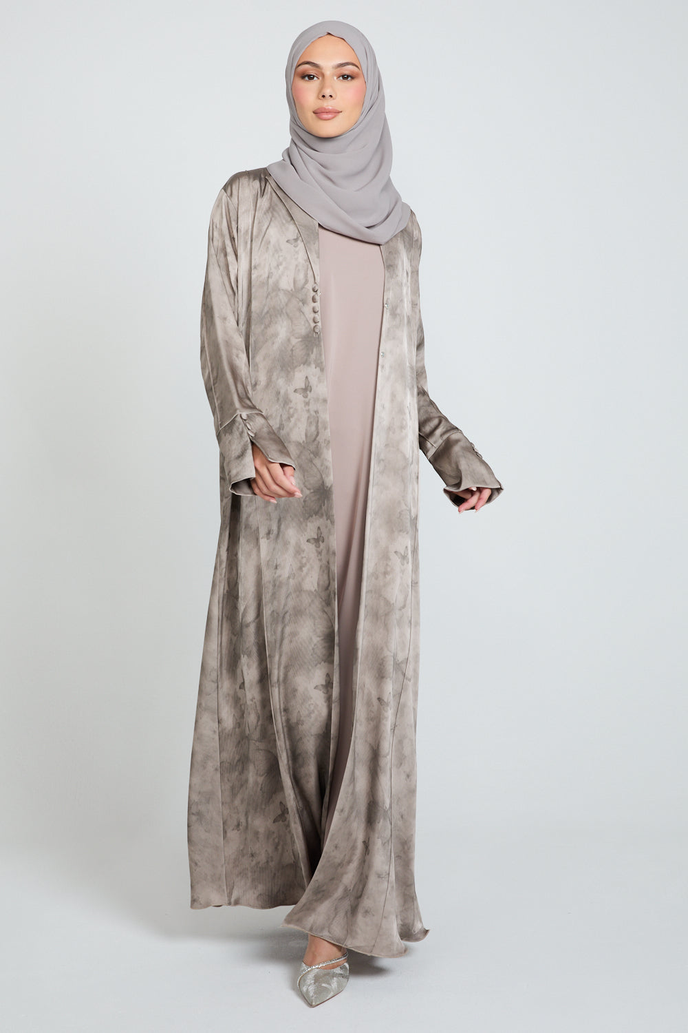Premium Floral Mirage Blazer Open Abaya - Desert Mist- LIMITED EDITION
