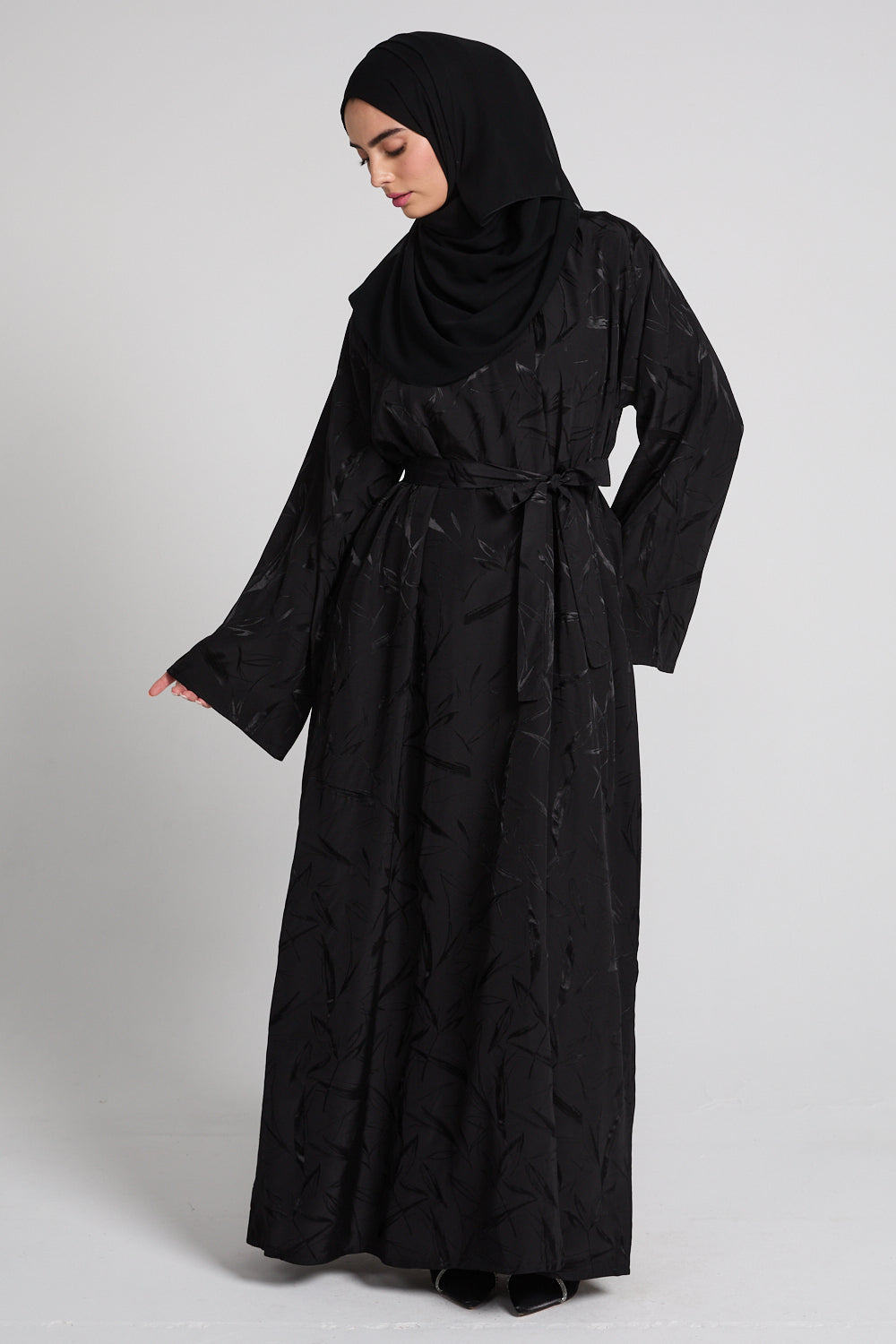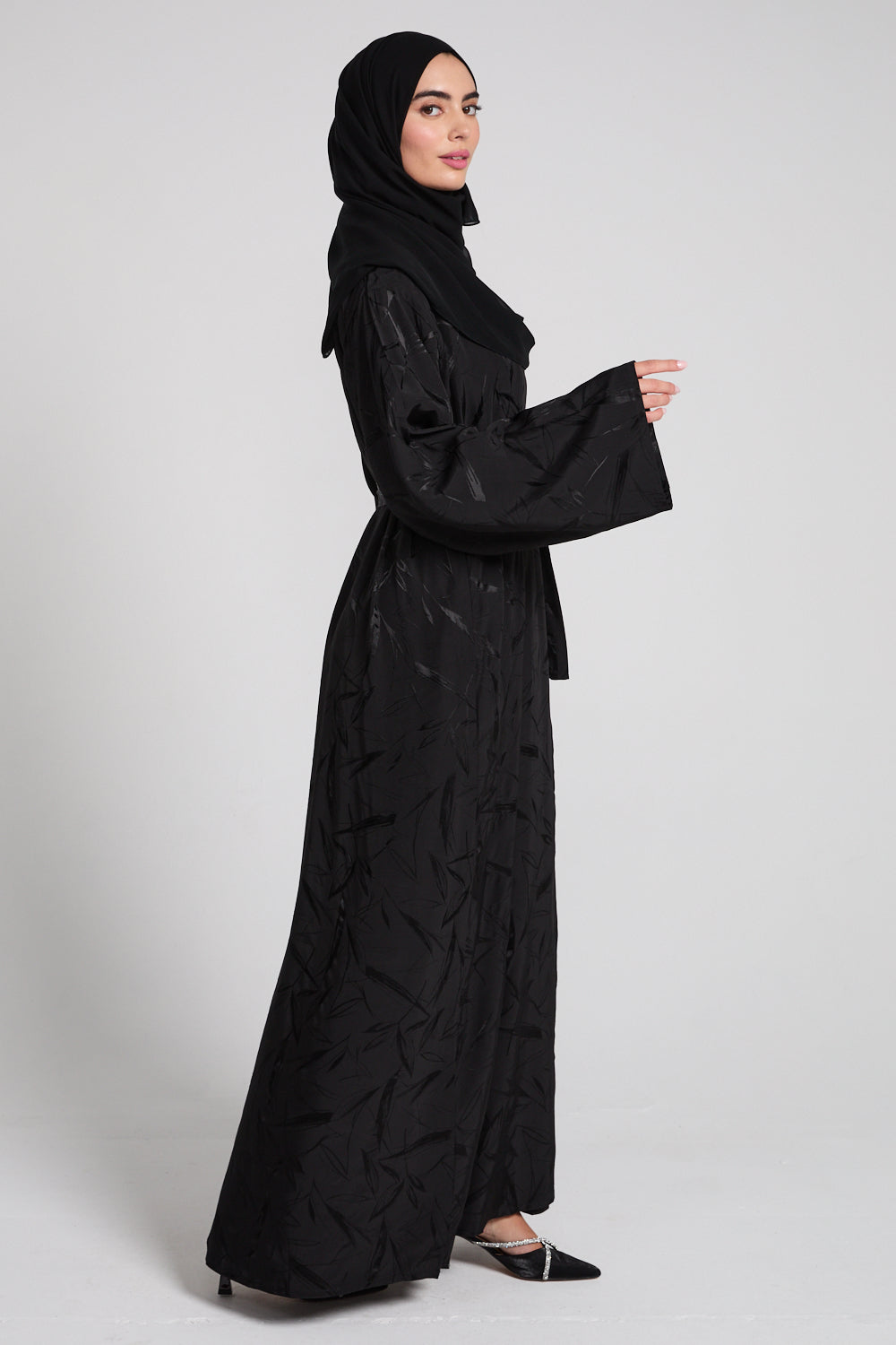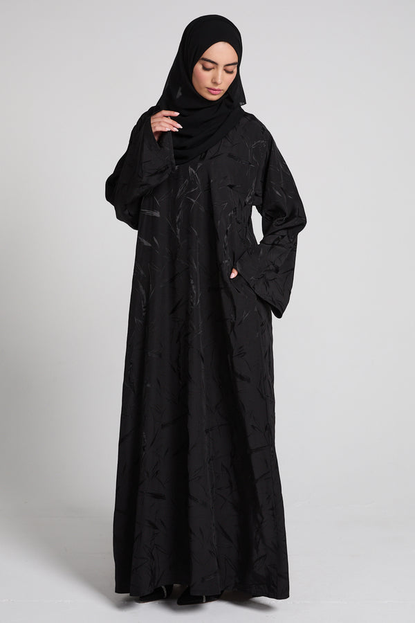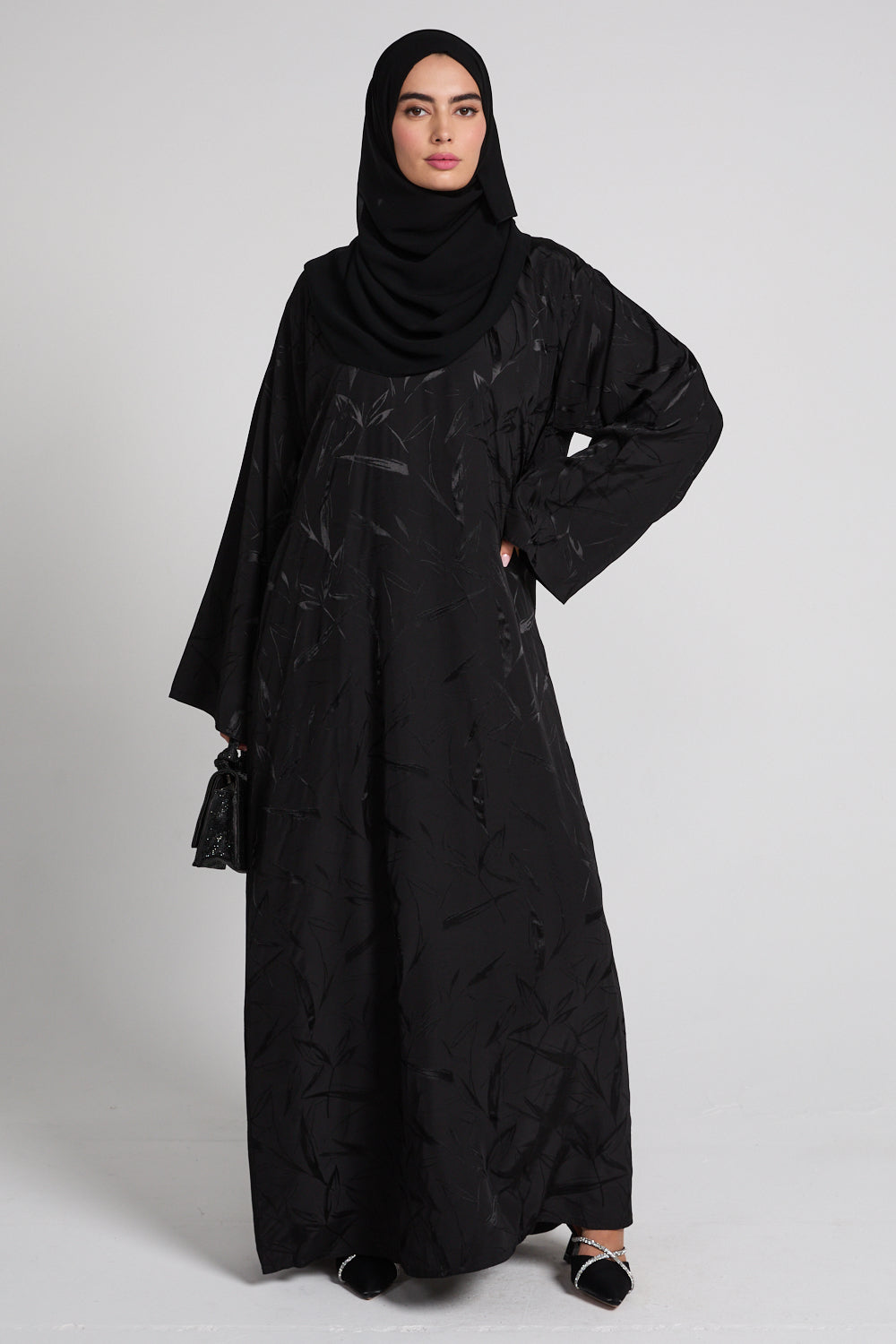 The Premium Jacquard Closed Abaya in Black is a timeless classic redefined with modern sophistication. Crafted from luxuriously textured jacquard fabric, it features a subtle woven pattern that adds depth and elegance to its sleek, minimal silhouette.