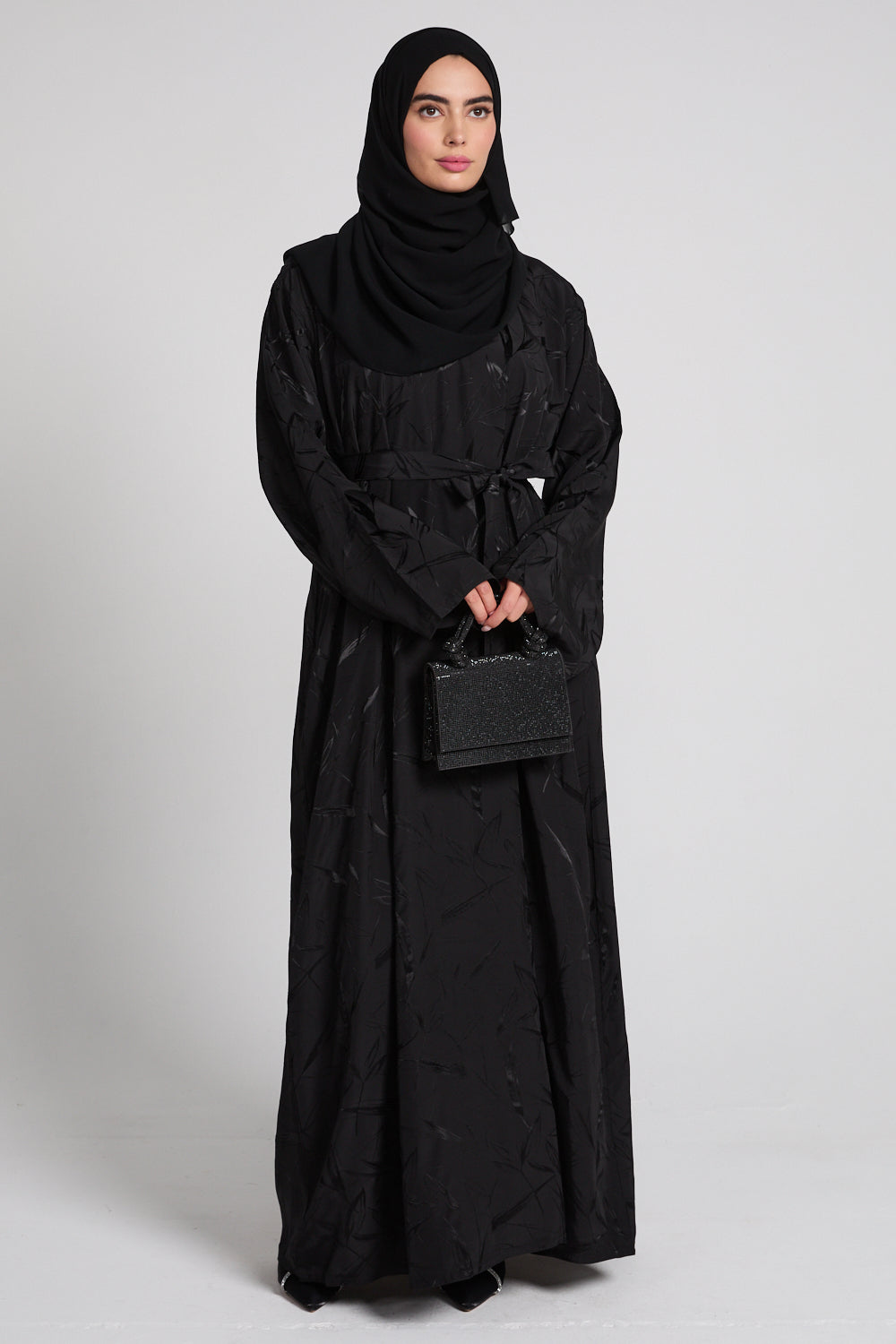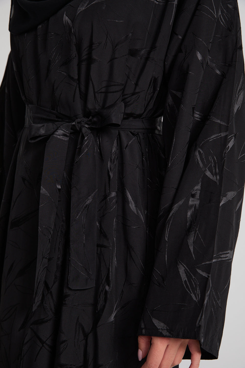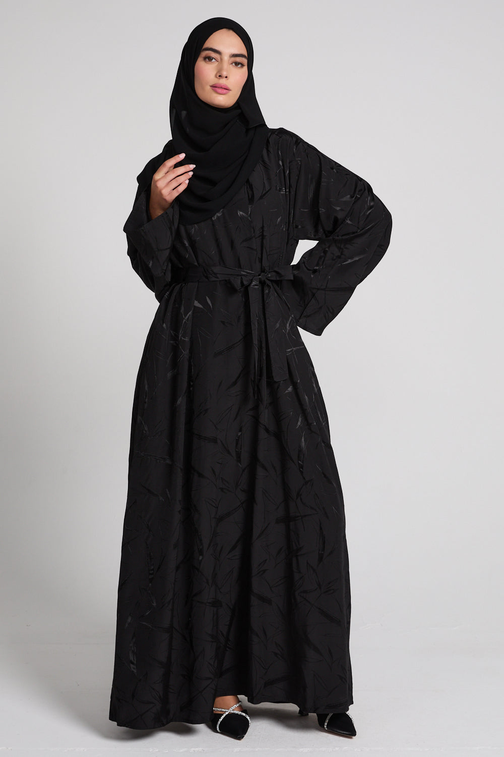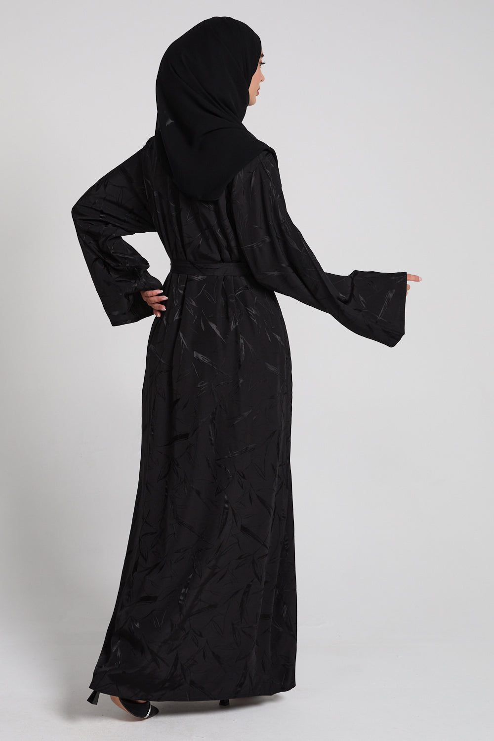 The Premium Jacquard Closed Abaya in Black is a timeless classic redefined with modern sophistication. Crafted from luxuriously textured jacquard fabric, it features a subtle woven pattern that adds depth and elegance to its sleek, minimal silhouette.