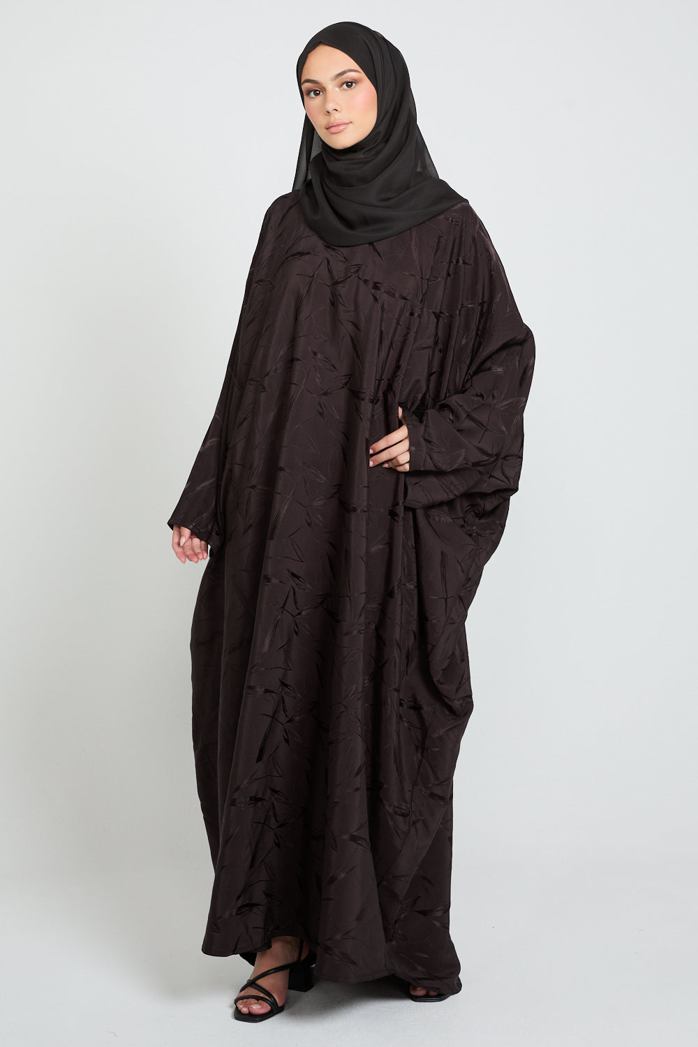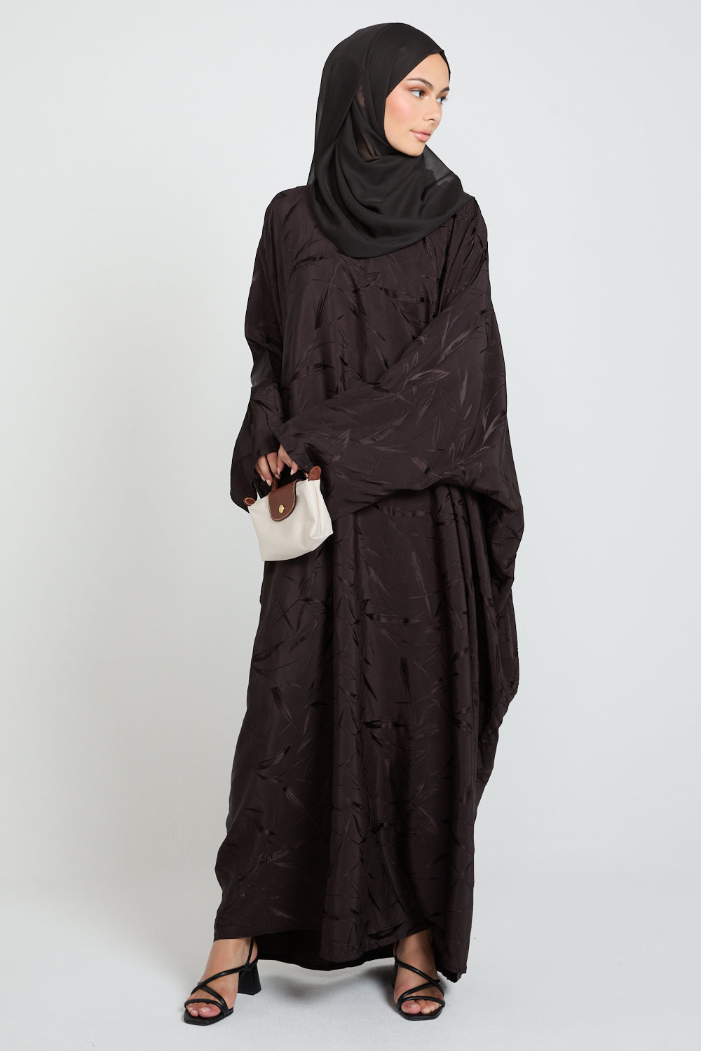 Embrace the art of refined modesty with the Nightshade Brown Farasha — a flowing silhouette crafted for grace, comfort, and quiet sophistication. Draped in a deep, moody brown with subtle plum undertones, this farasha evokes the richness of aged bark, dusk-lit earth, and the mysterious elegance of nightfall.