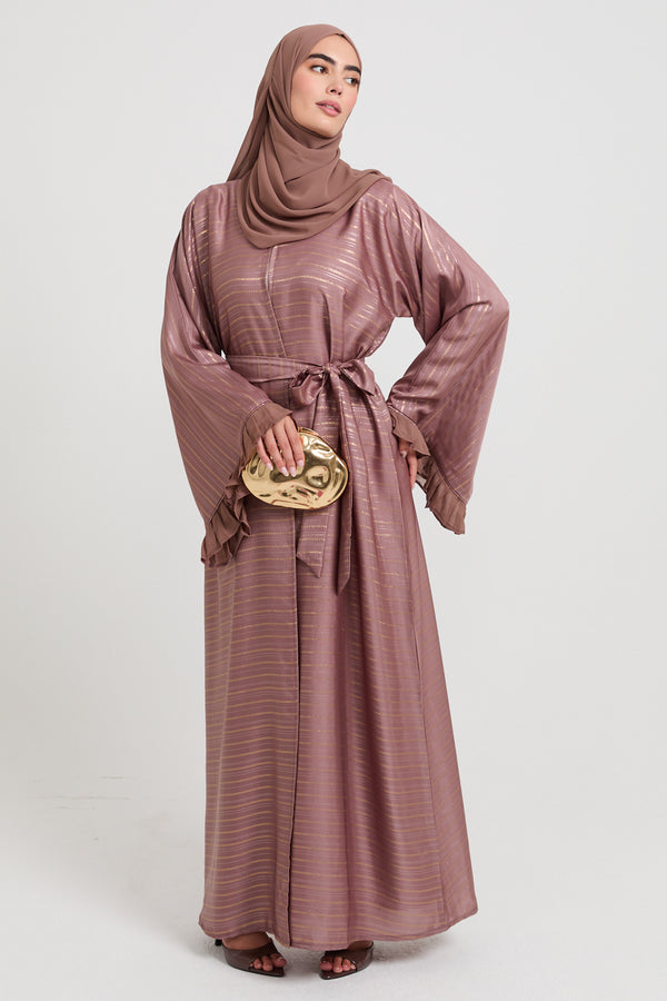 Premium Jacquard Floral Open Abaya - Mauve Rose - LIMITED EDITION