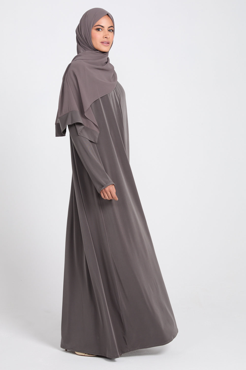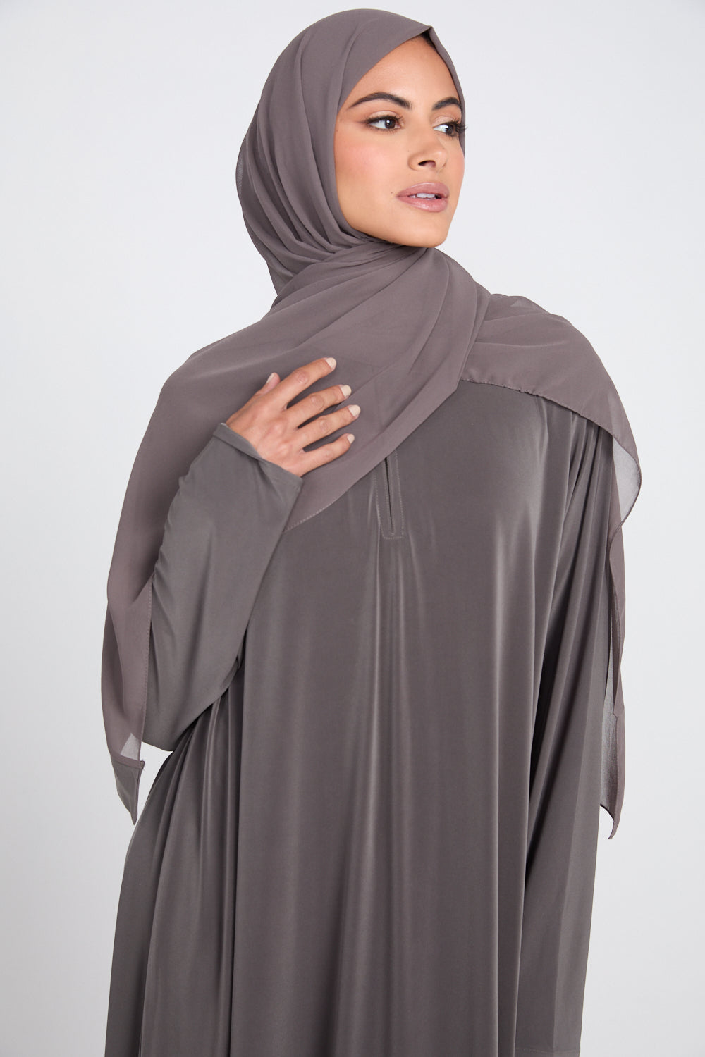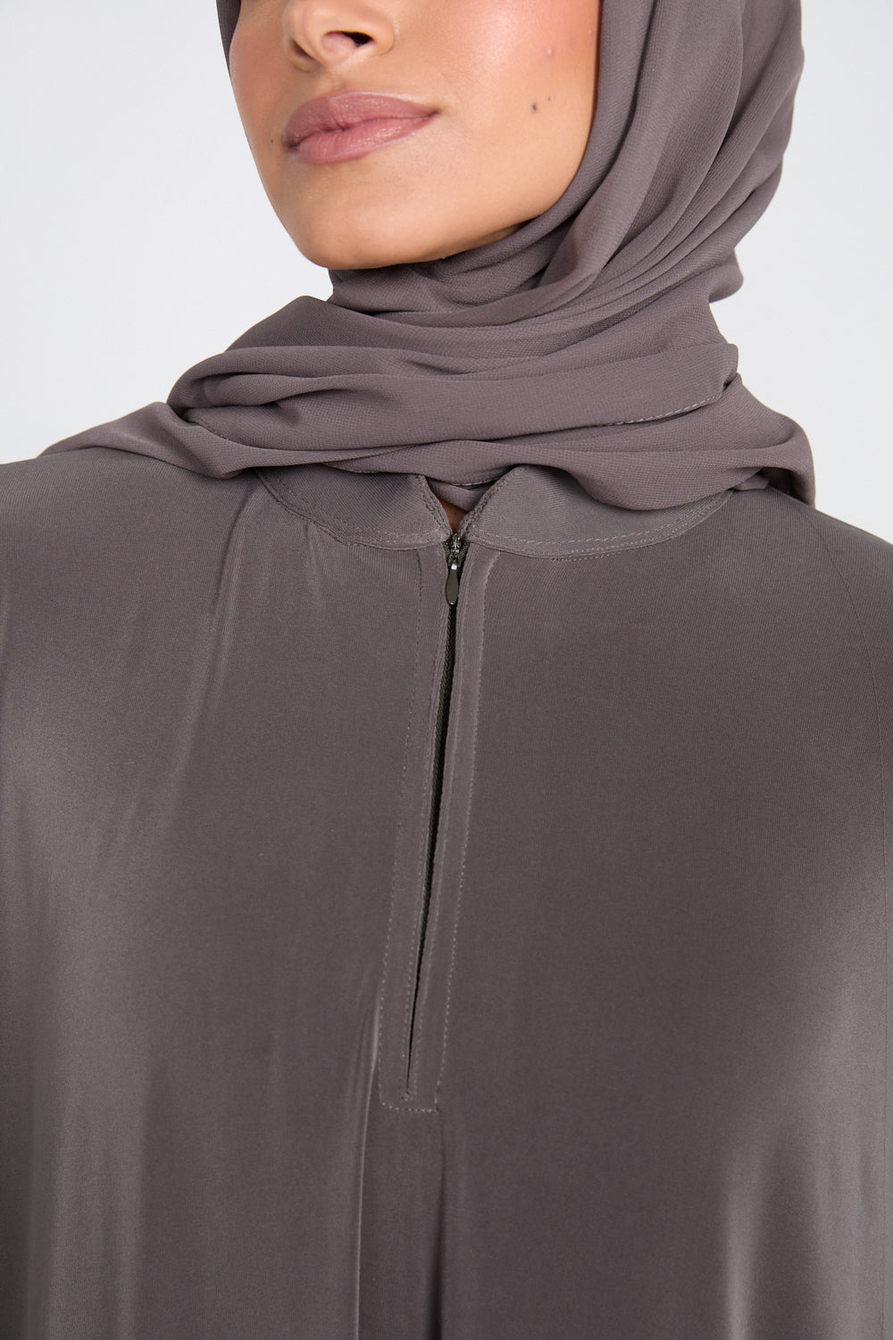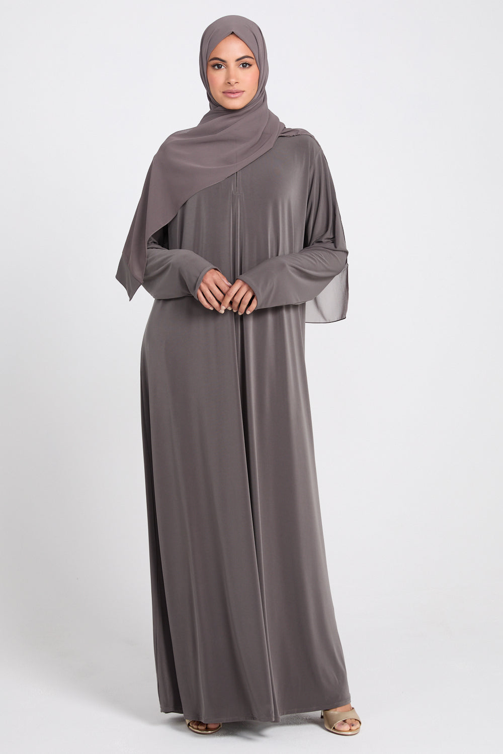 Premium Jersey Closed Abaya with Front Zip - Smoked Sagewood