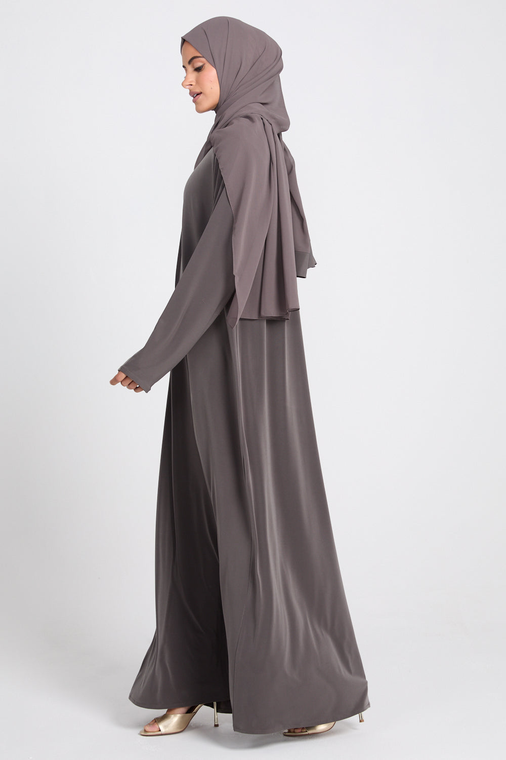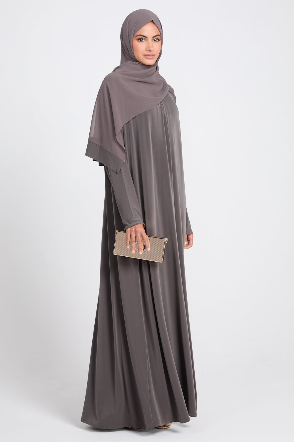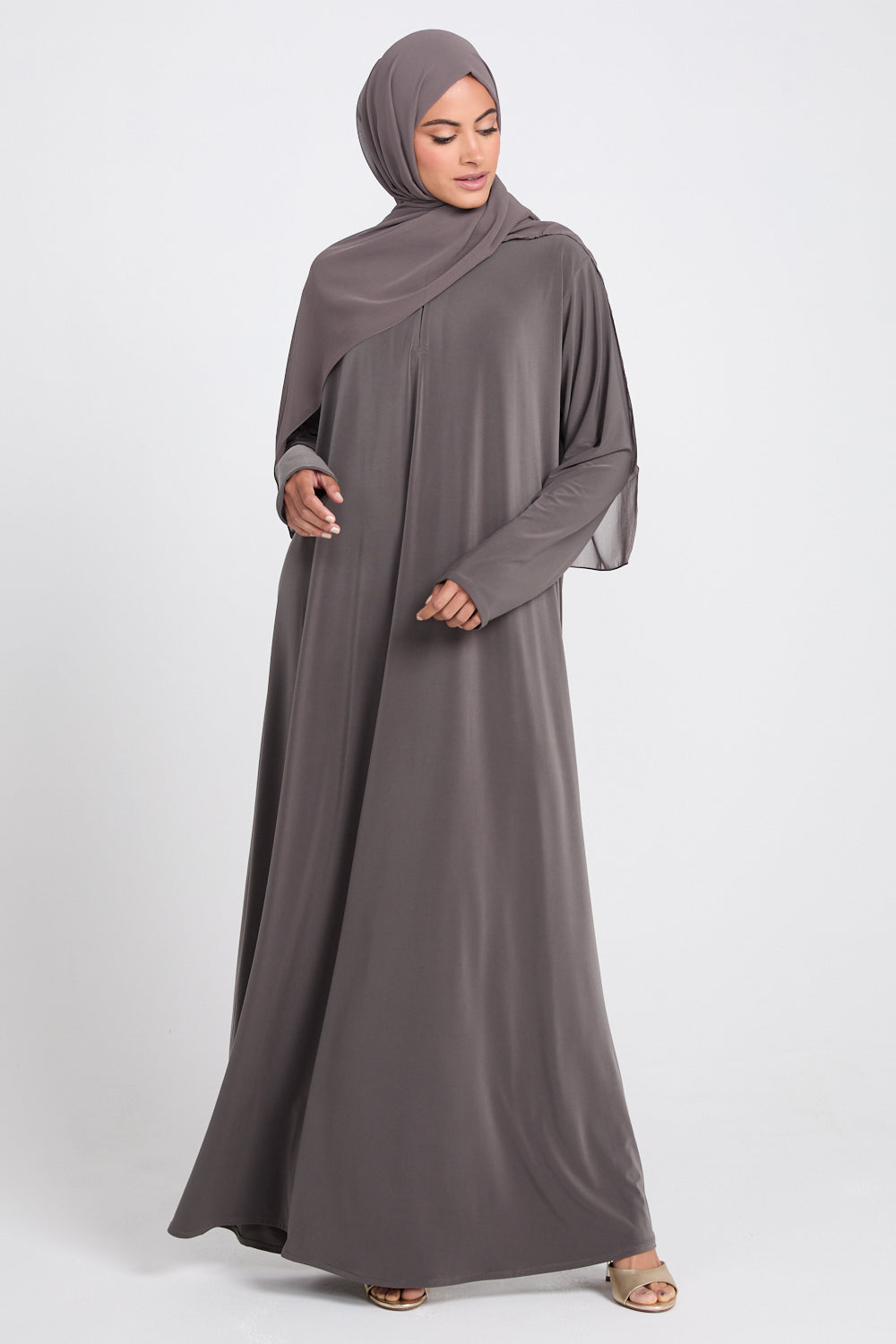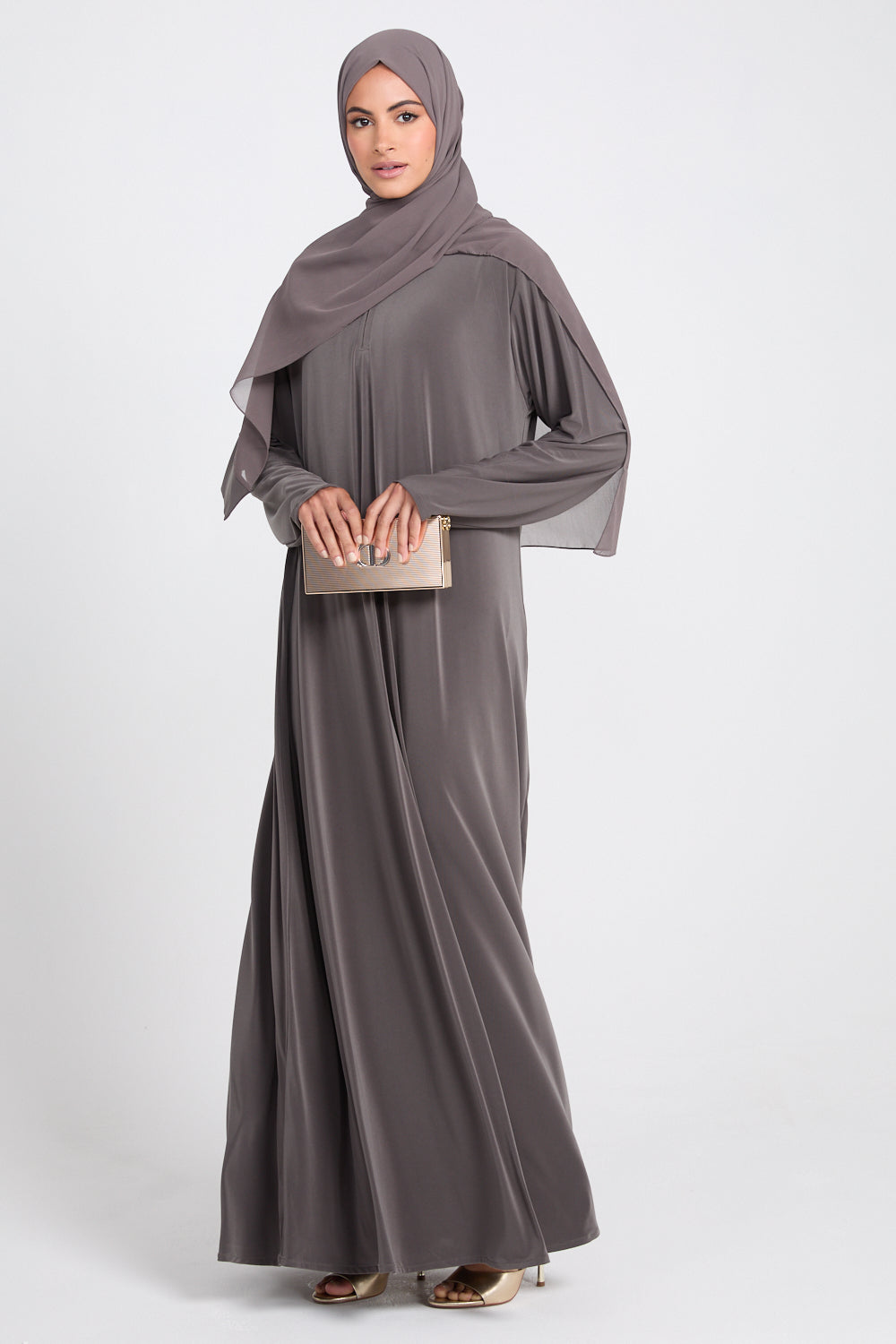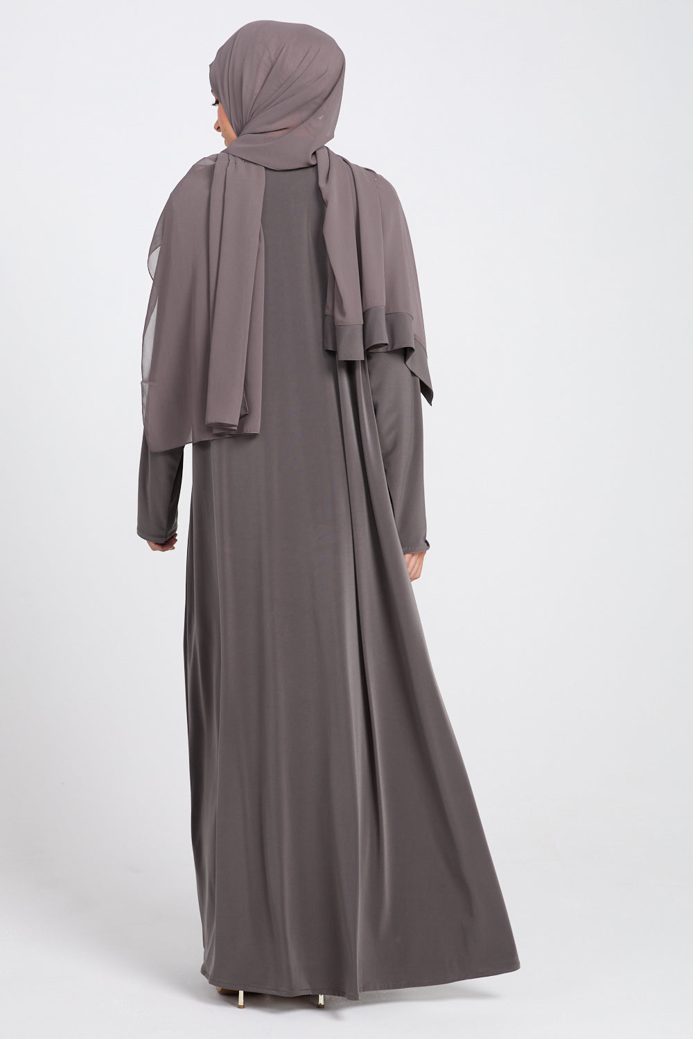 Premium Jersey Closed Abaya with Front Zip - Smoked Sagewood