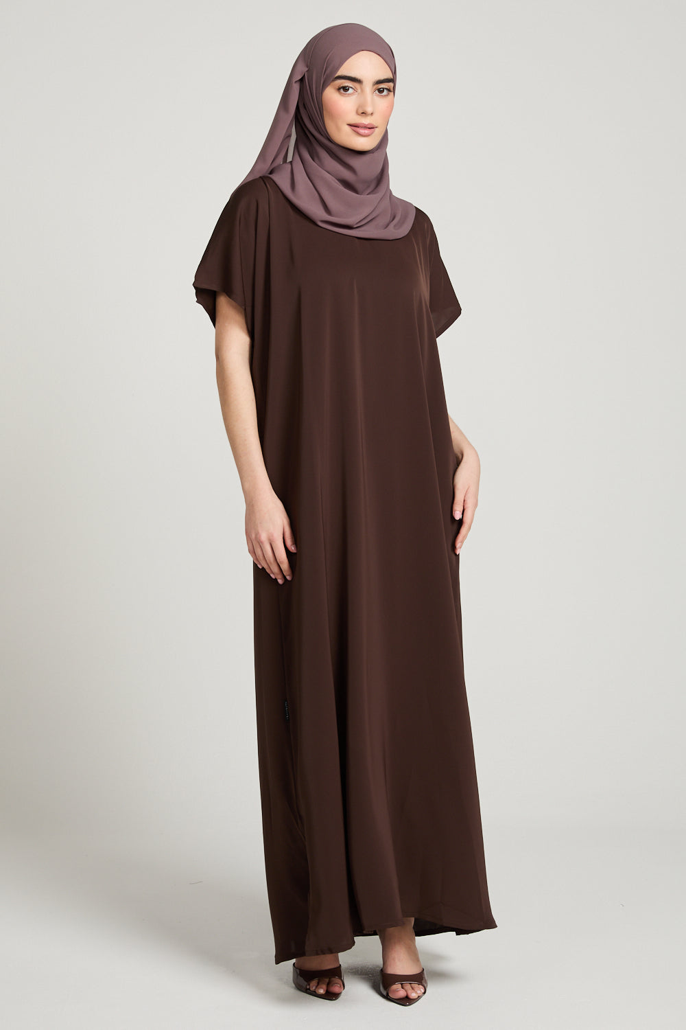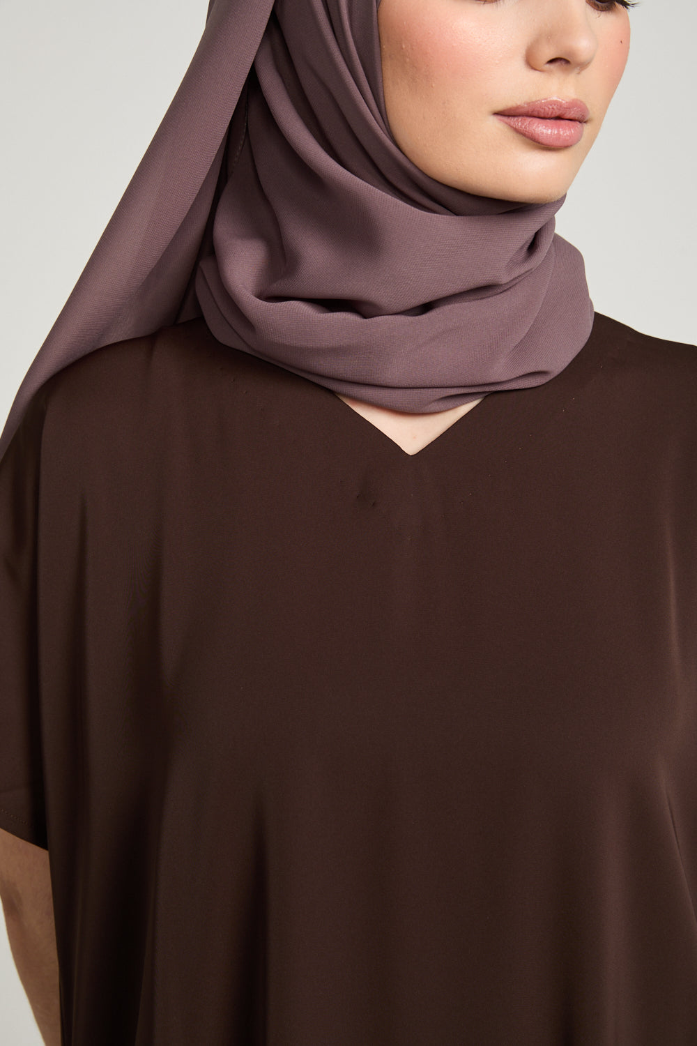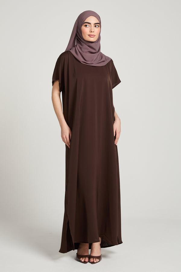 Stay chic and comfortable with our Premium Nidha Inner Slip Dress in versatile Mahogany Brown. Our luxurious dress also boasts a chic v neckline for added style. Designed to be worn under your abayas, stay cool and confident all day long.