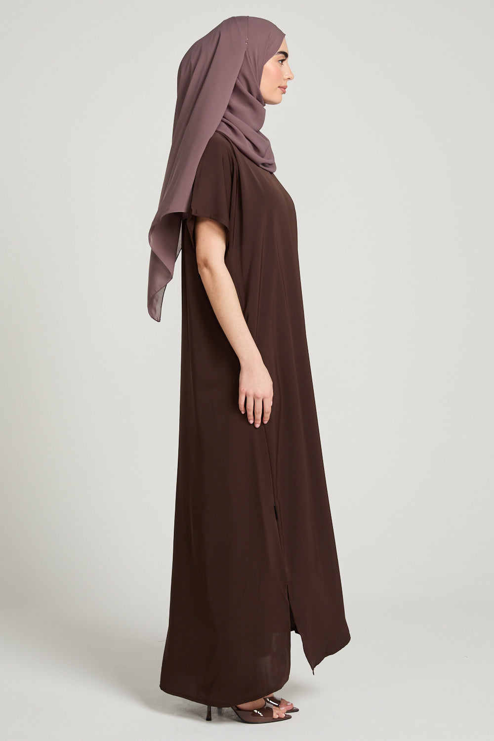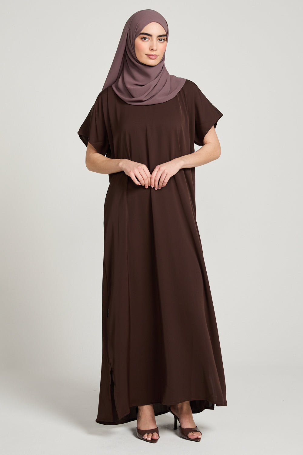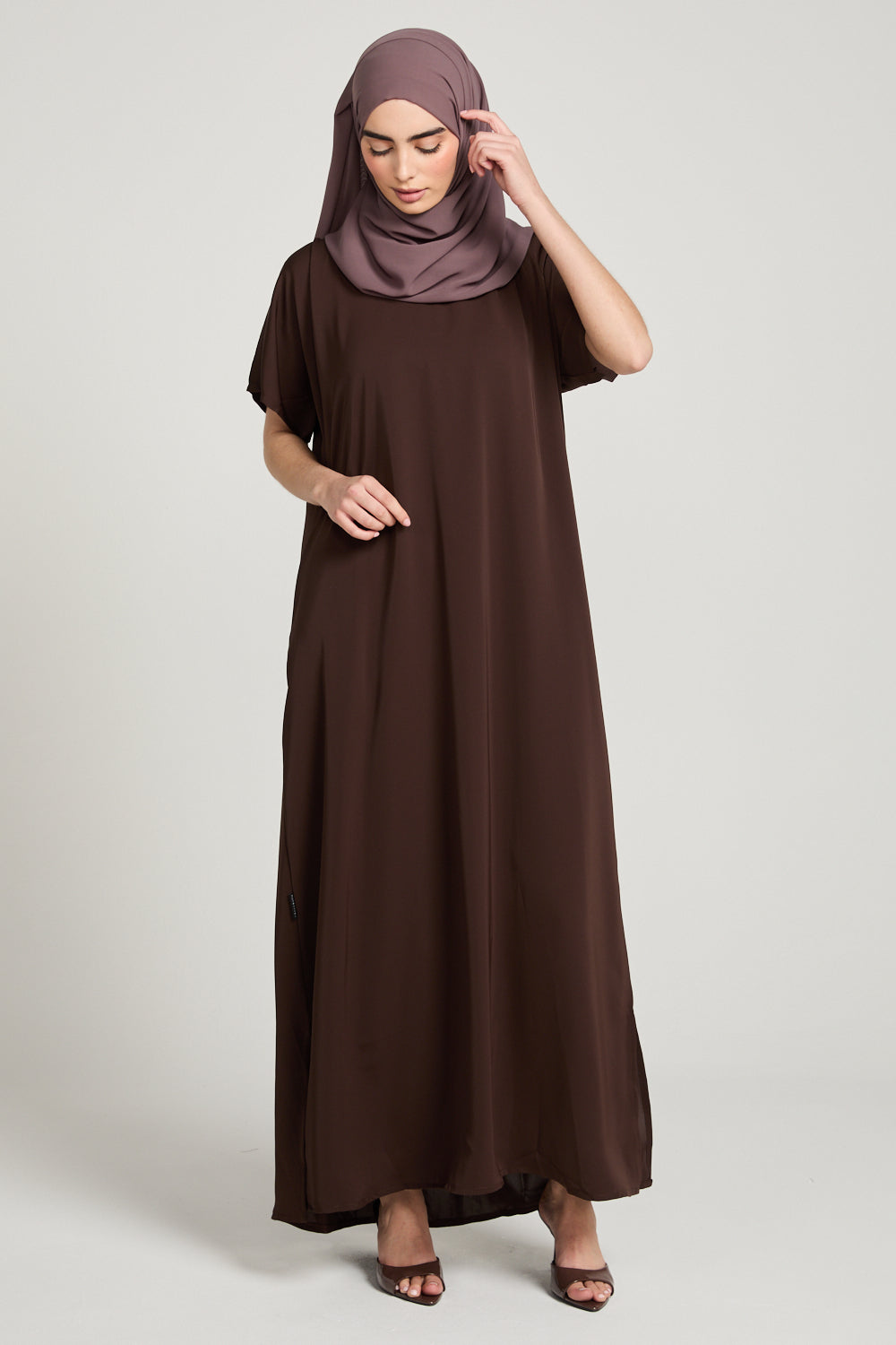 Stay chic and comfortable with our Premium Nidha Inner Slip Dress in versatile Mahogany Brown. Our luxurious dress also boasts a chic v neckline for added style. Designed to be worn under your abayas, stay cool and confident all day long.