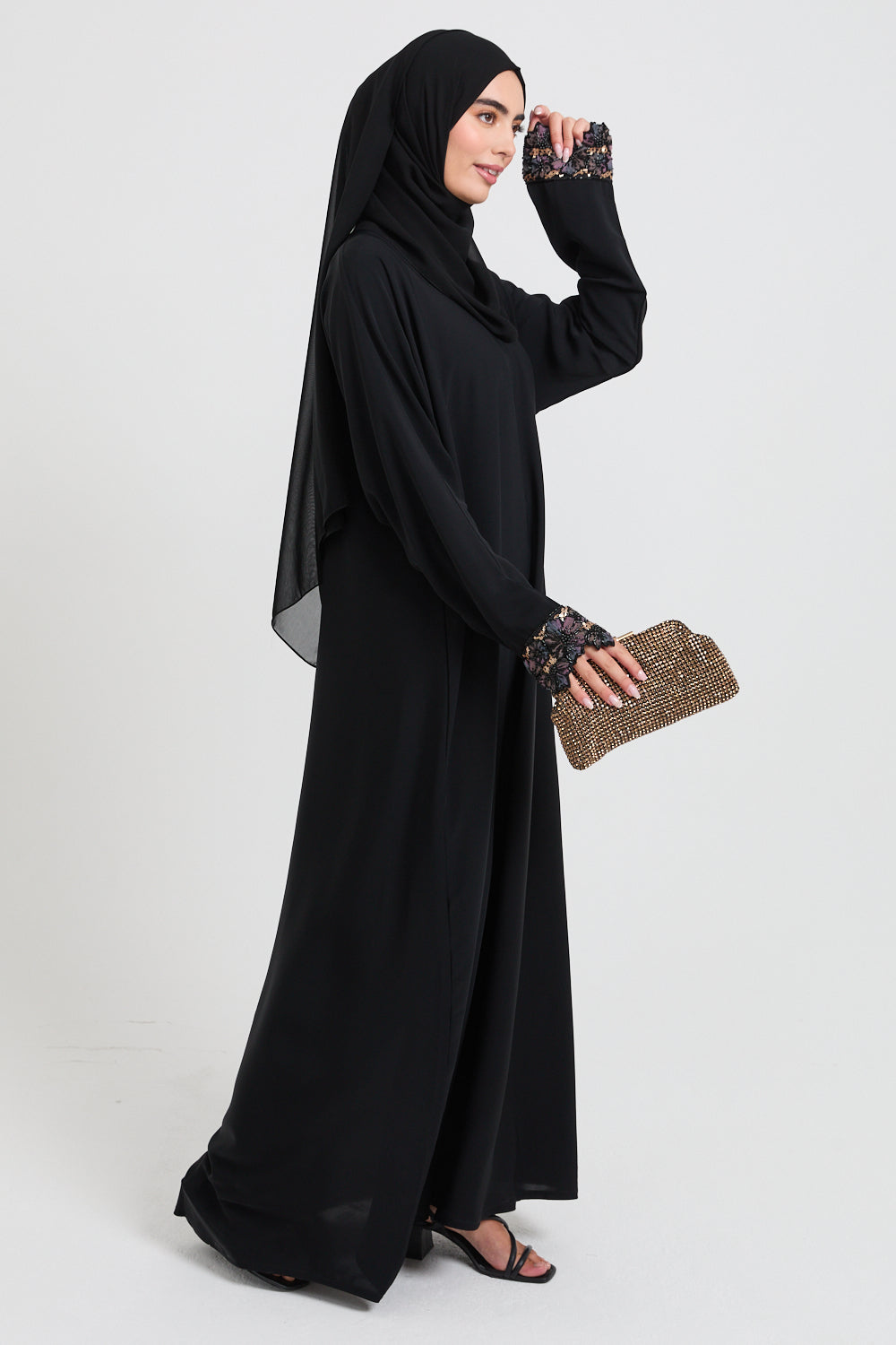 Perfect for those moments when you want to feel effortlessly sophisticated yet subtly radiant, this abaya redefines luxurious modest wear, turning every occasion into a moment of quiet glamour.