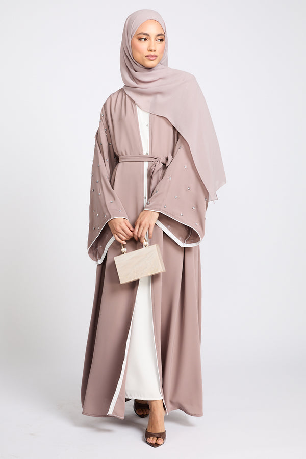 Premium Stardust Belle Embellished Sleeve Open Abaya - Mink Blush