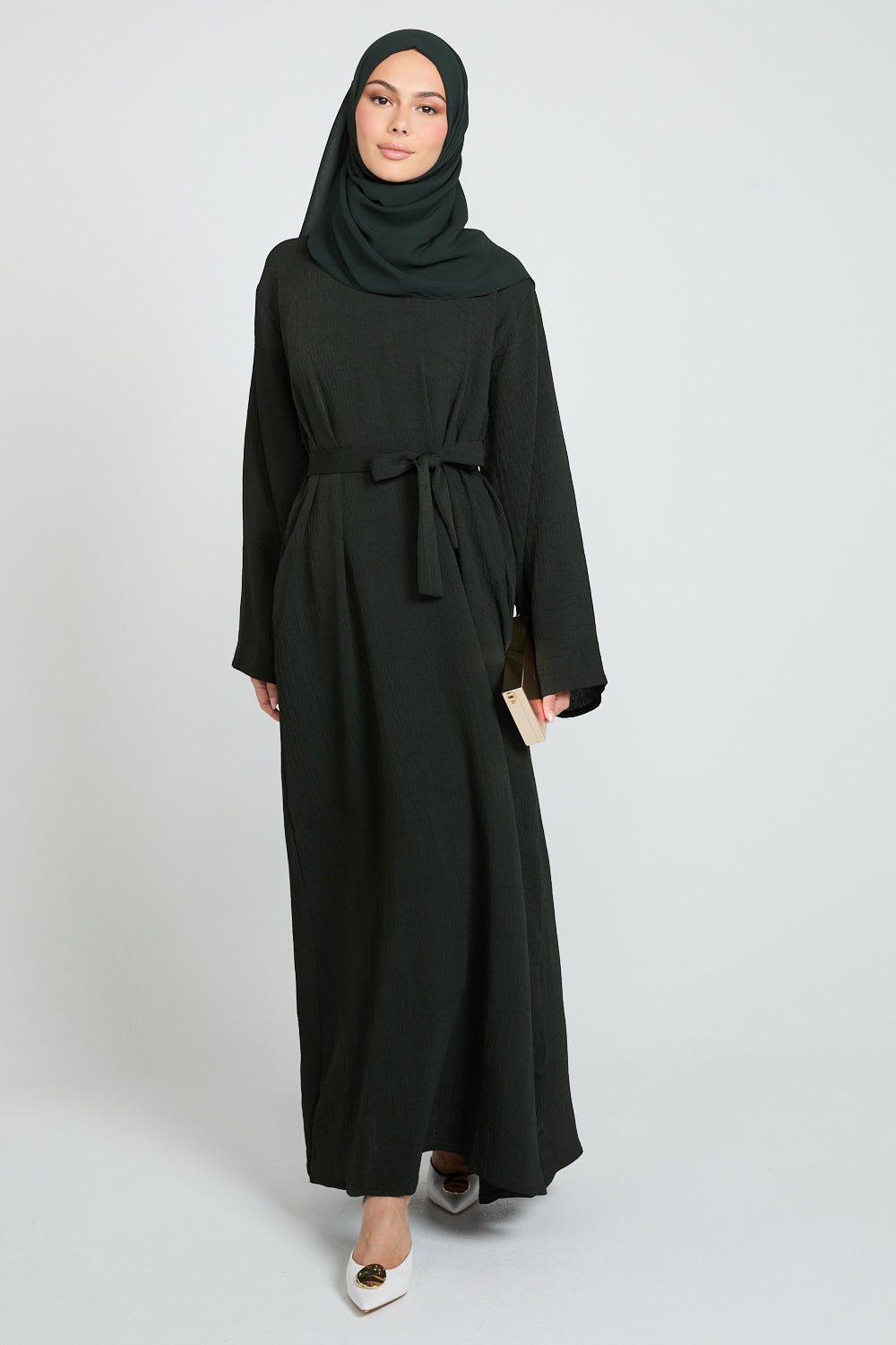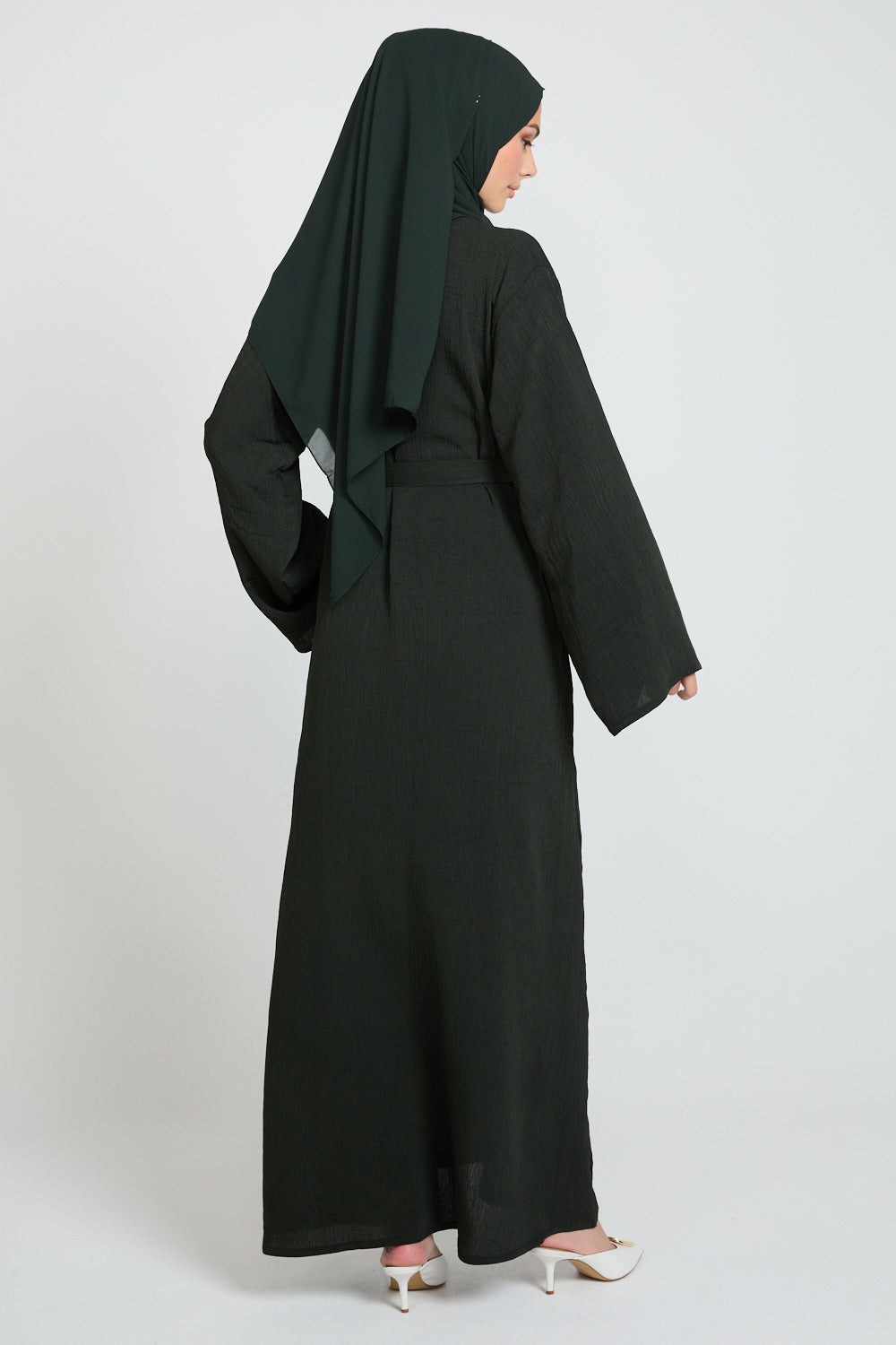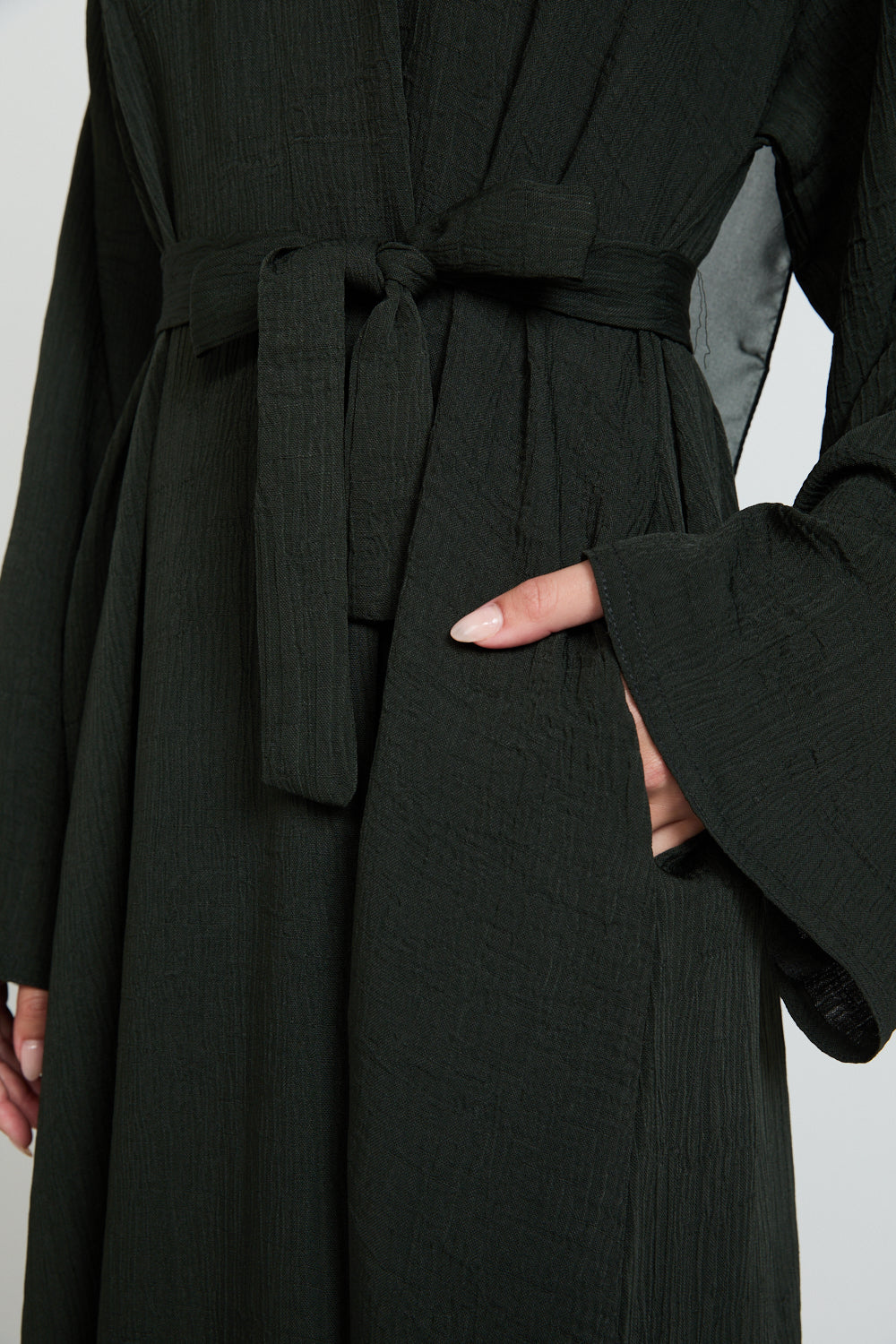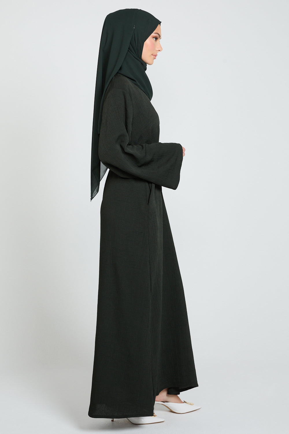 Premium Textured Linen Blend Closed Abaya with Pockets - Deep Forest Green