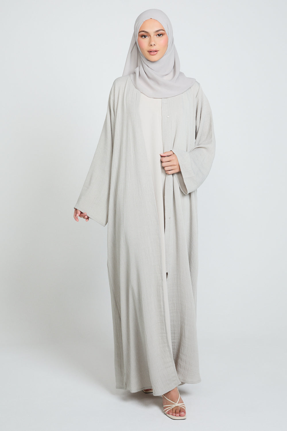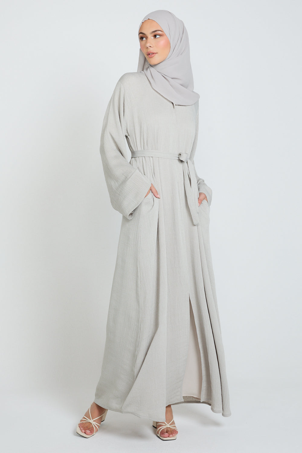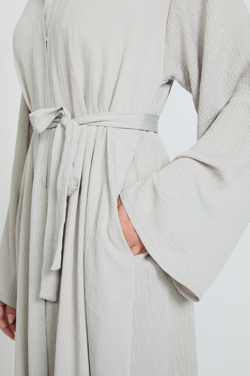 Premium Textured Linen Blend Open Abaya with Pockets - Moonstone Mist