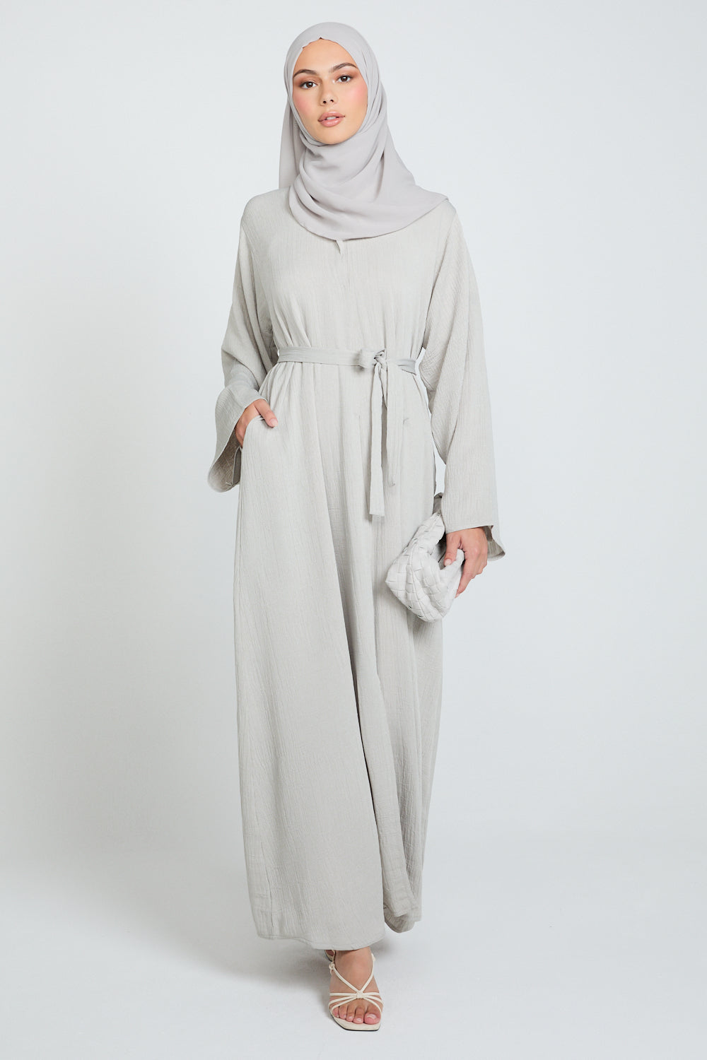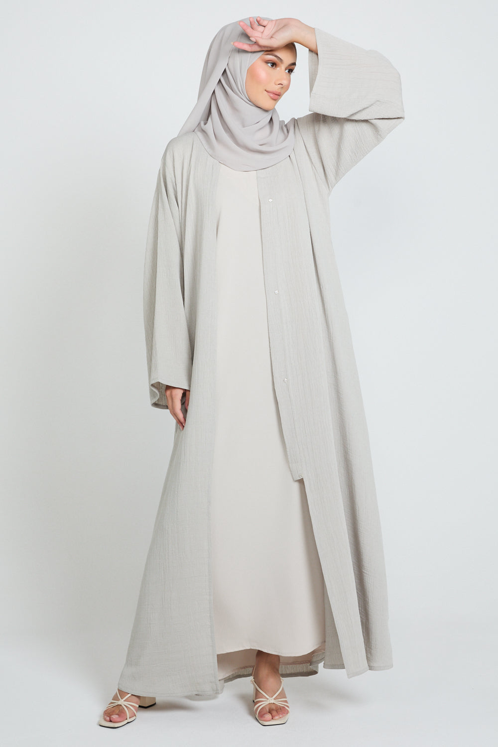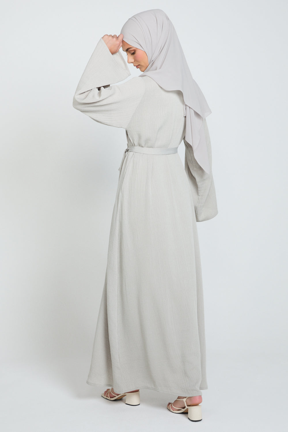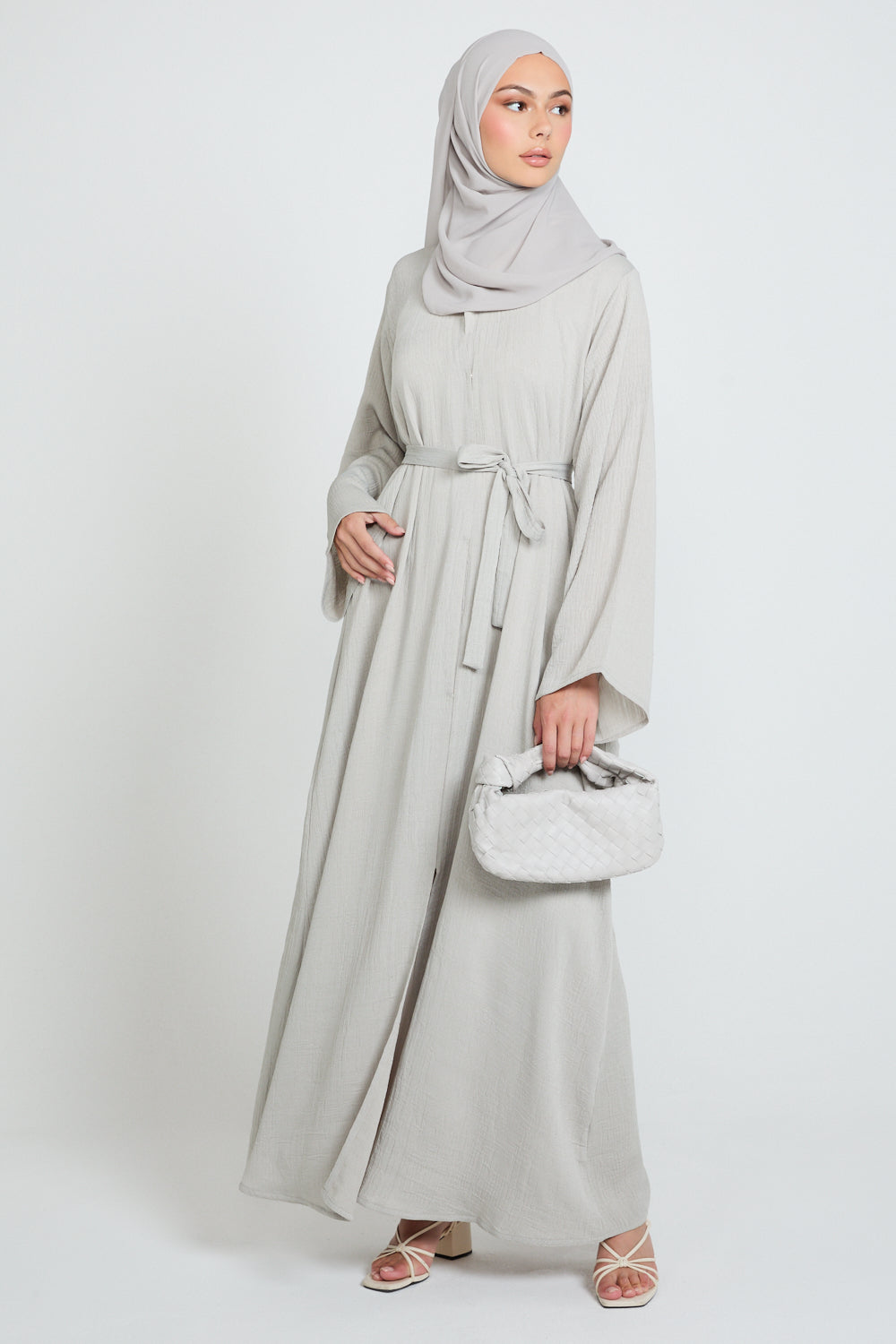 Premium Textured Linen Blend Open Abaya with Pockets - Moonstone Mist