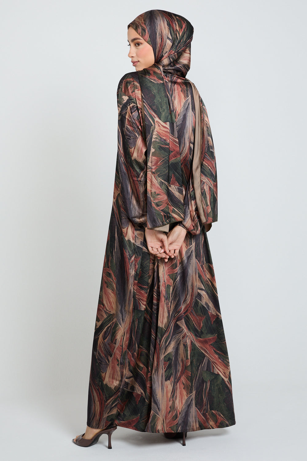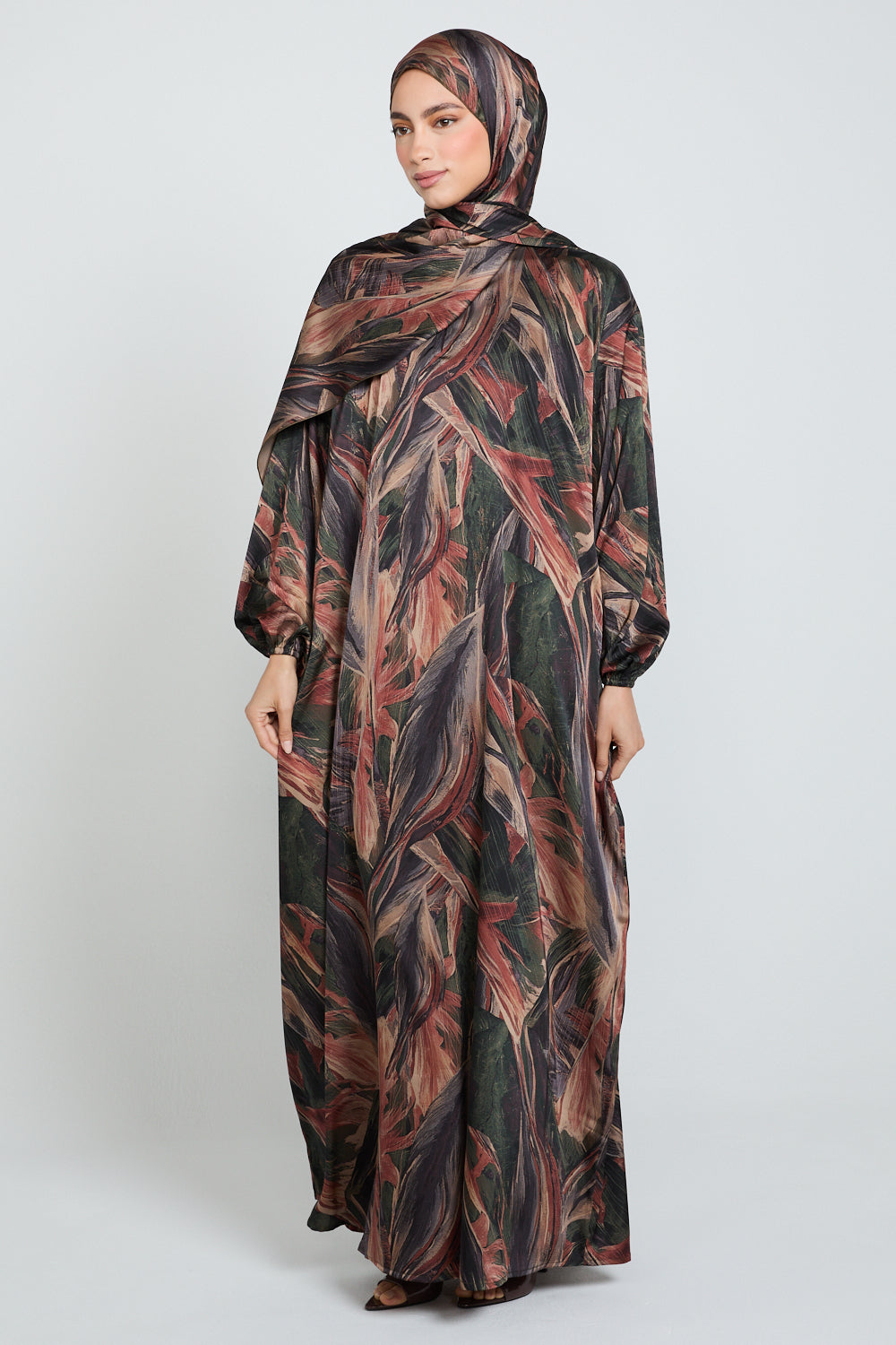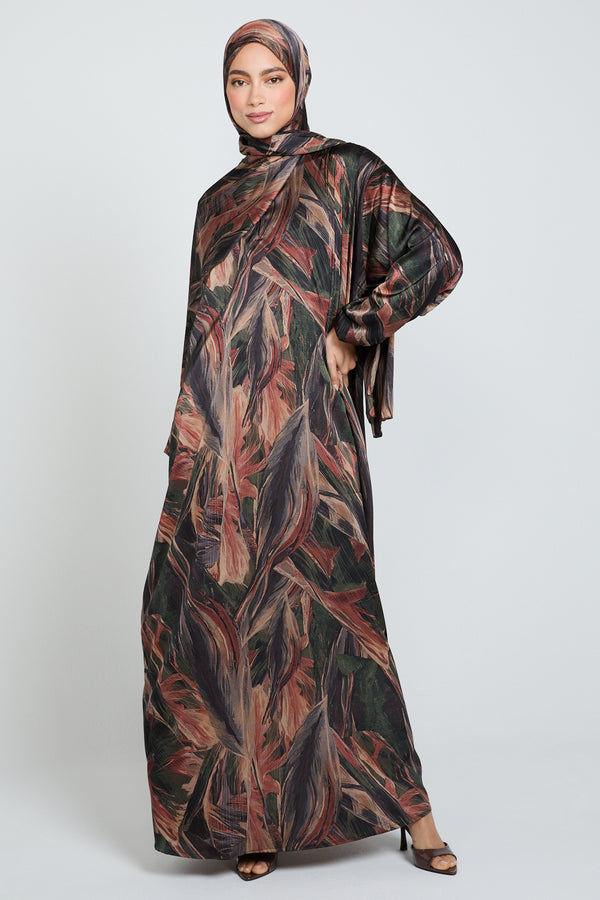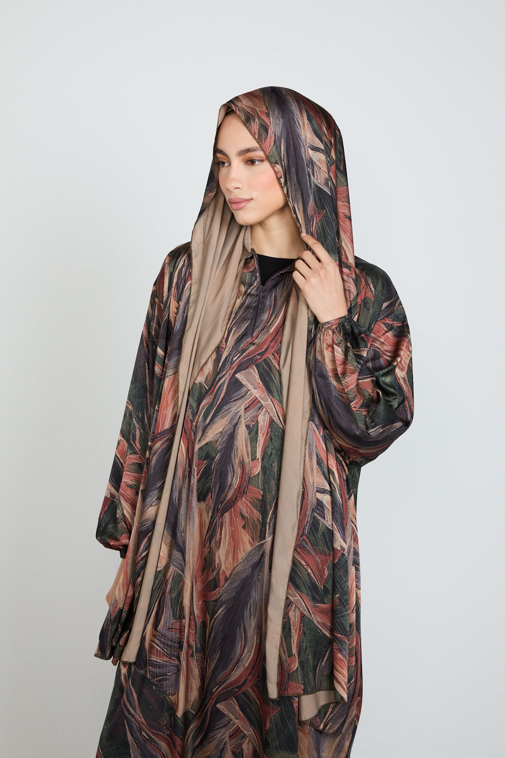 Printed Closed Abaya with Front Zip and Attached Hijab - Tropical Paradise- LIMITED EDITION