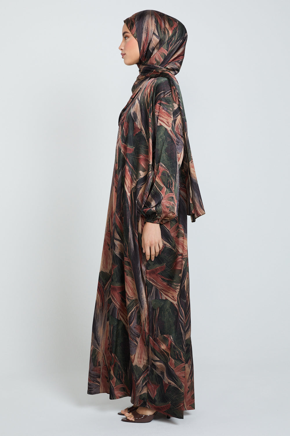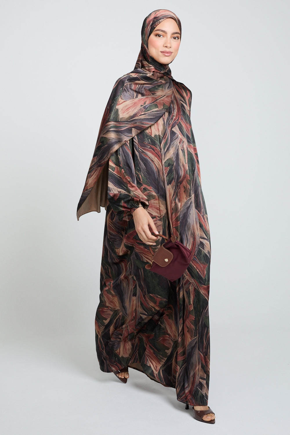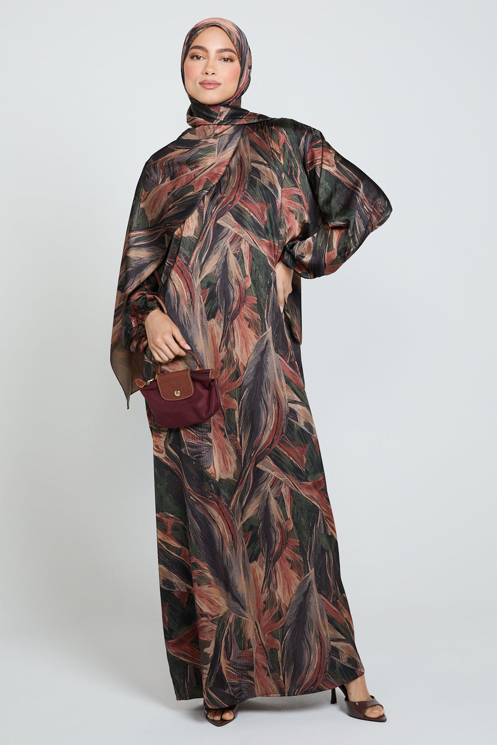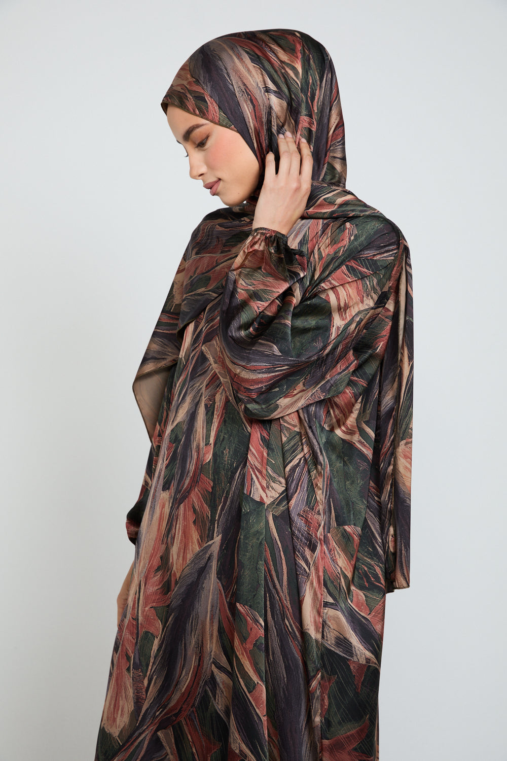 Printed Closed Abaya with Front Zip and Attached Hijab - Tropical Paradise- LIMITED EDITION